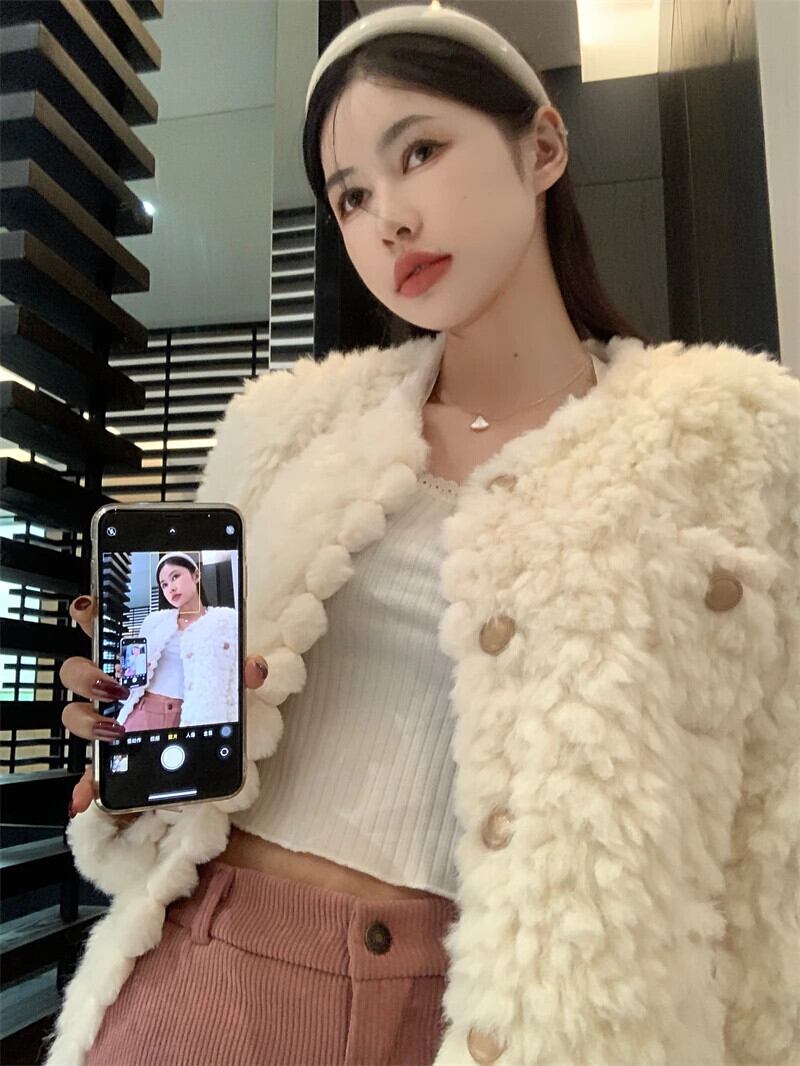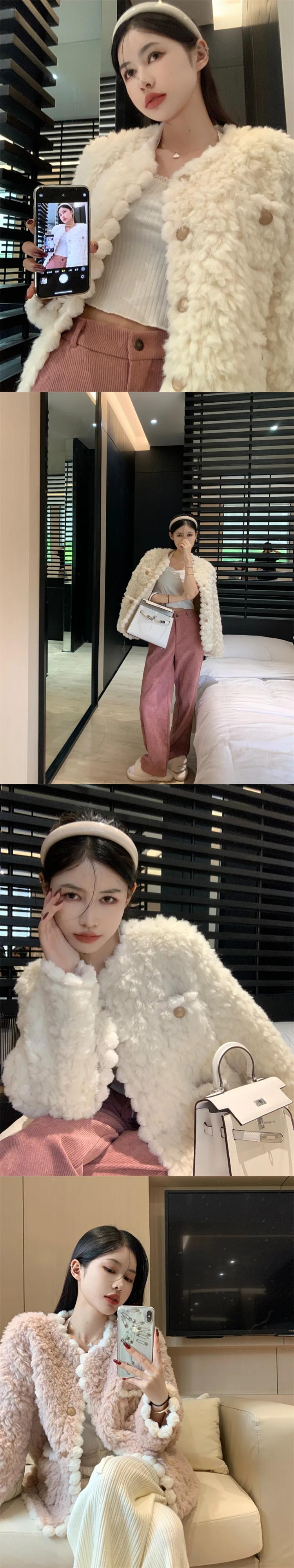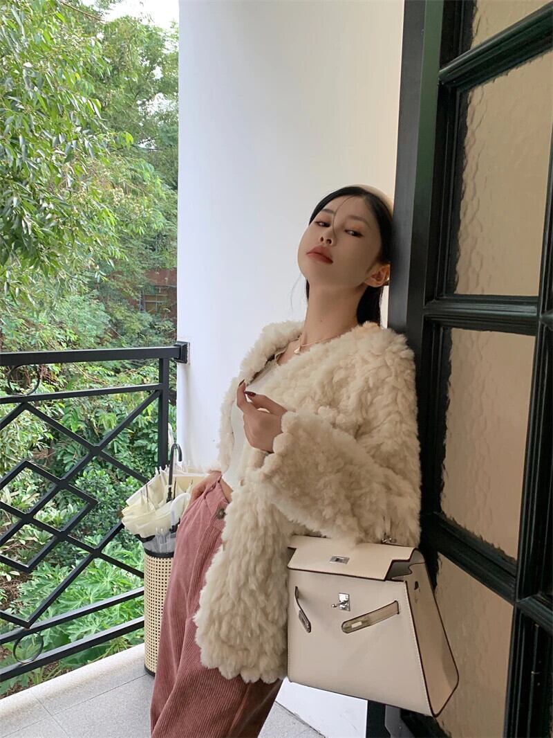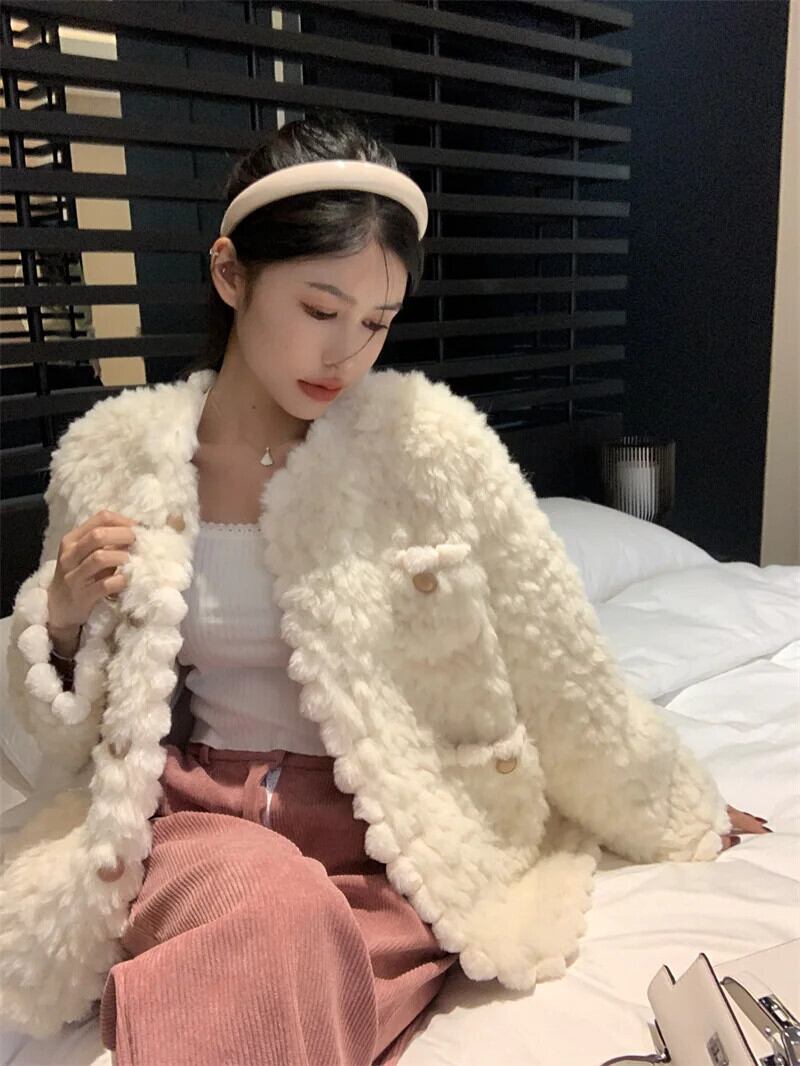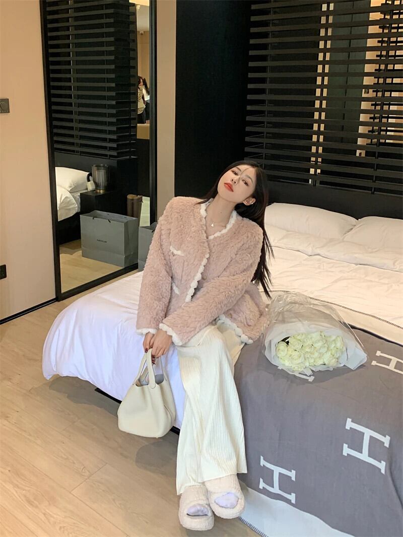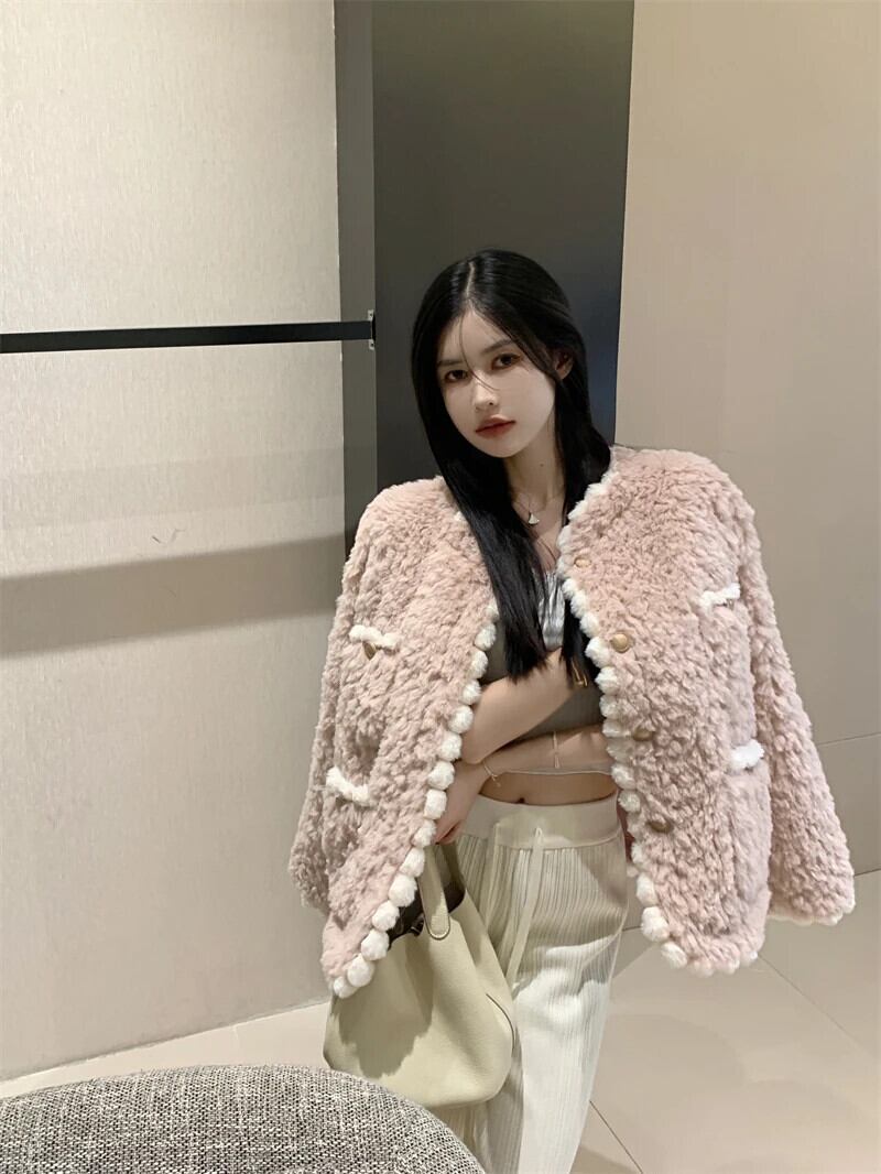 冬パッチワーク香り暖かいラムファージャケットルーズコート ウィンター 冬物