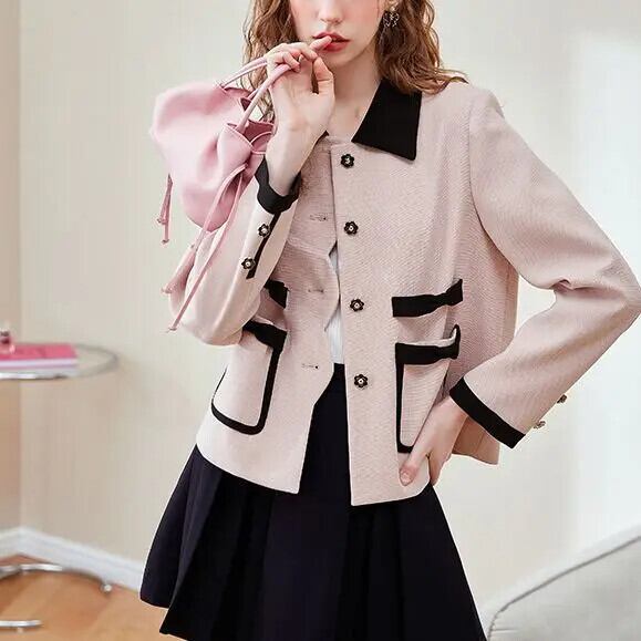 スプリングコート レディース スウィートピンク シングルボタン トレンドジャケット 大人ガーリー キュート カジュアル 春物