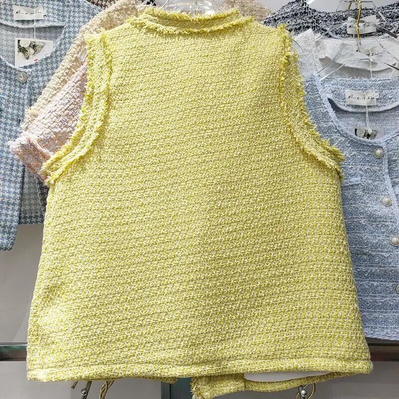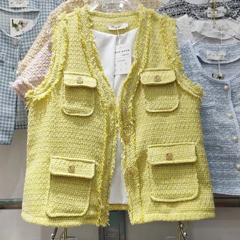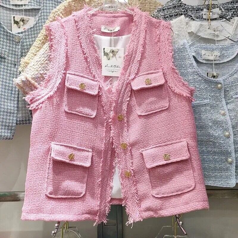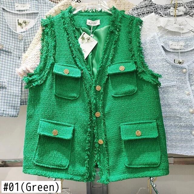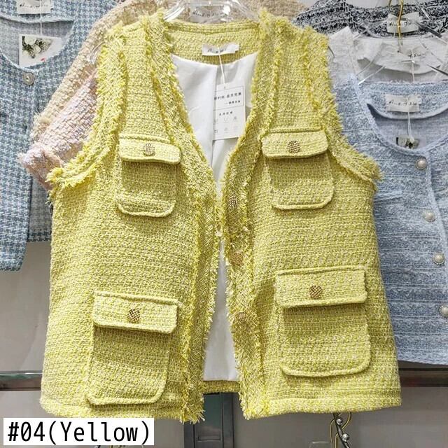 フレグランステル フリル V ネック ツイード チョッキ レディース 夏 ルーズ ノースリーブ ベスト サマー 夏物 Vネック
