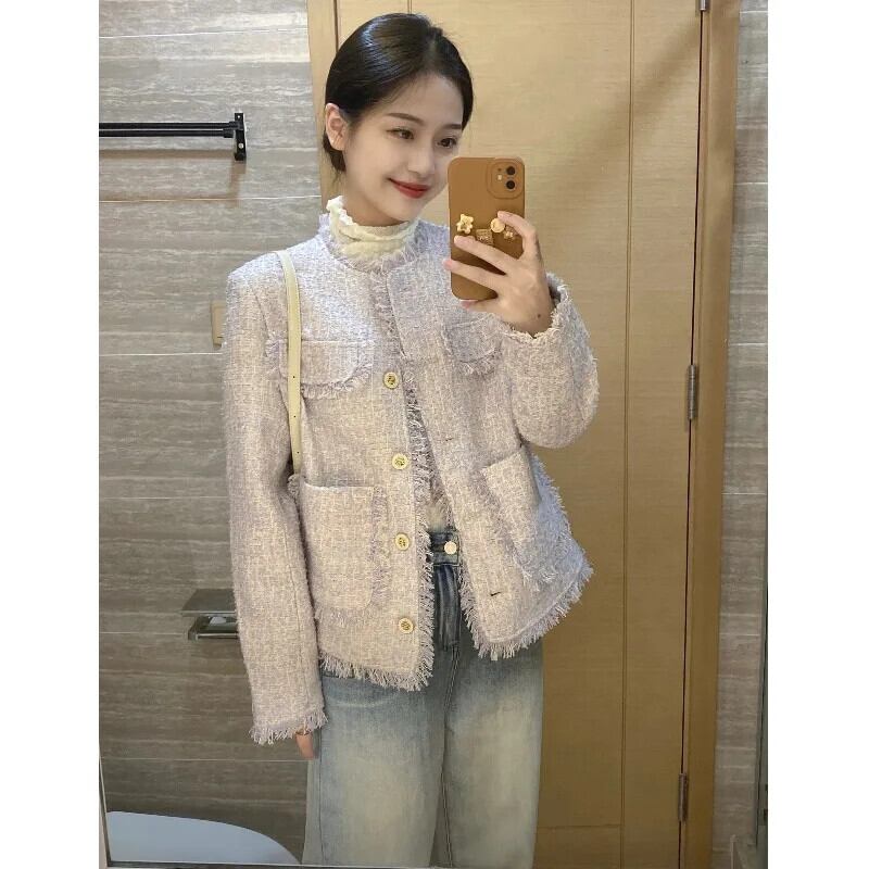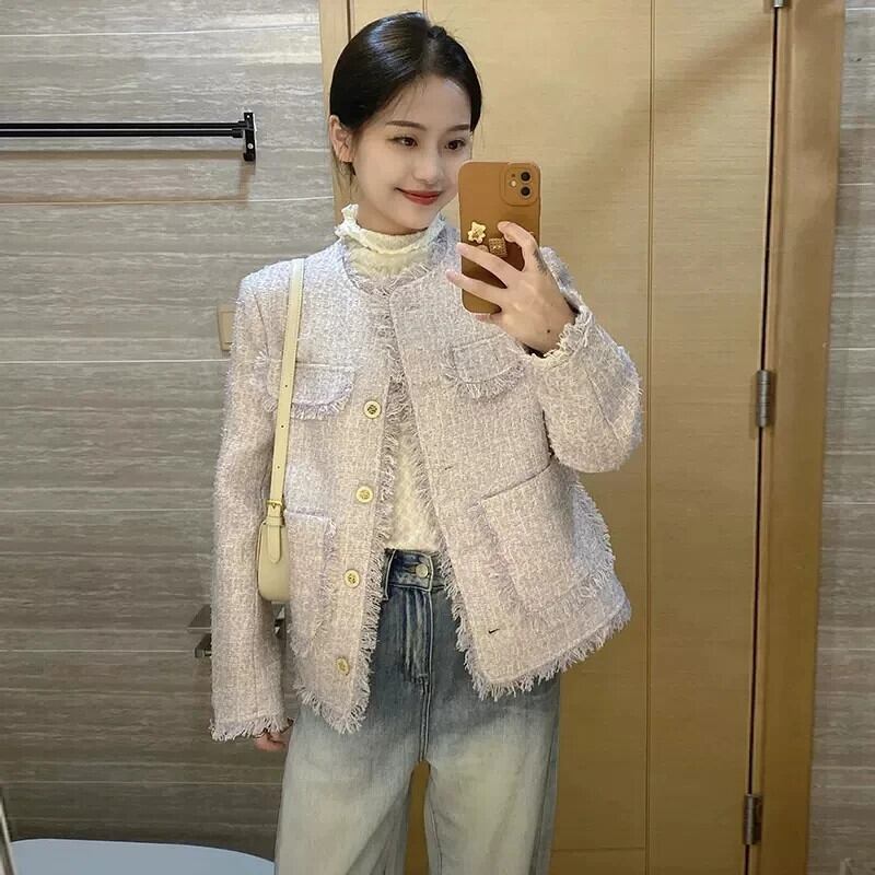春秋ツイードジャケットコートウールショート Casaco Feminino スプリング 春物 オータム 秋物