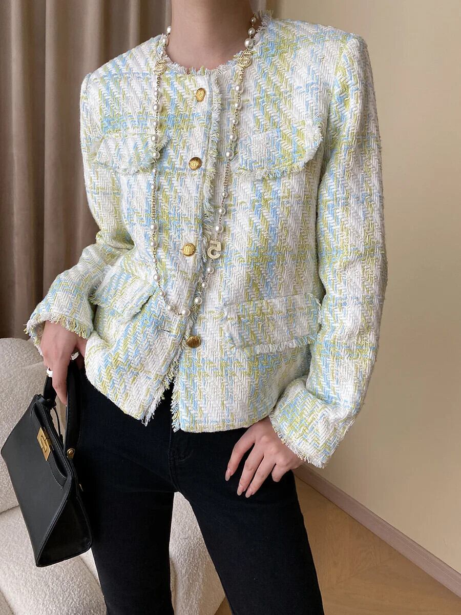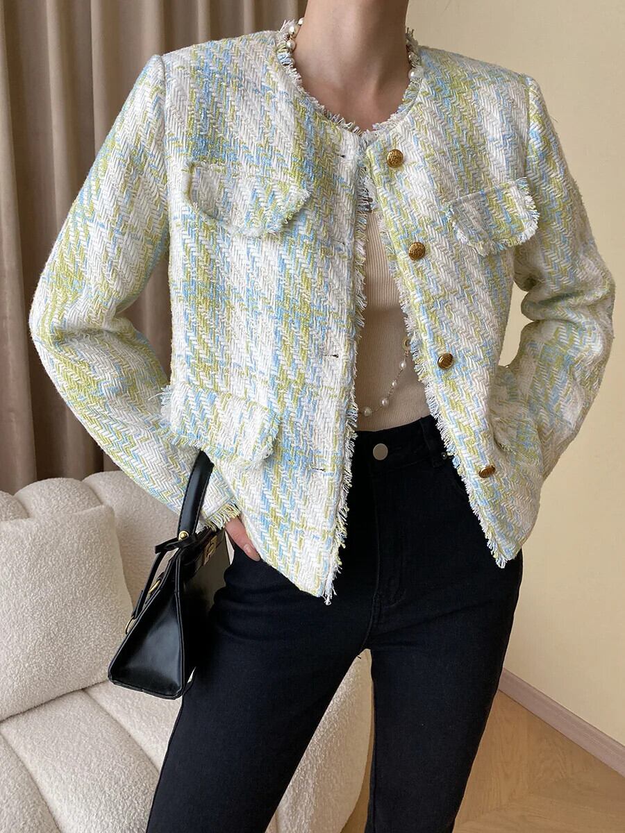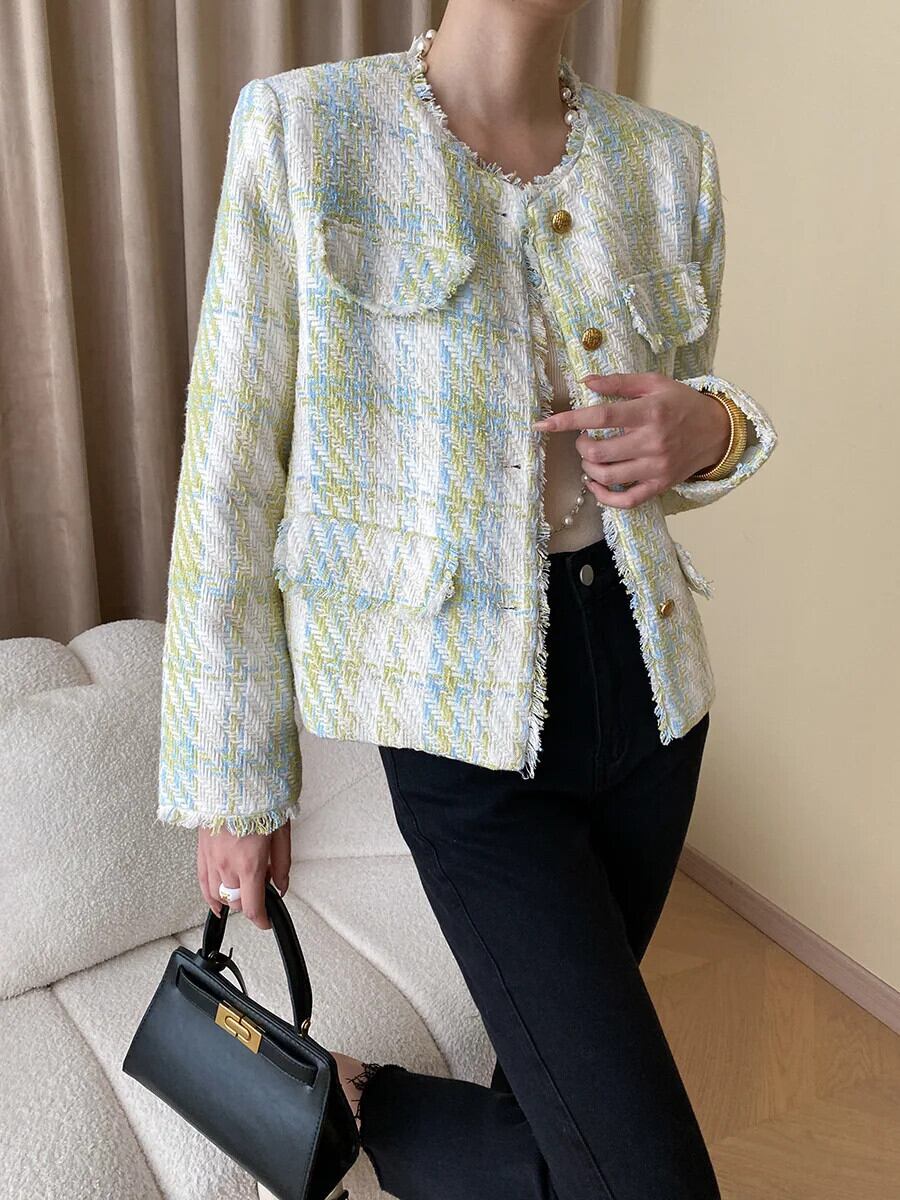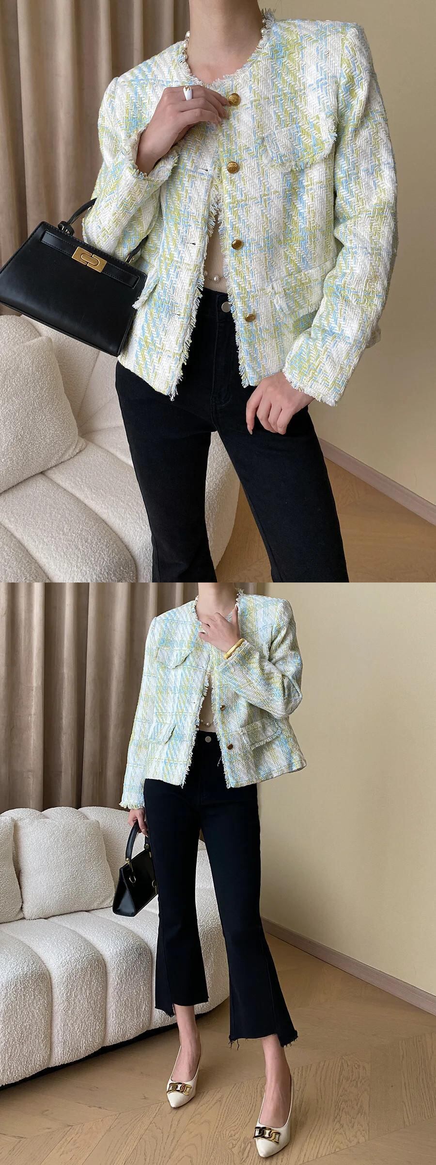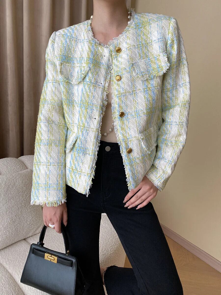 秋冬ツイードジャケットコートウールショート Casaco Chaquetas 生き抜く オータム 秋物 ウィンター 冬物