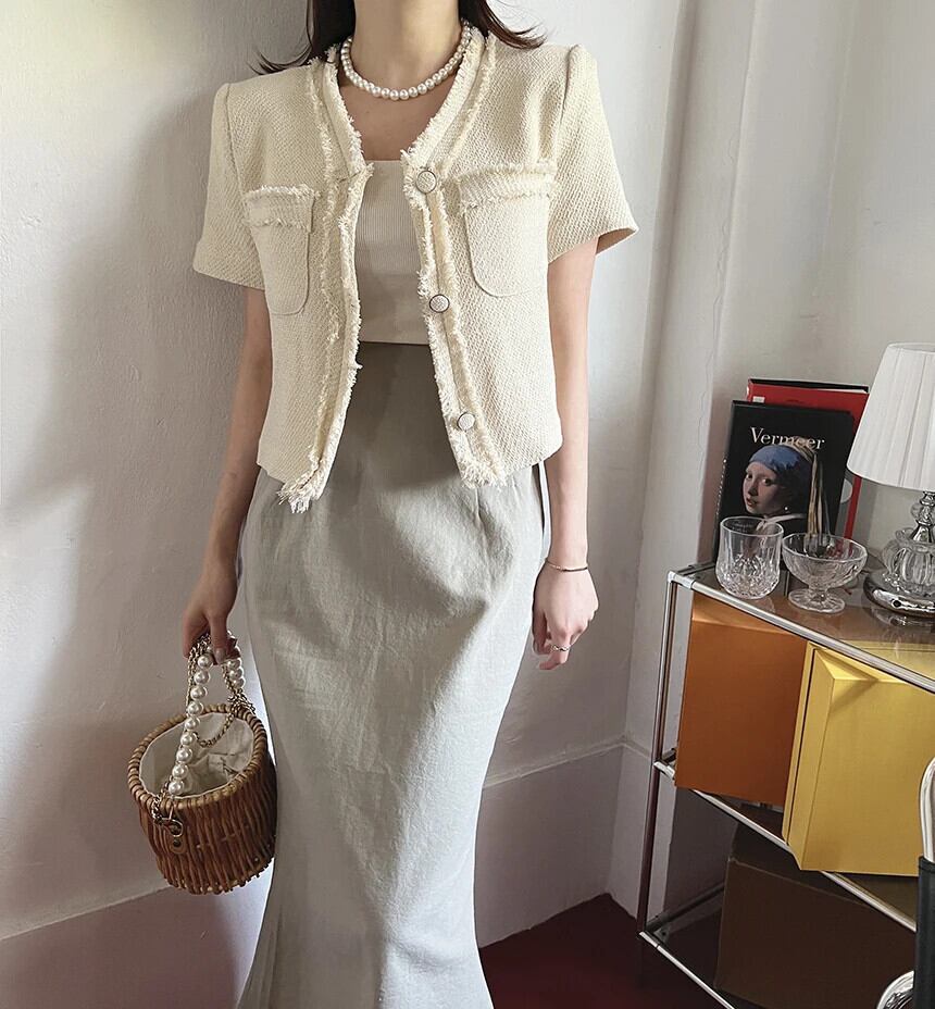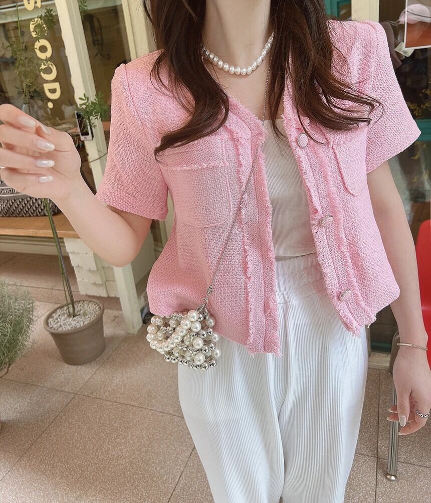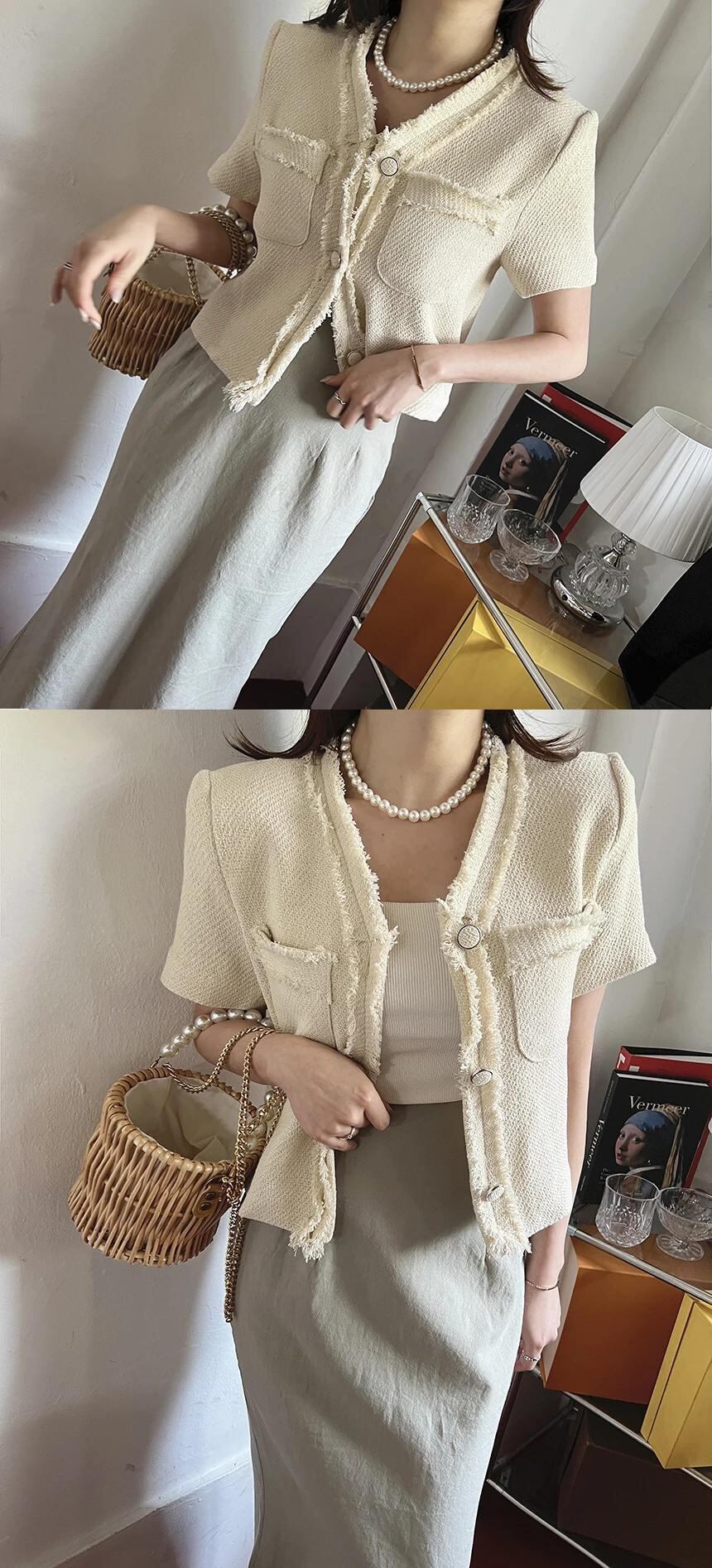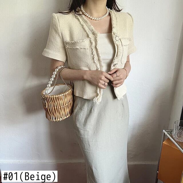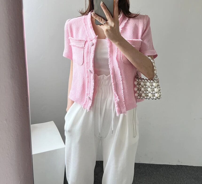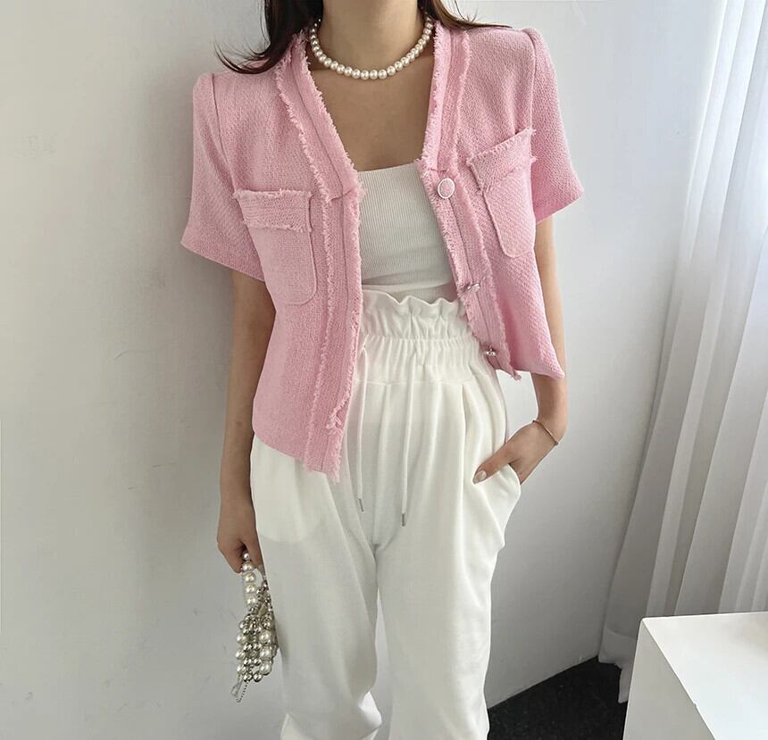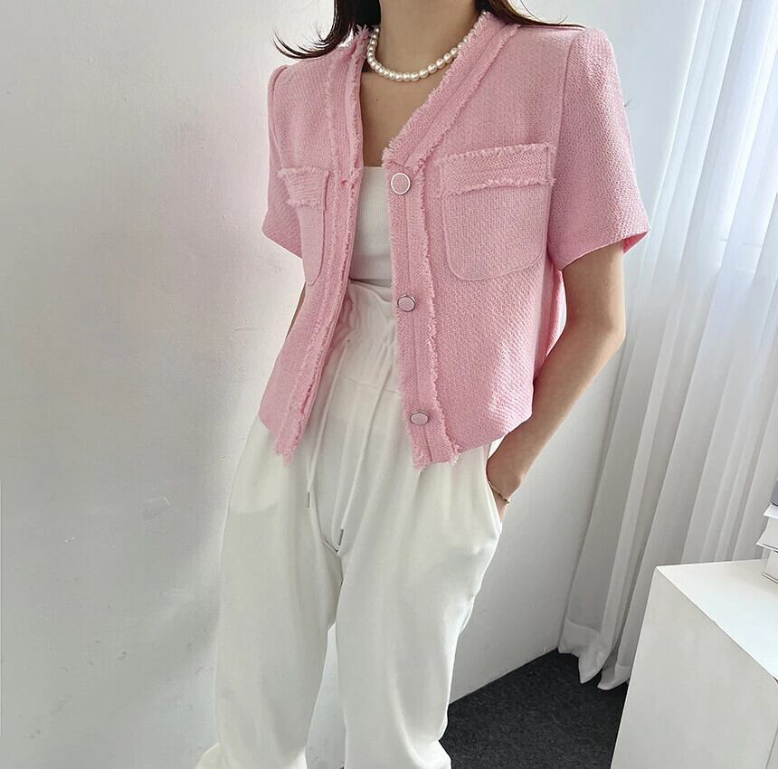 レディースサマーレトロジャケットVネック半袖コート ショート ハーフスリーブ 夏物