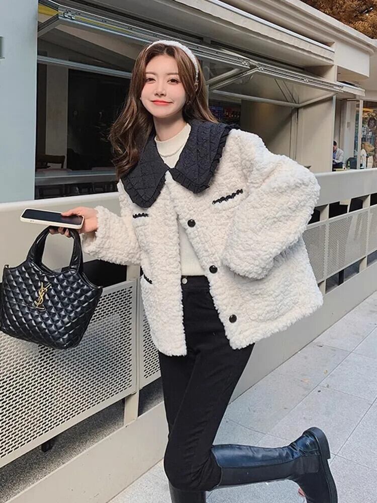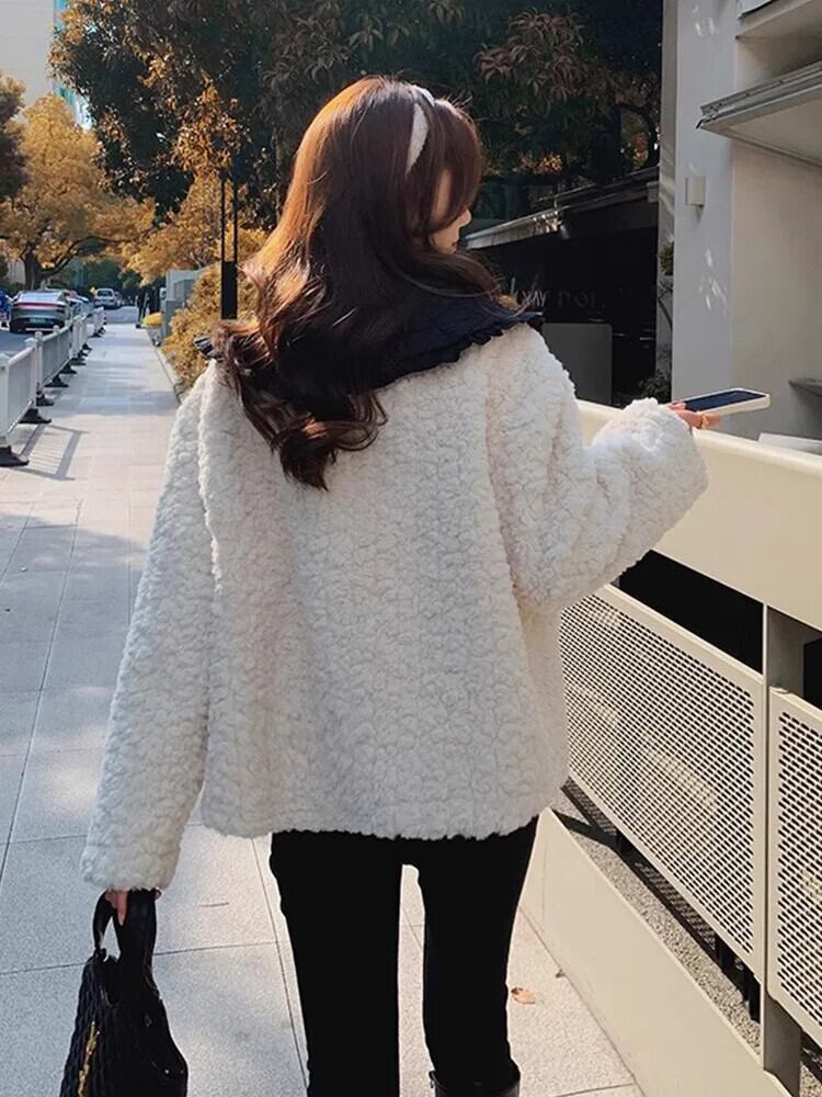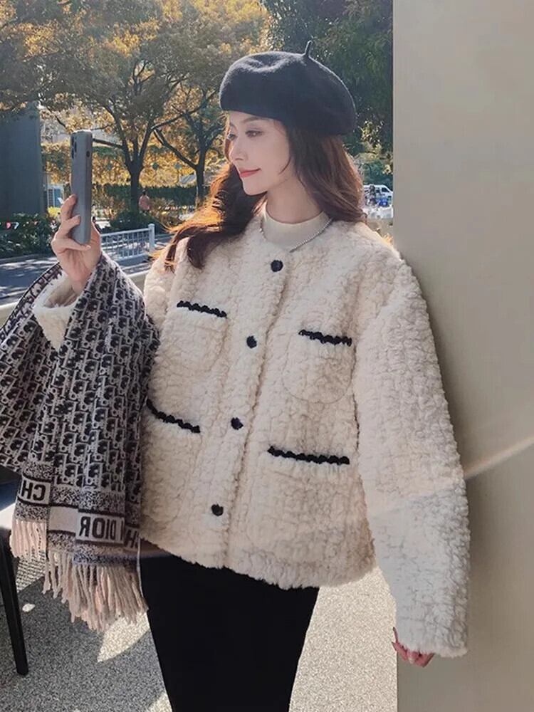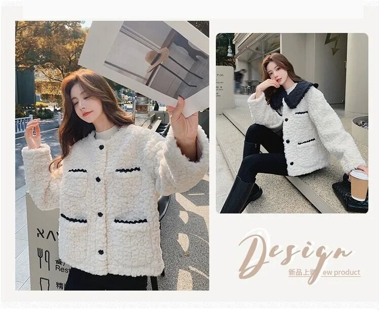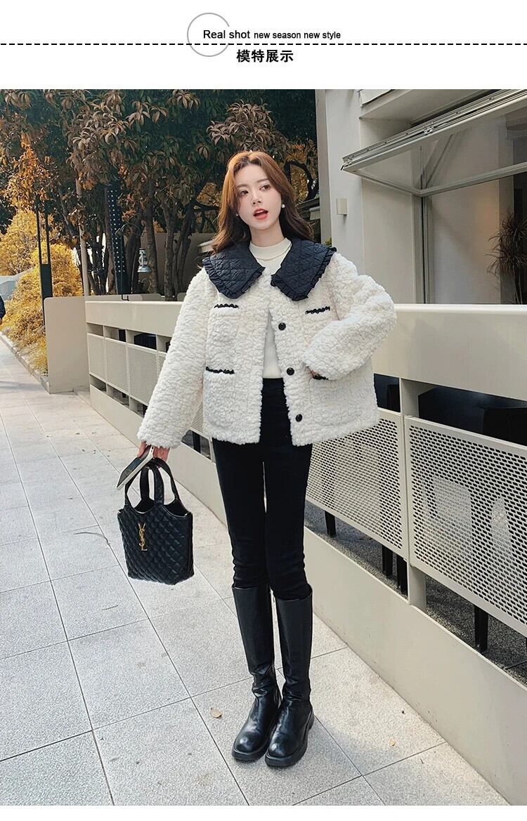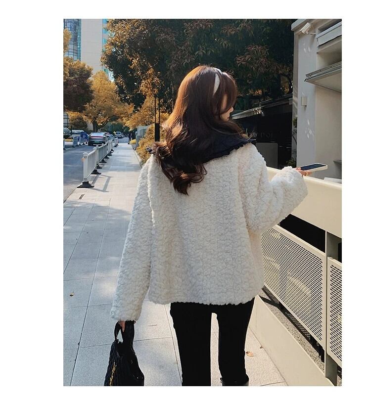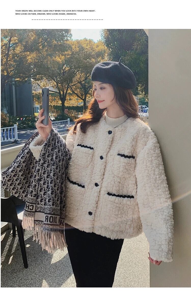 ホワイトラムファー一体型コート秋冬香りよいルーズぬいぐるみ肥厚ジャケット オータム 秋物 ウィンター 冬物