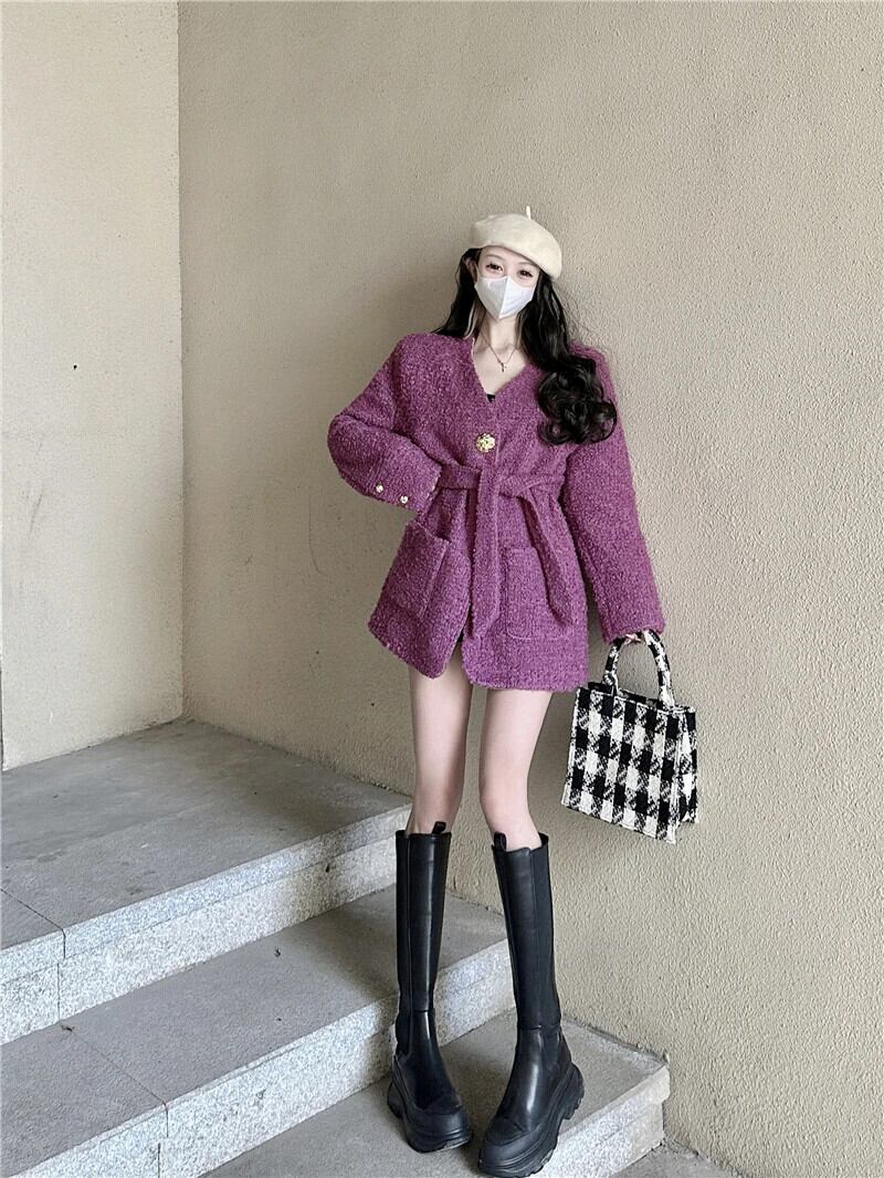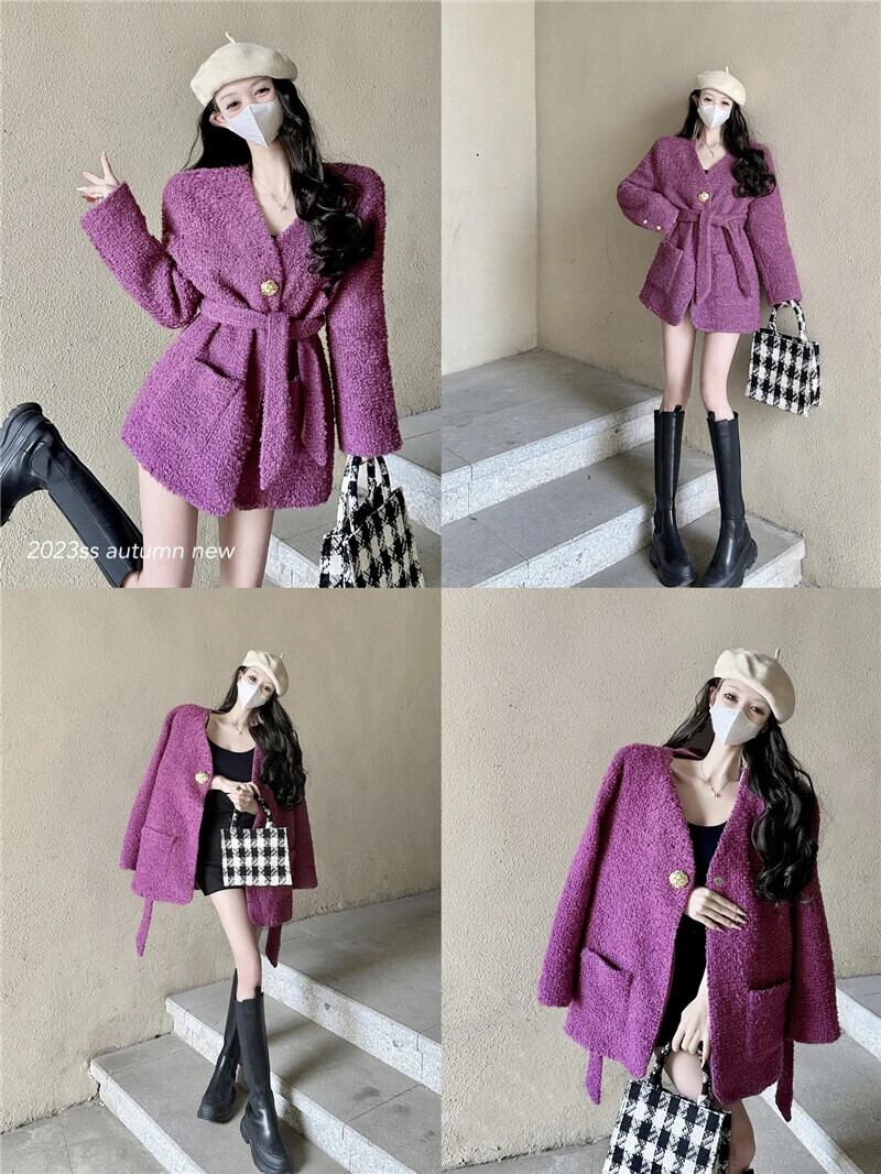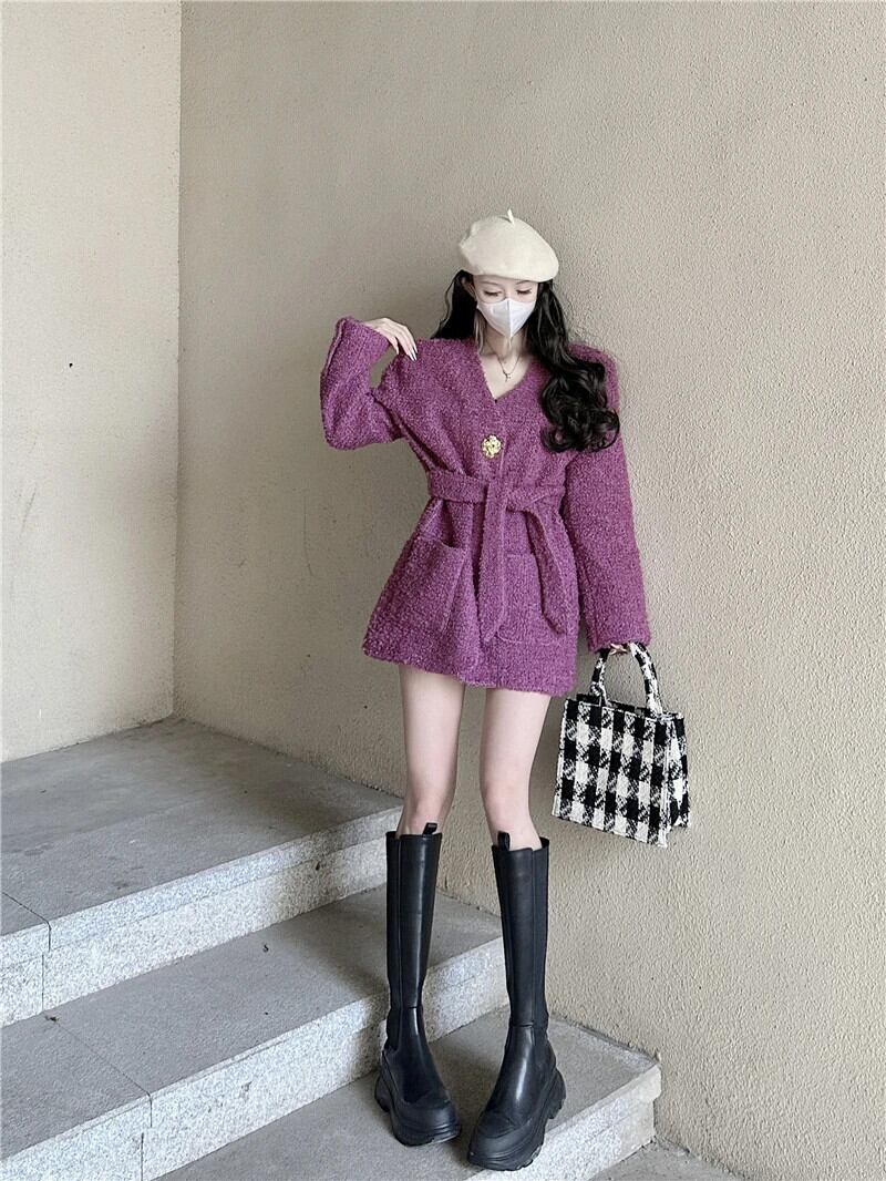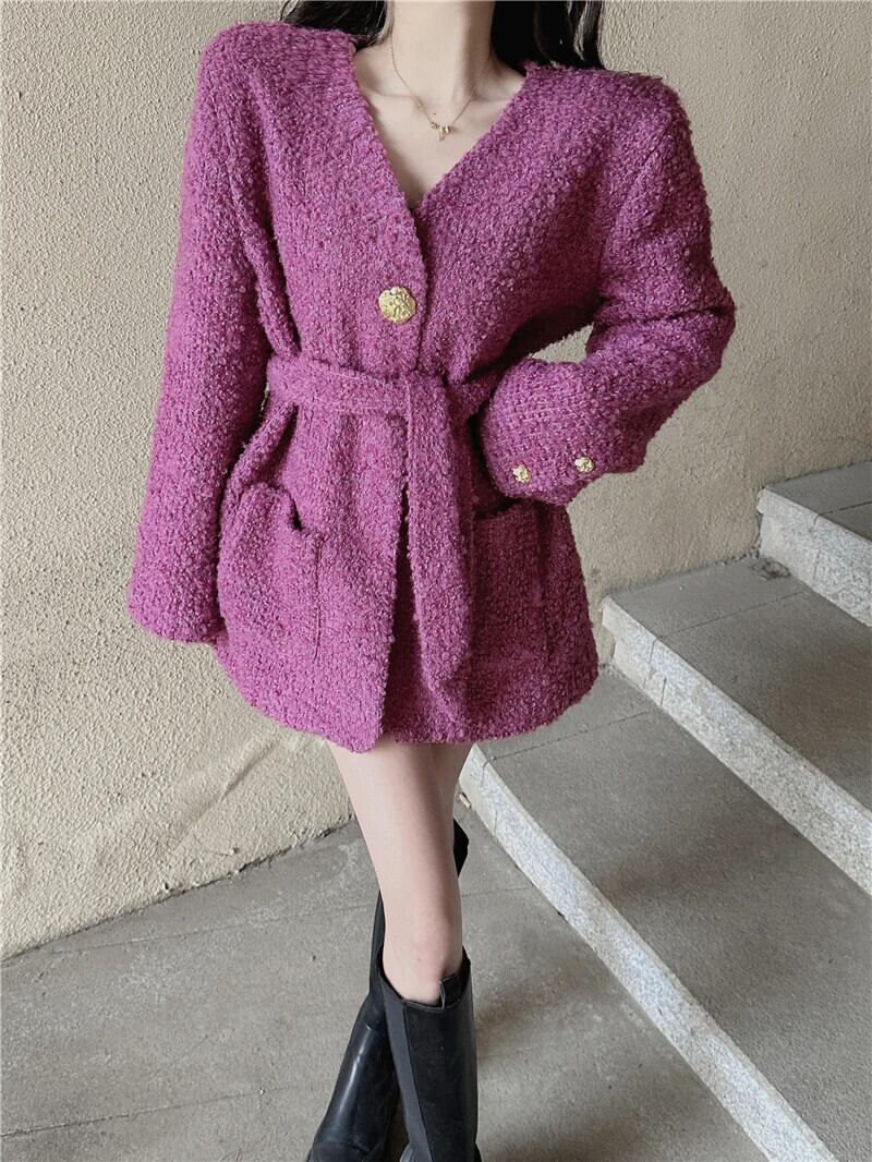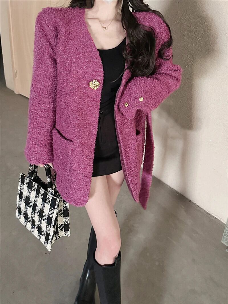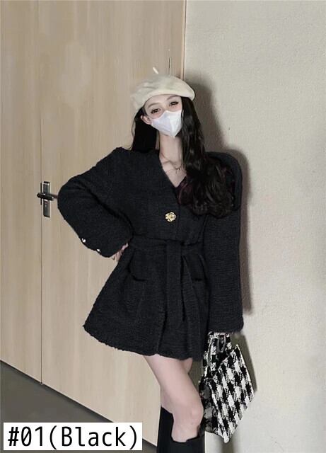 レディース秋冬ワンボタンVネック多用途ルーズスリーブソリッドウールコートウールジャケット オータム 秋物 ウィンター 冬物 ソリッドカラー