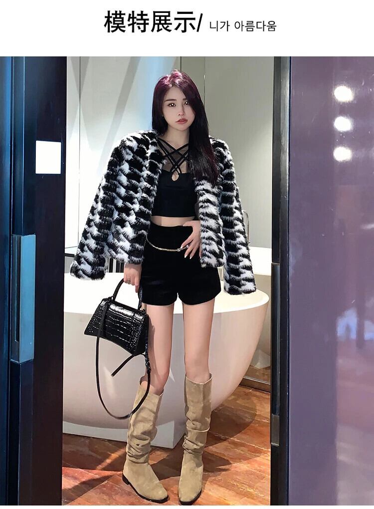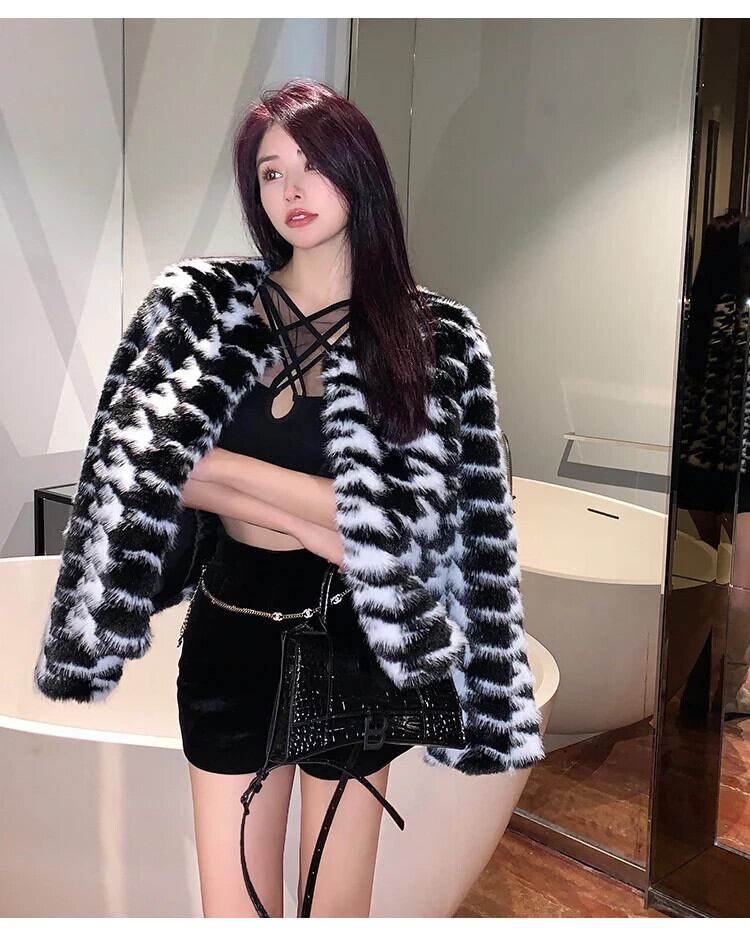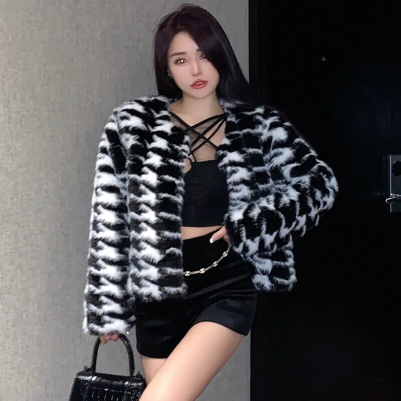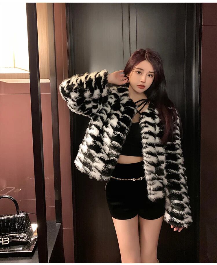 冬チェック柄フェイクファーコートショートセーブルジャケット暖かさルーズ ウィンター 冬物