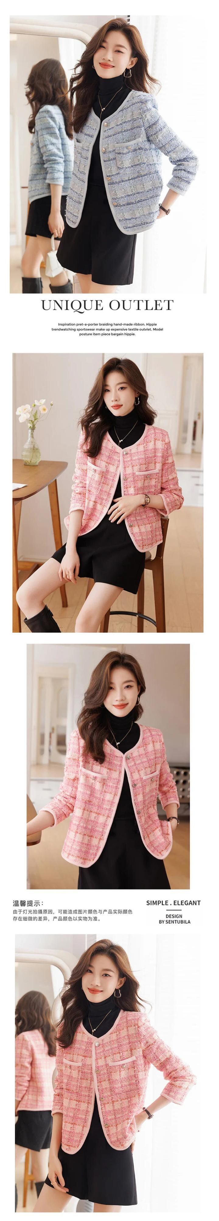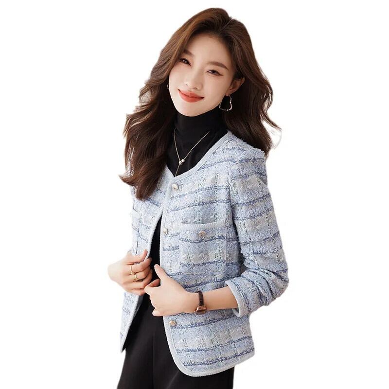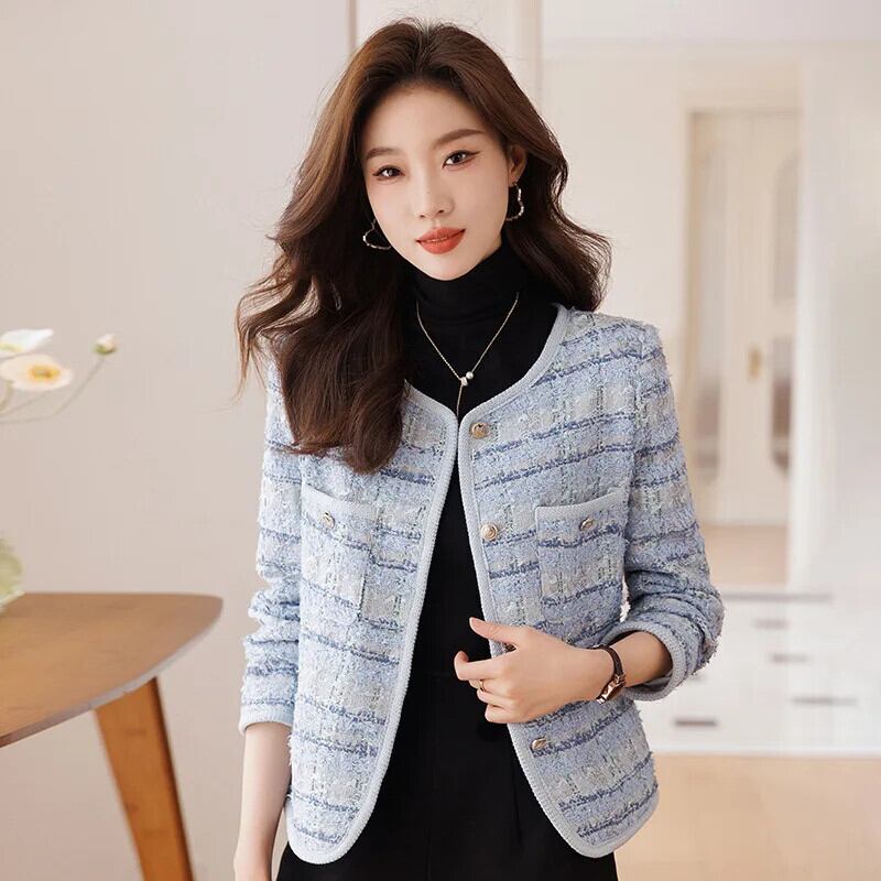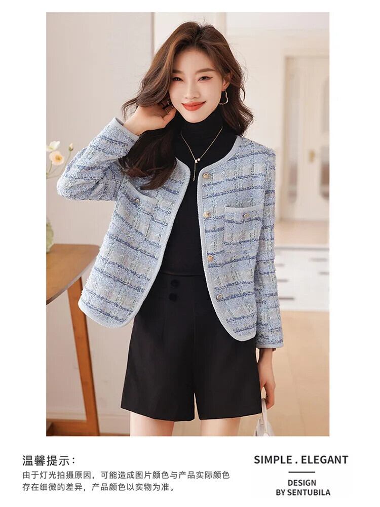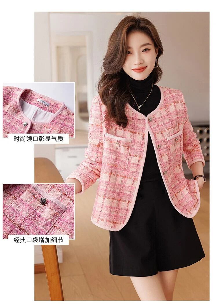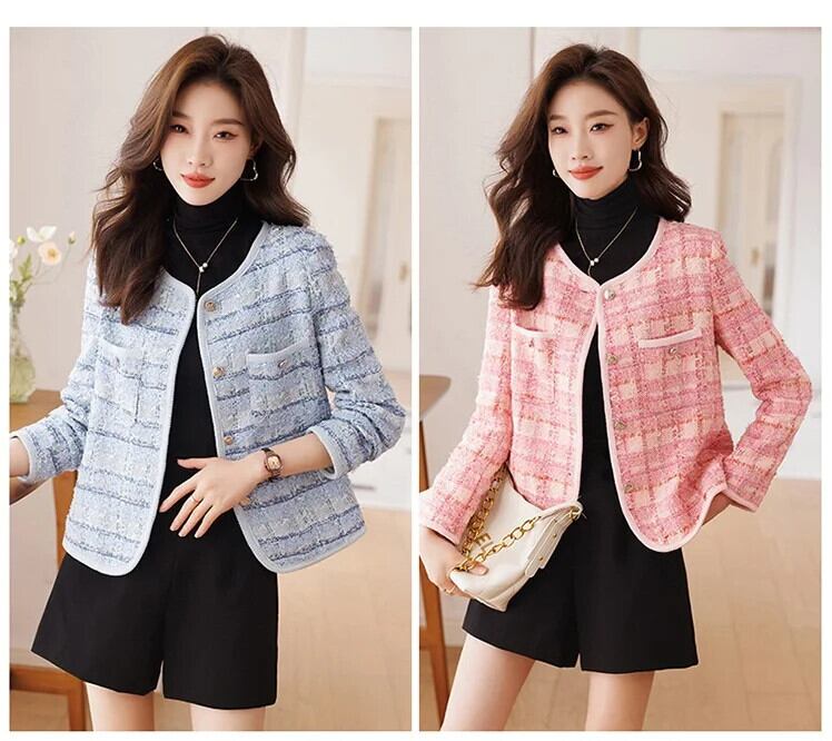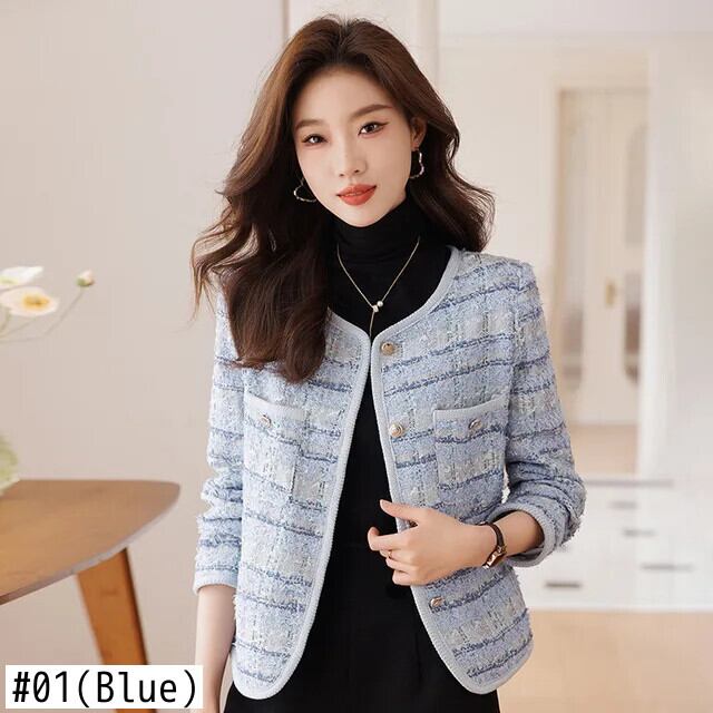レディース春秋ツイードジャケット香り良いウールショートコート甘い生き抜く Casaco 大人ガーリー スウィート キュート カジュアル スプリング 春物 オータム 秋物