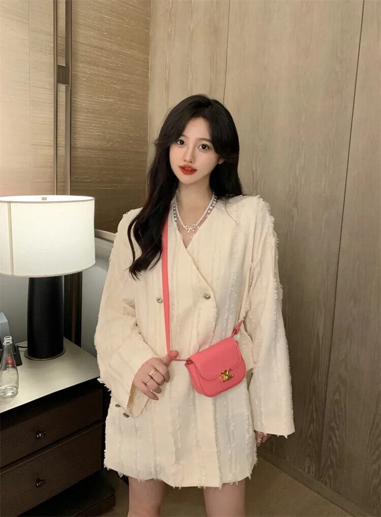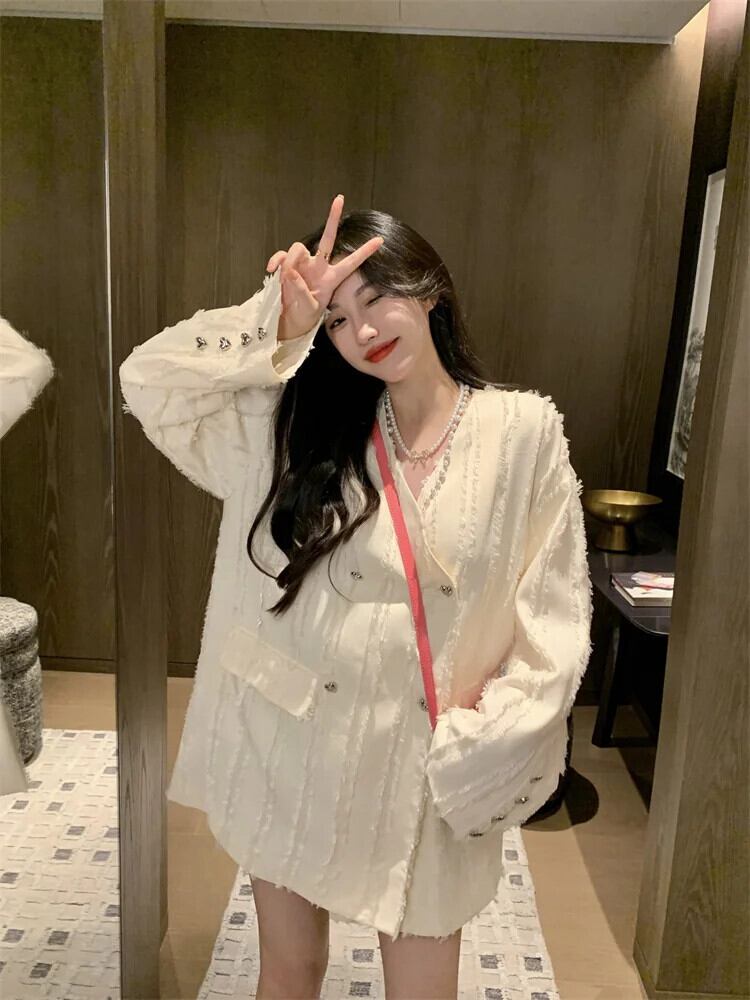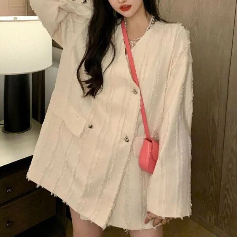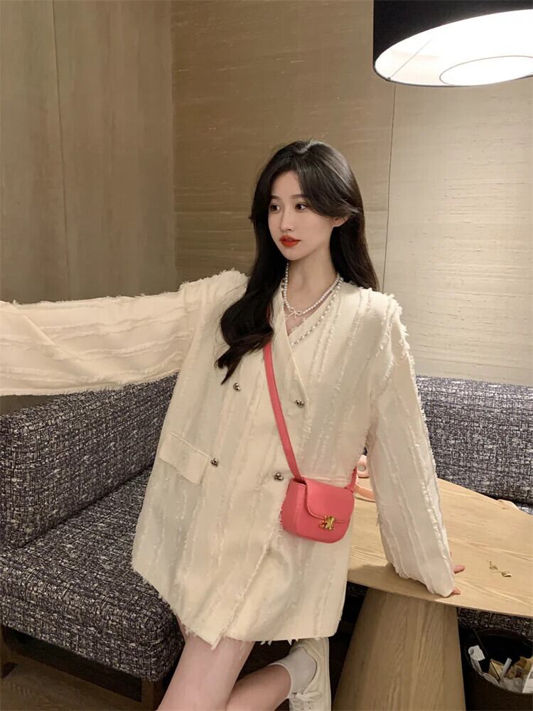 レディース春秋Vネックミッドレングスフレグランススーツコートルーズブレザー スプリング 春物 オータム 秋物