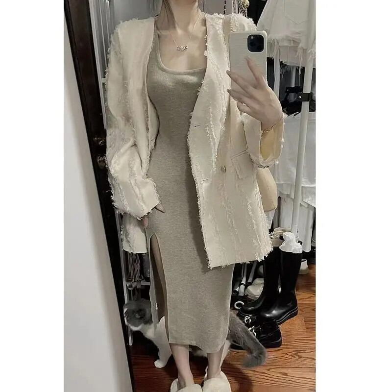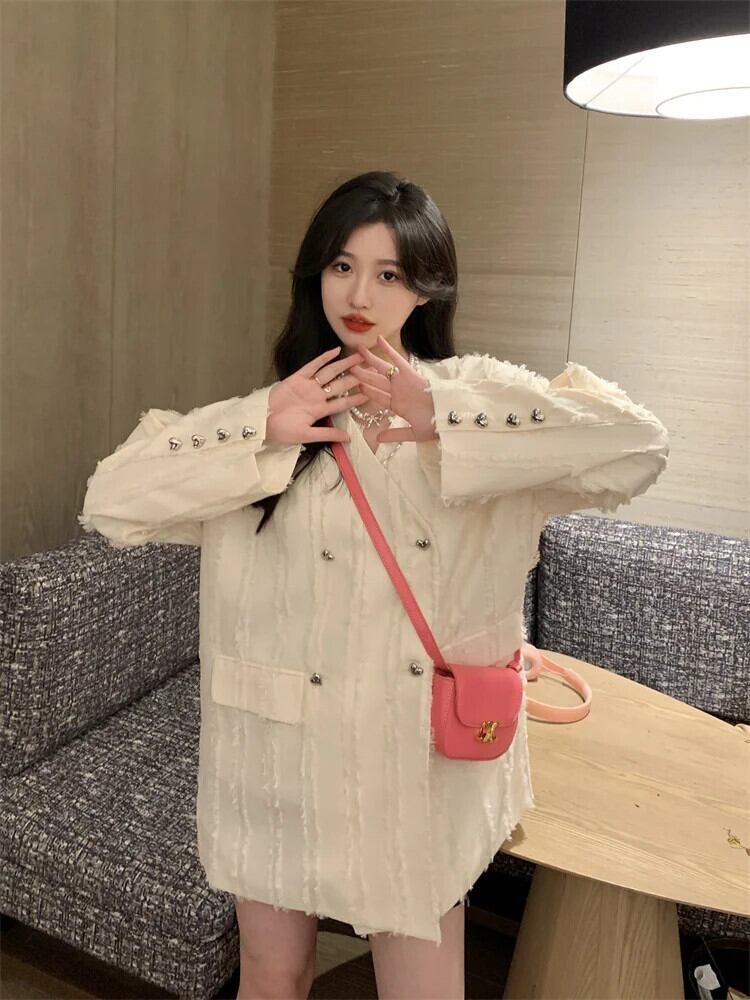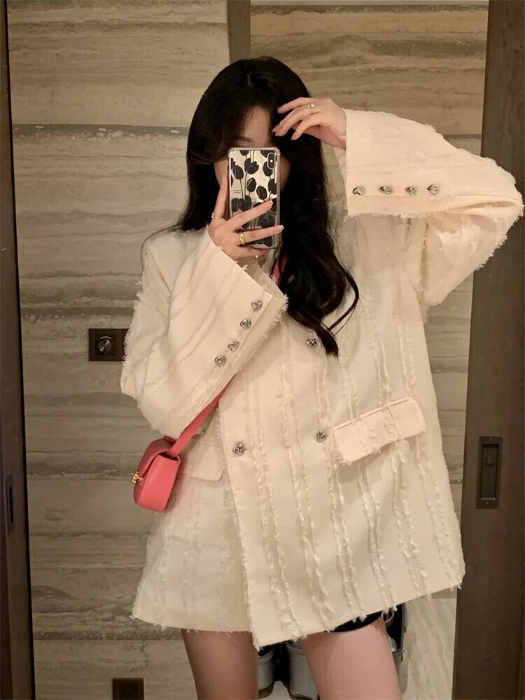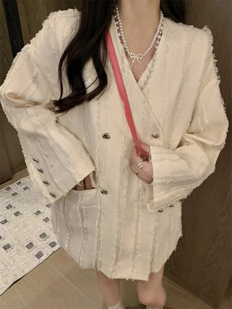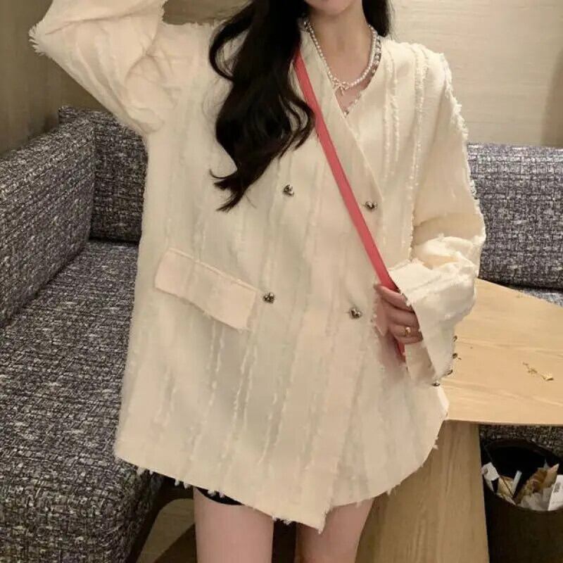 レディース春秋Vネックミッドレングスフレグランススーツコートルーズブレザー スプリング 春物 オータム 秋物