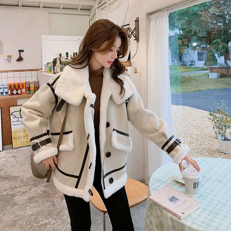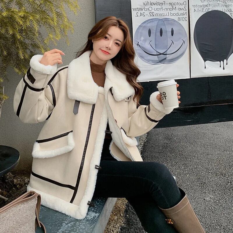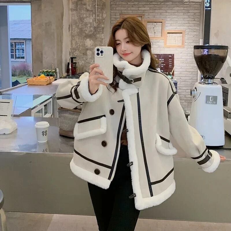 冬グレインフリースラムウールスプライスオートバイレディースレザーファーワンピースコートジャケット ウィンター 冬物