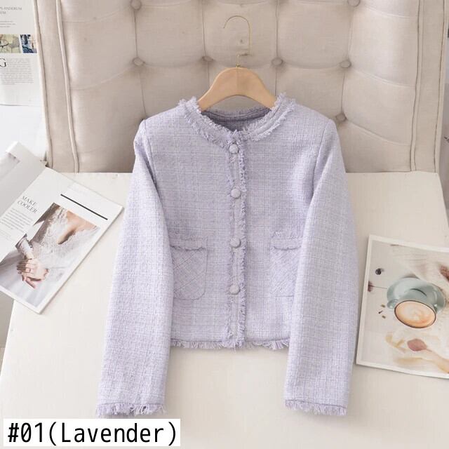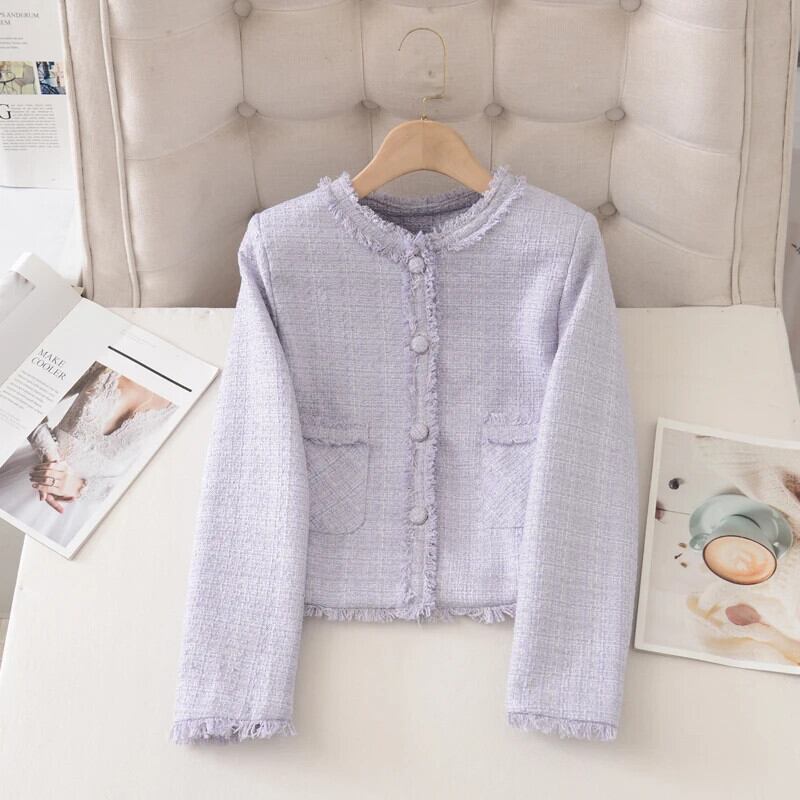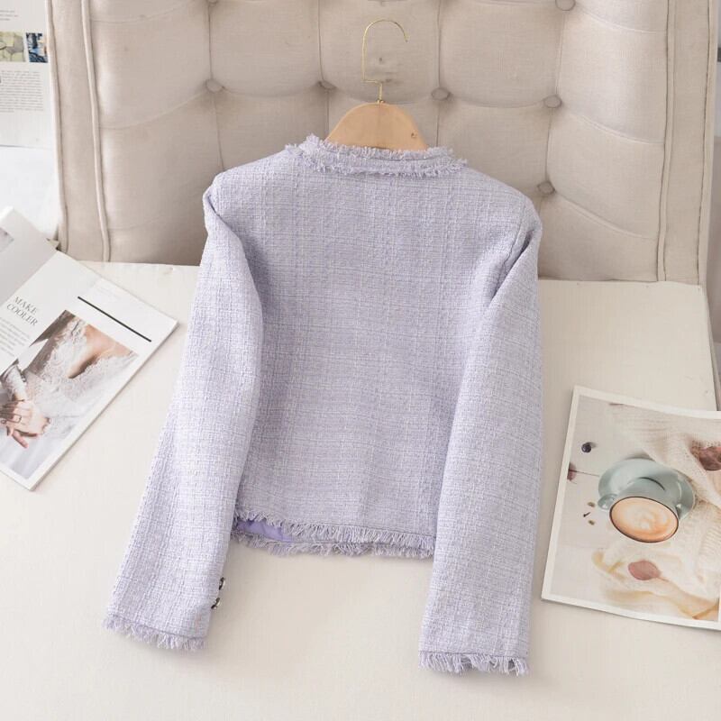 紫香りショートコート春秋ジャケット Casacos Chaqueta スプリング 春物 オータム 秋物 パープル