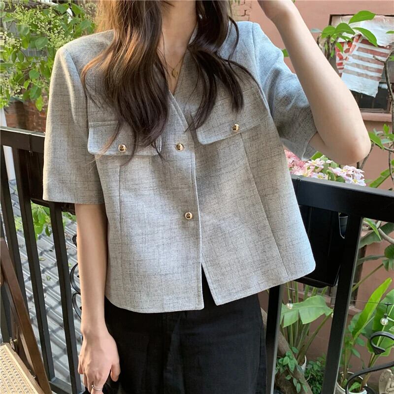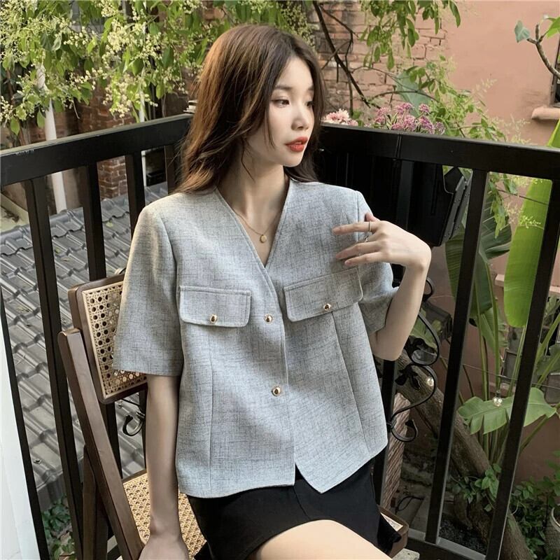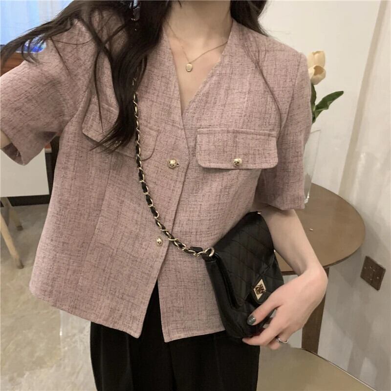 2024 夏ショートフレグランス V ネックトップ甘いアウター 大人ガーリー スウィート キュート カジュアル サマー 夏物 Vネック