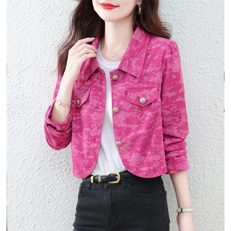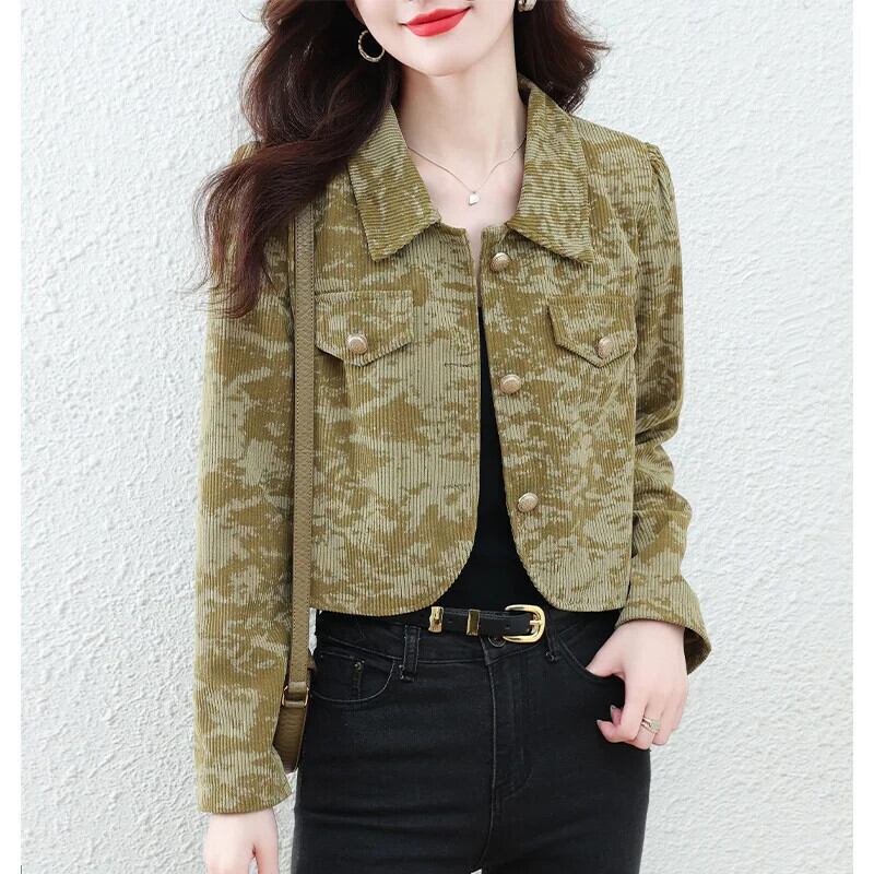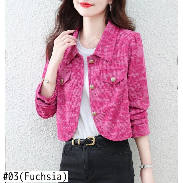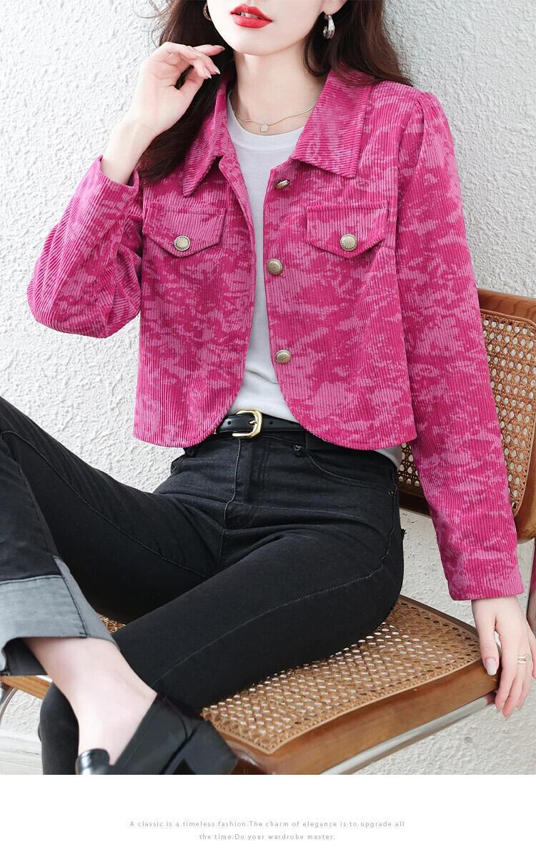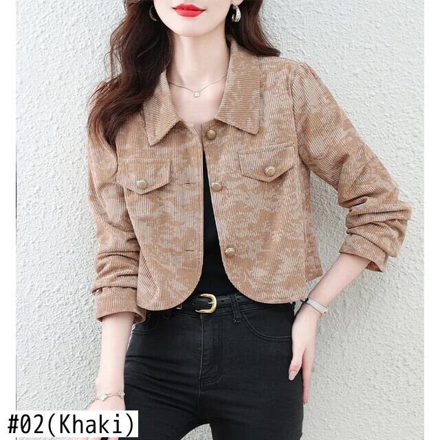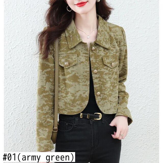 ショートコート レディース 春秋 コーデュロイ フレグランスプリント ジャケット スプリング 春物 オータム 秋物