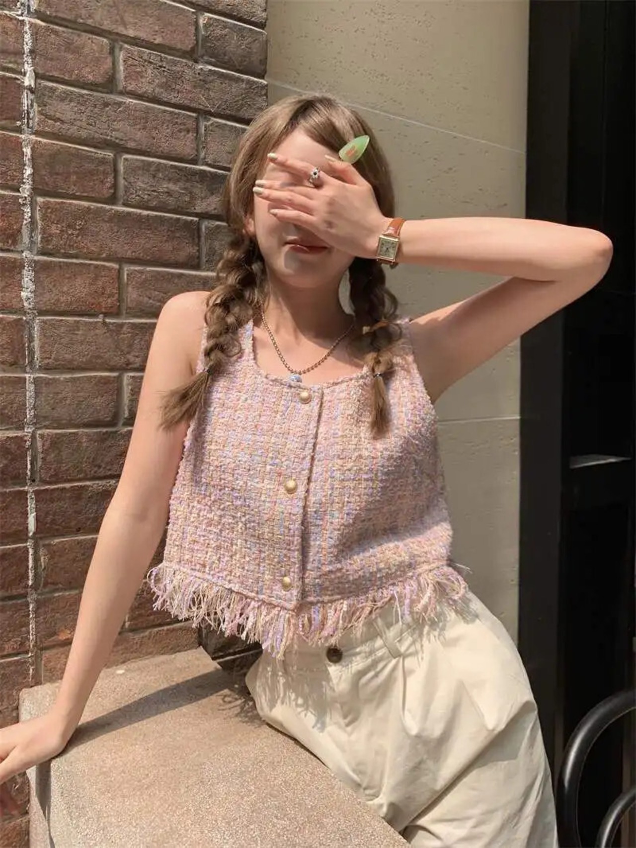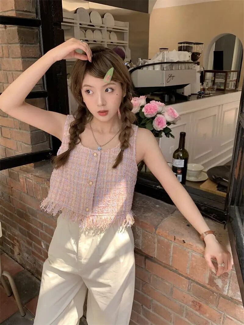 夏テル ショート ストラップ タンク チョッキ トップ ルーズ スクエア ネック レディース 生き抜く ベスト サマー 夏物 スクウェア