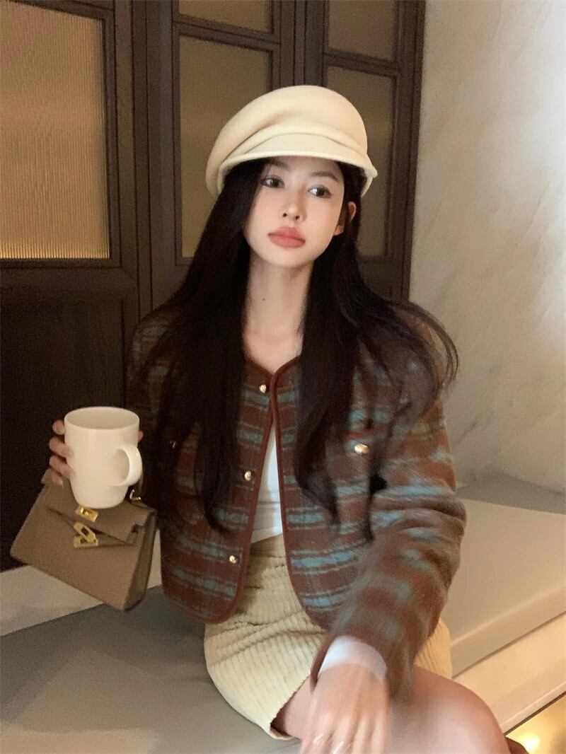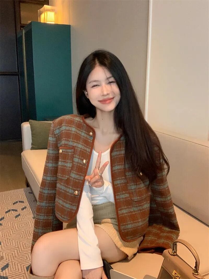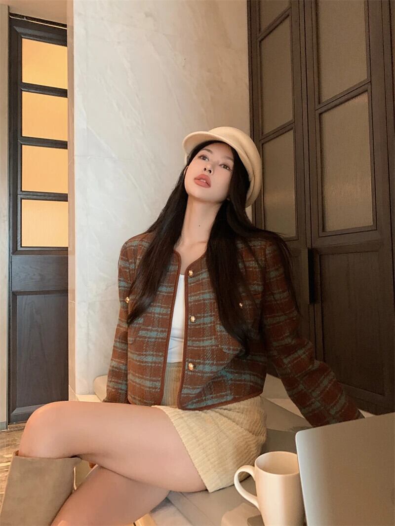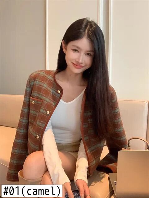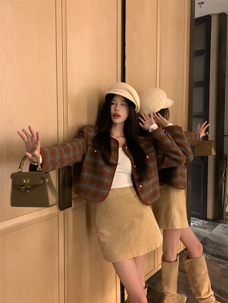 レディース秋冬フレグランスコート厚手ツイードシングルブレストOL長袖ジャケット ロング オータム 秋物 ウィンター 冬物