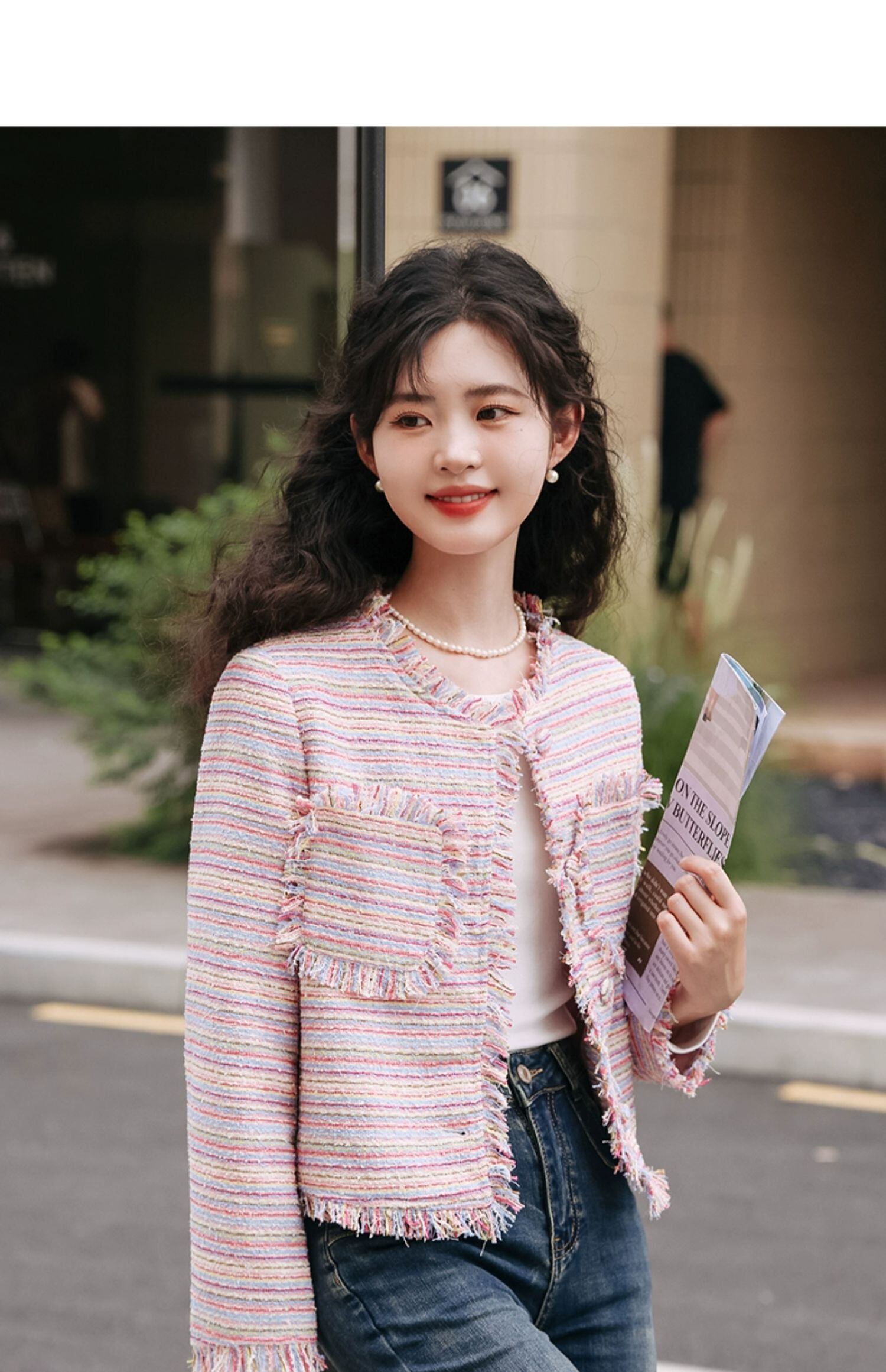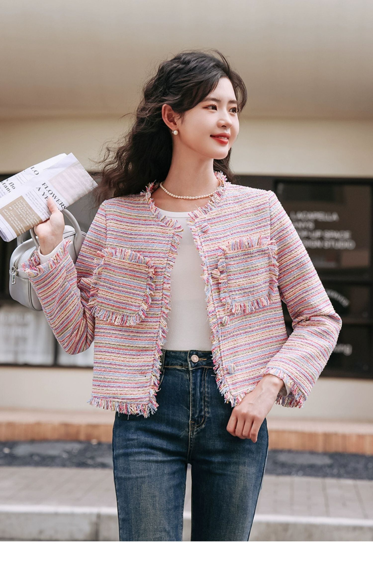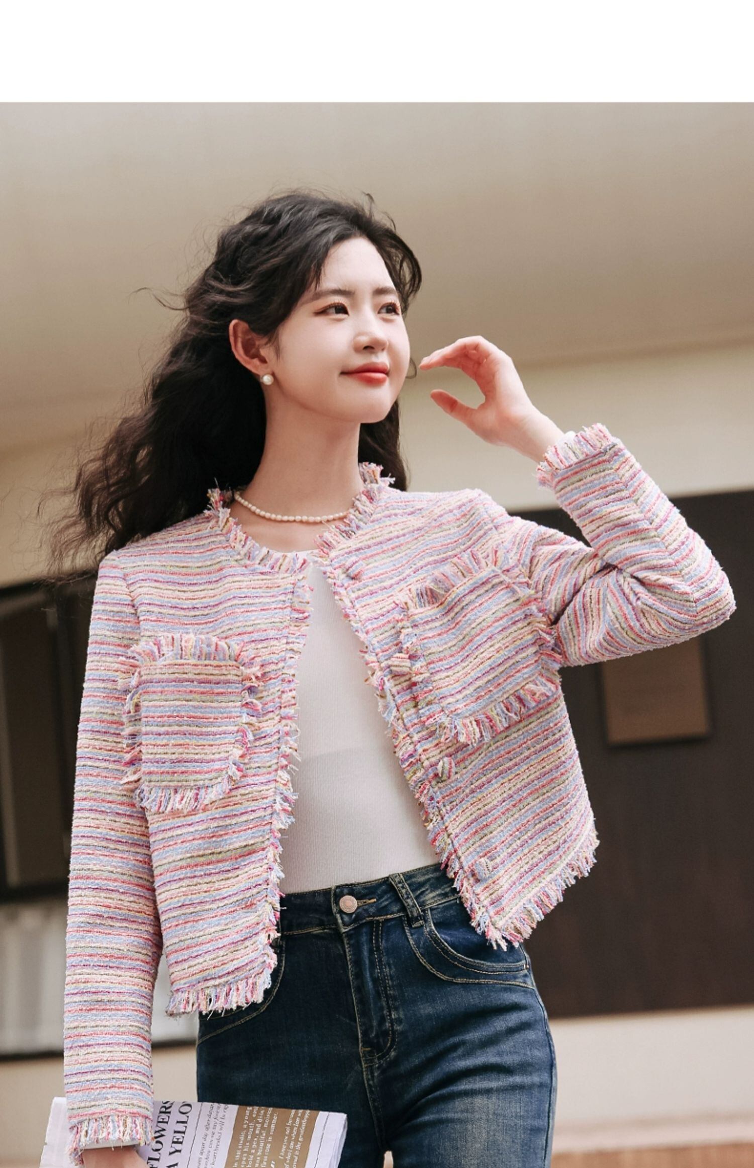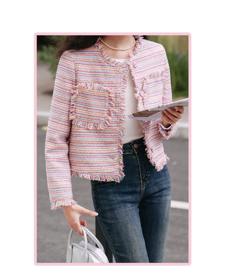 香りコート秋テルカラフル糸織り甘い多目的ジャケット 大人ガーリー スウィート キュート カジュアル オータム 秋物