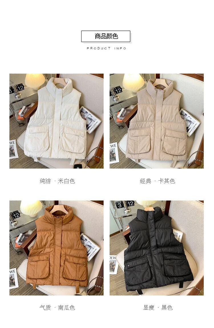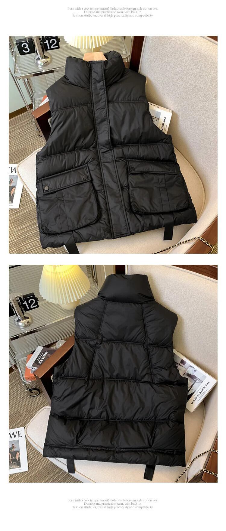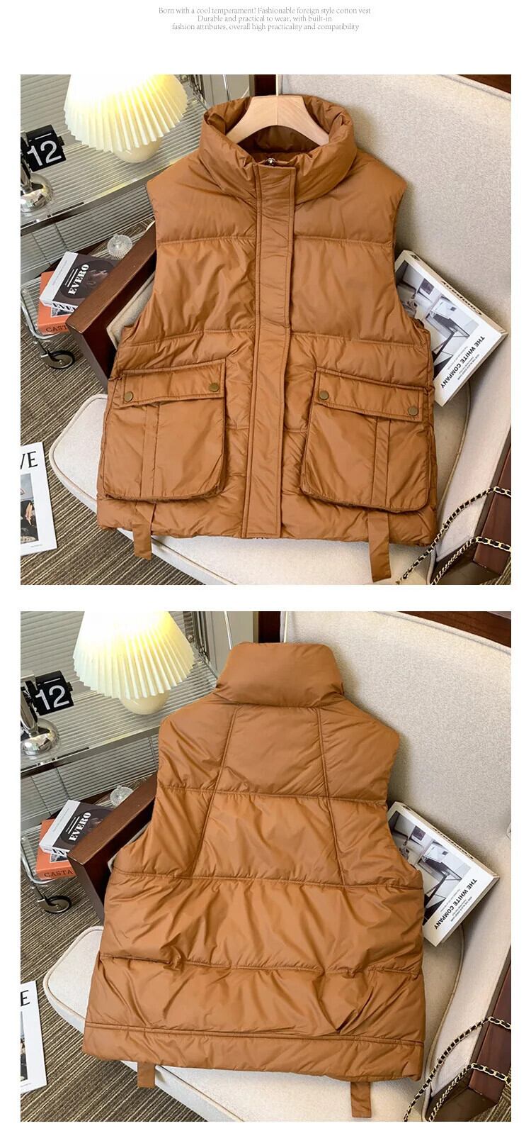 立ち襟大きポケットショートベストコートトレンディダウンコットンコートチョッキ