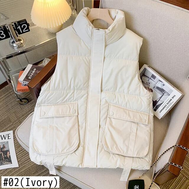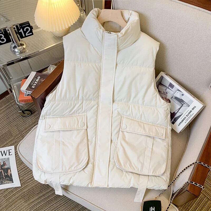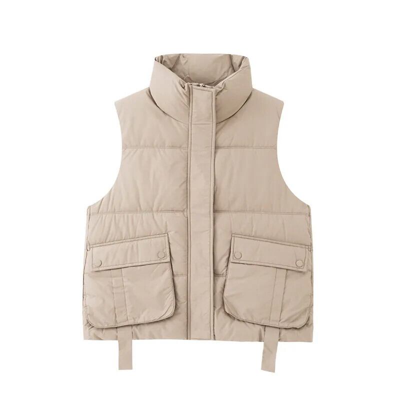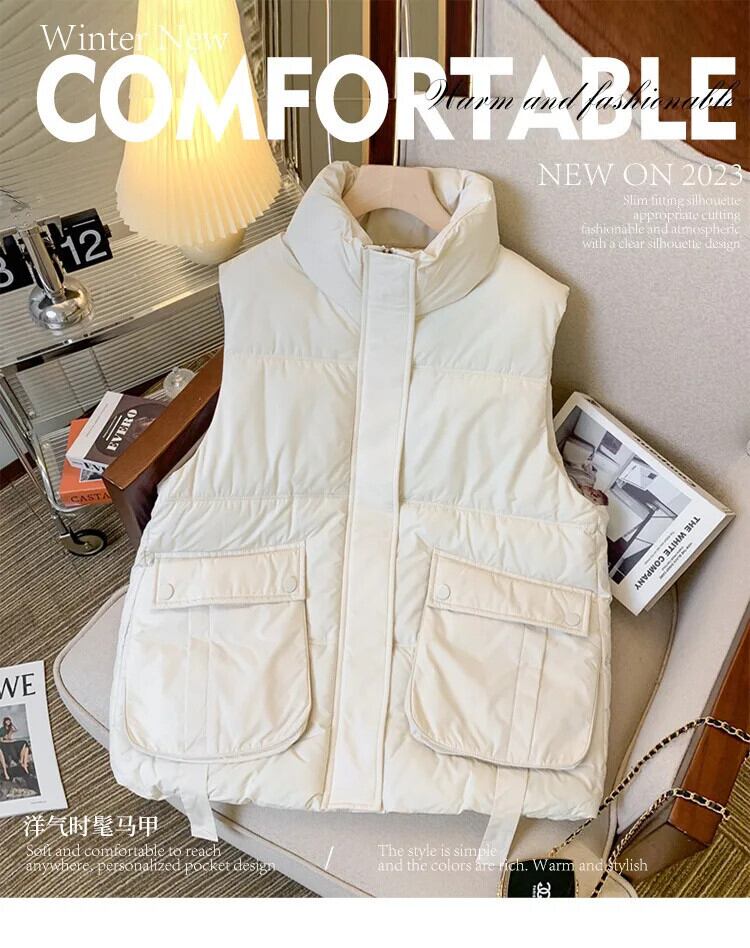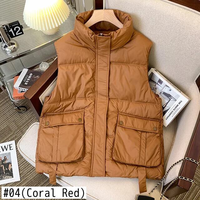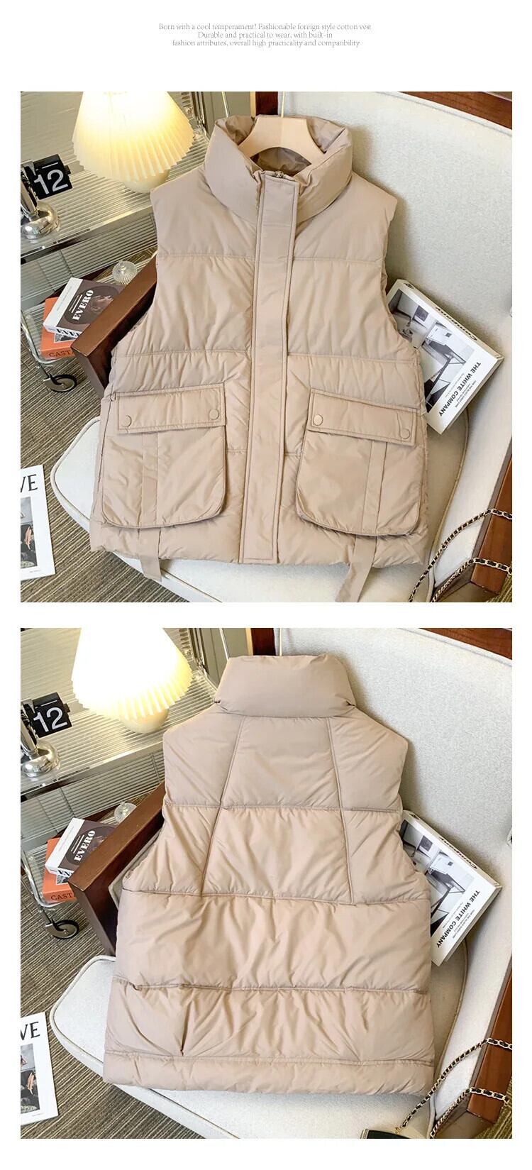 立ち襟大きポケットショートベストコートトレンディダウンコットンコートチョッキ