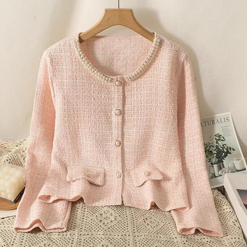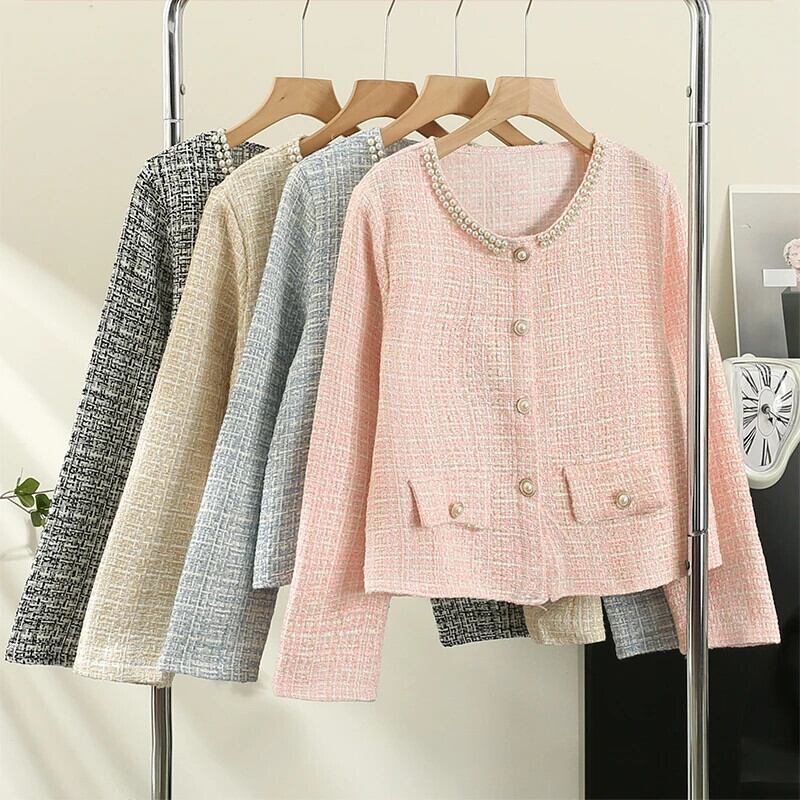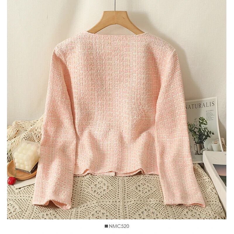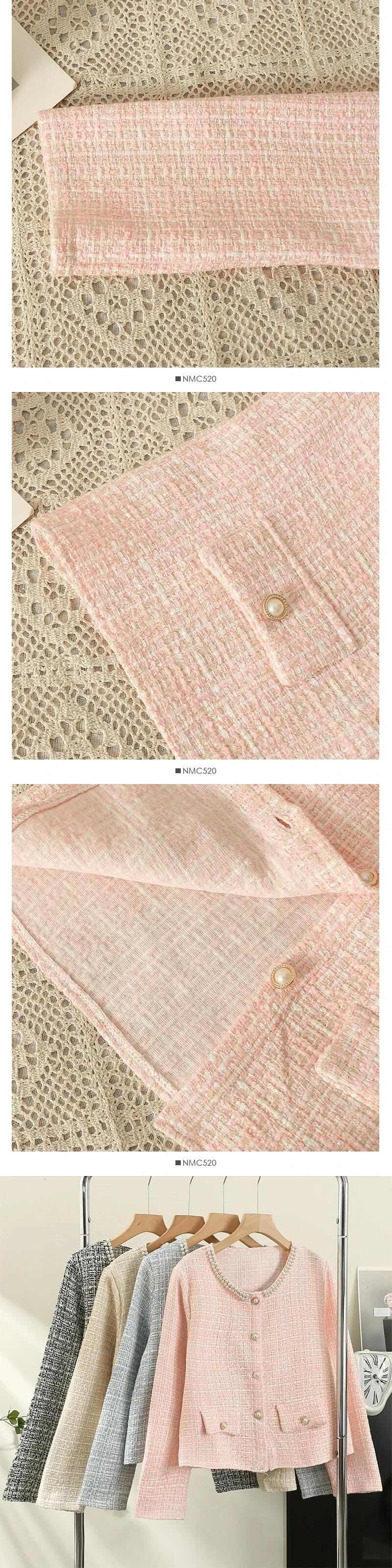 秋スタッズ付きラウンドネック厚いピンクショートコートジャケット Y2K ストリート Jaqueta オータム 秋物 Oネック