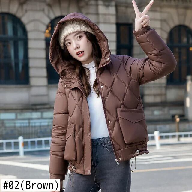 XL 4XL レディース フード付きジッパー長袖ウォームダウンコットンコート生き抜く冬ショートパーカー ロング ウィンター 冬物