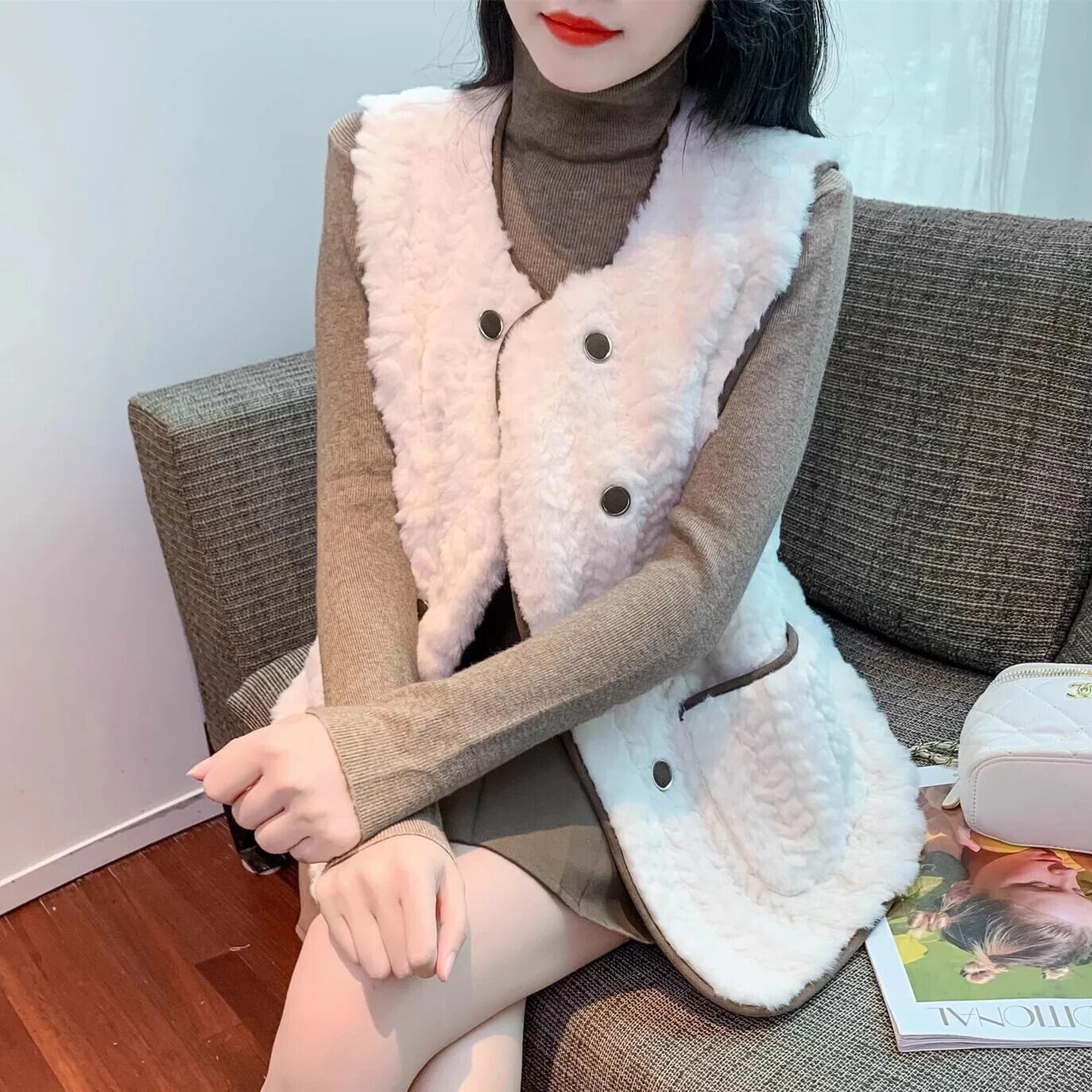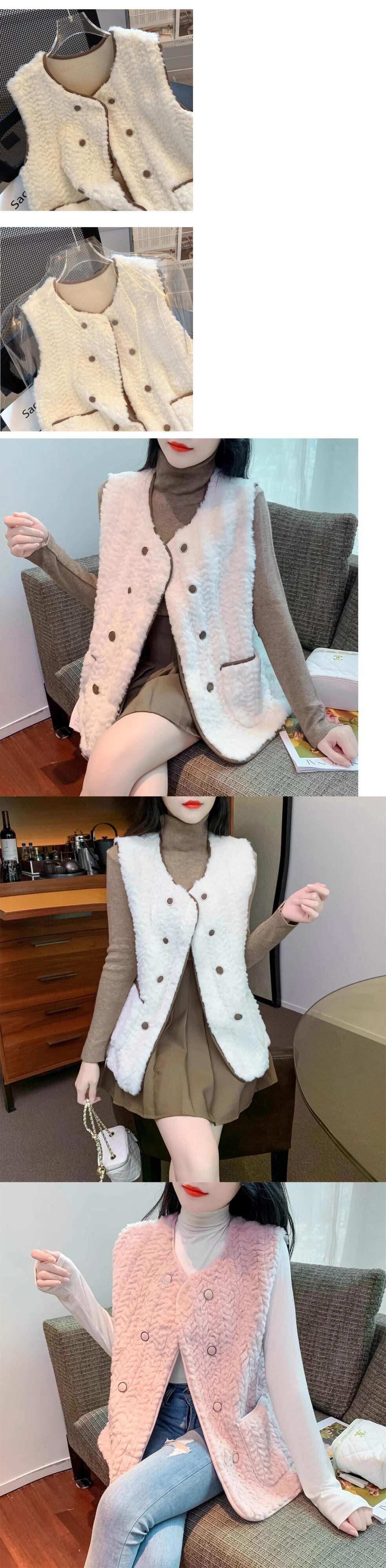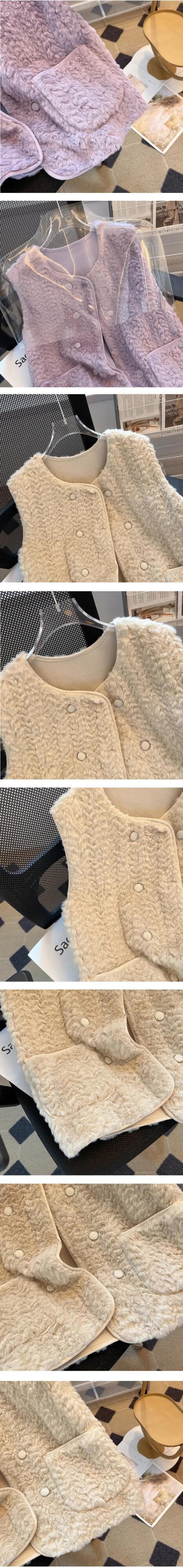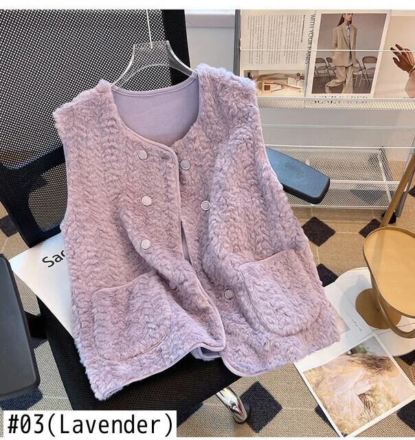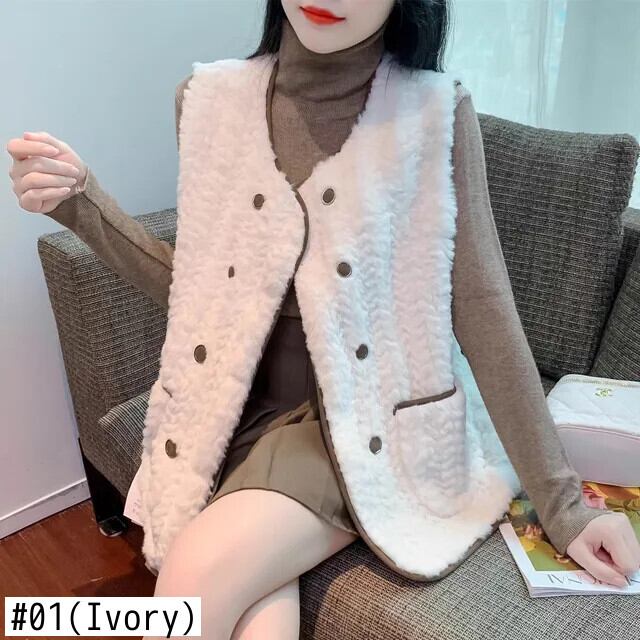 西洋化されたノースリーブラムヘアベスト秋/冬生き抜くミッドレングス生き抜くタンクトップコート オータム 秋物 ウィンター 冬物
