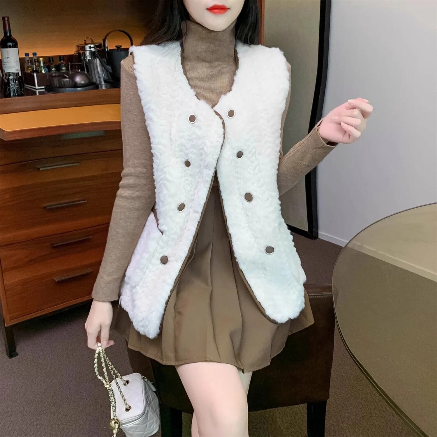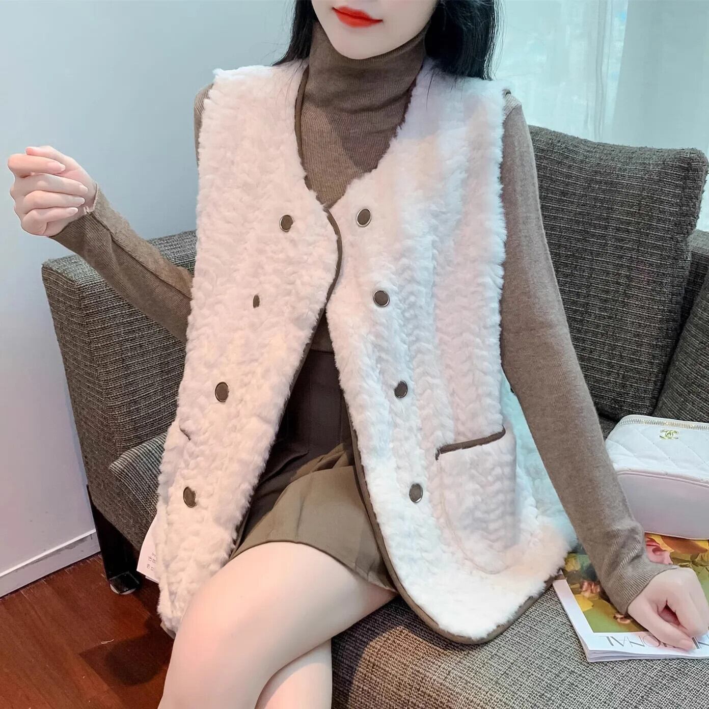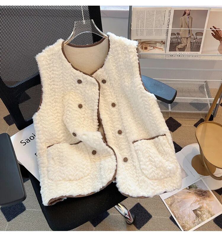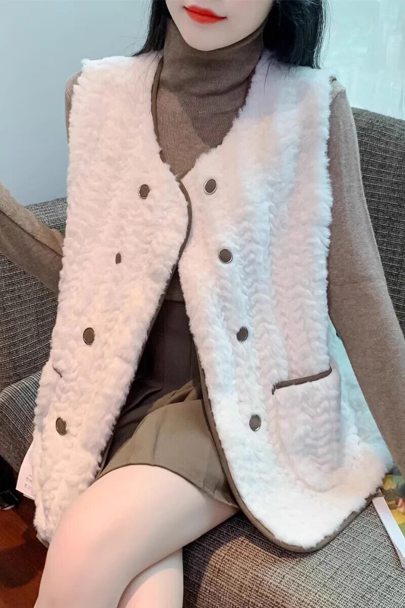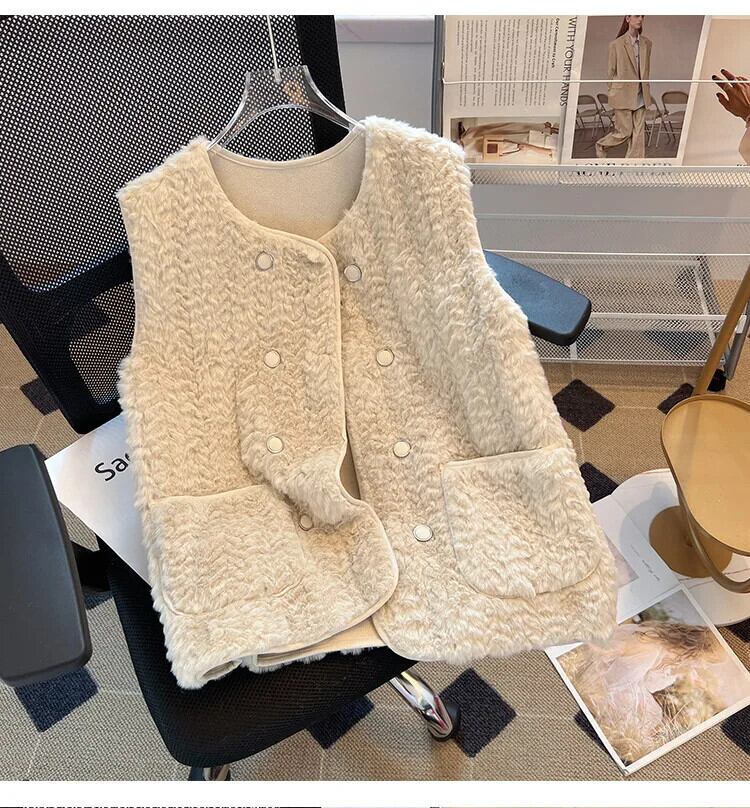 西洋化されたノースリーブラムヘアベスト秋/冬生き抜くミッドレングス生き抜くタンクトップコート オータム 秋物 ウィンター 冬物