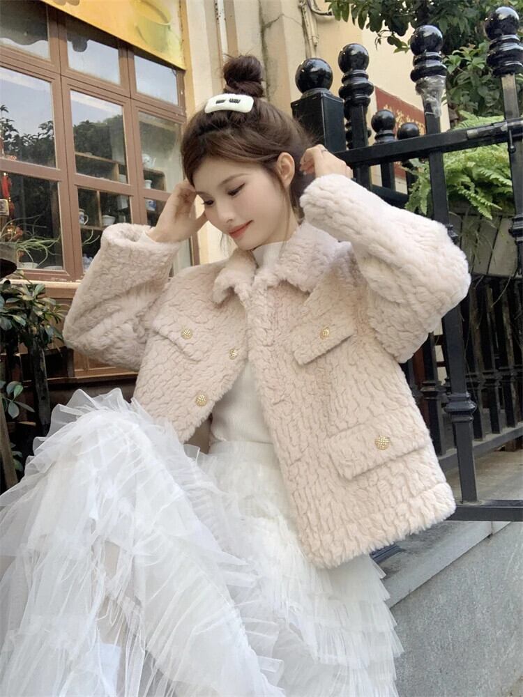 秋冬香りよい子羊毛ぬいぐるみ肥厚毛皮コート紳士気質ジャケット オータム 秋物 ウィンター 冬物