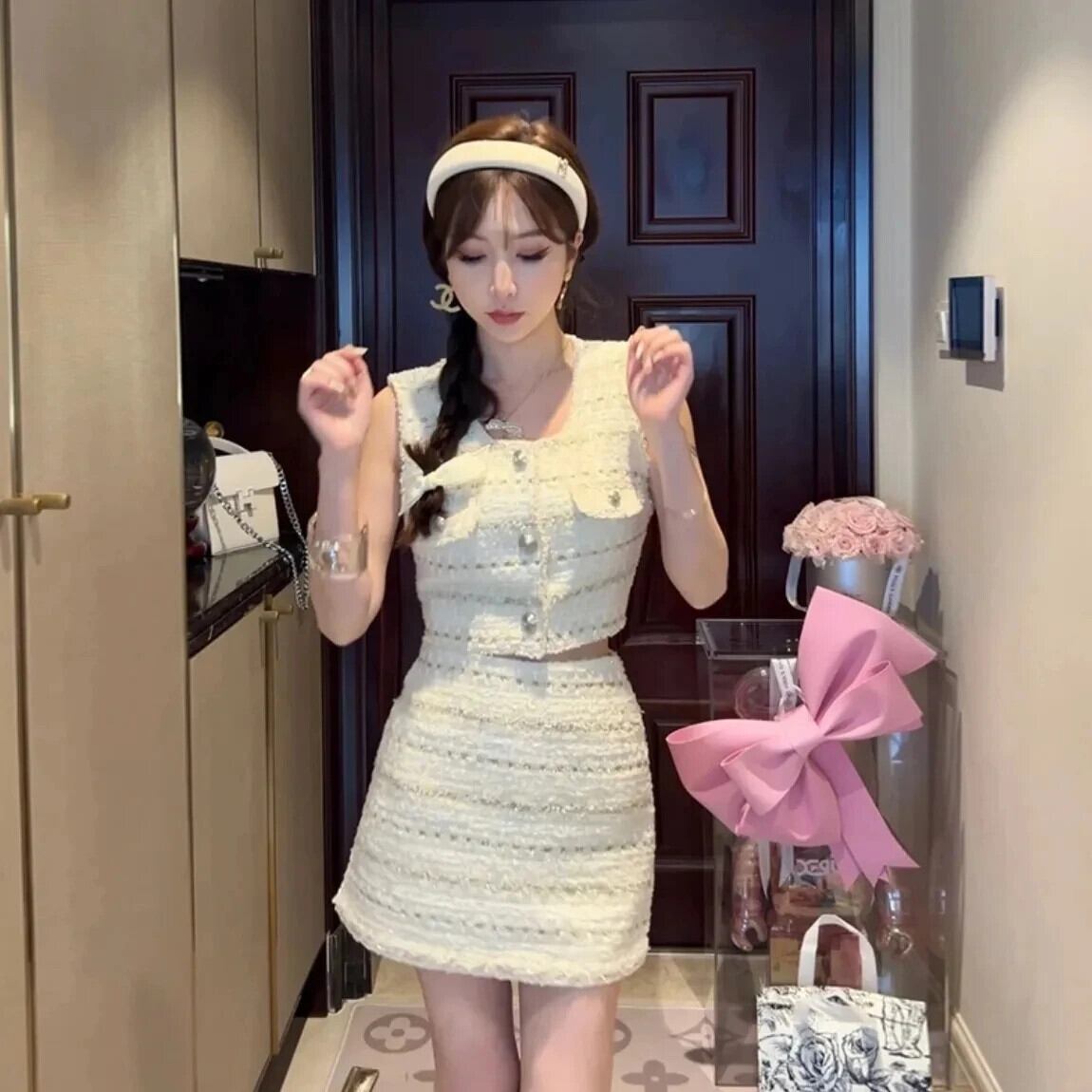 夏香りスタイルセットノースリーブセクシータンククロップベスト + ハーフミニスカートツーピーススーツ サマー 夏物