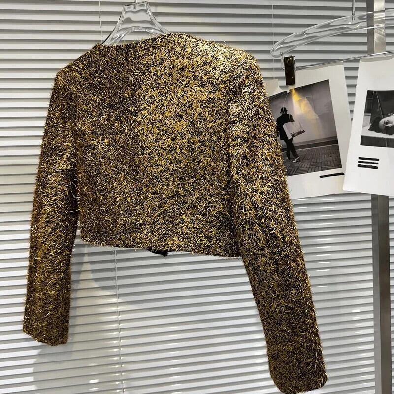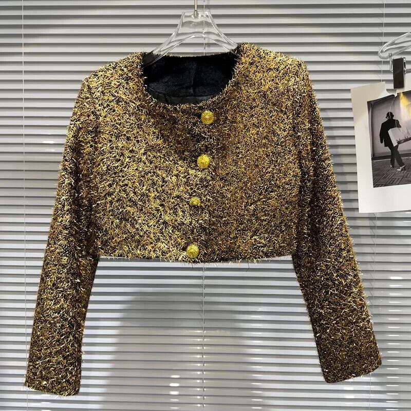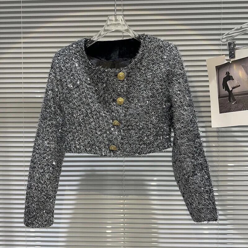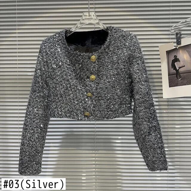 秋冬香りレトロ金属バックル明るい生地気質セレブショートコートジャケット オータム 秋物 ウィンター 冬物 シルク