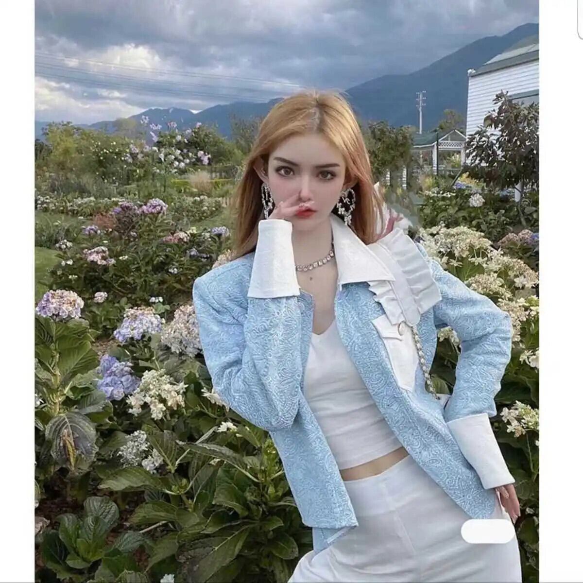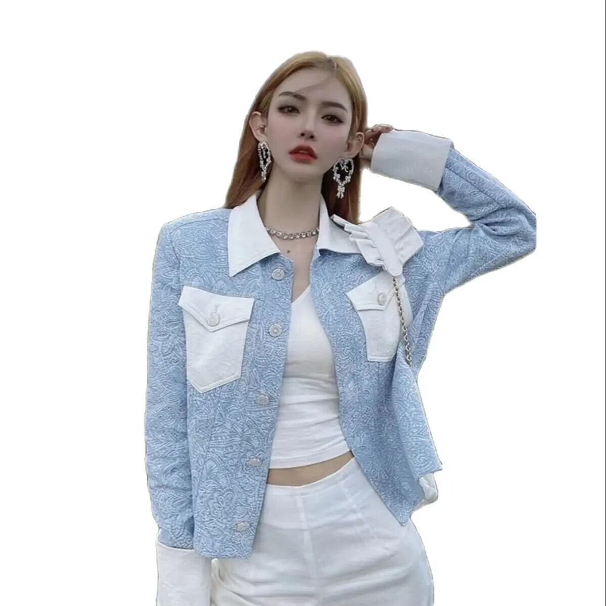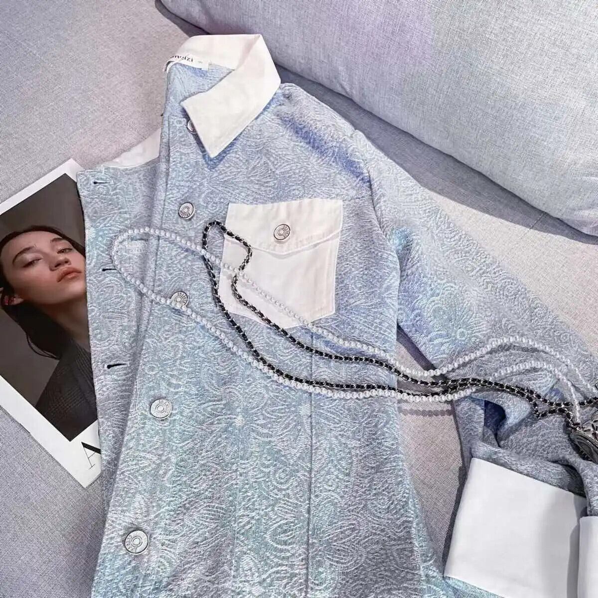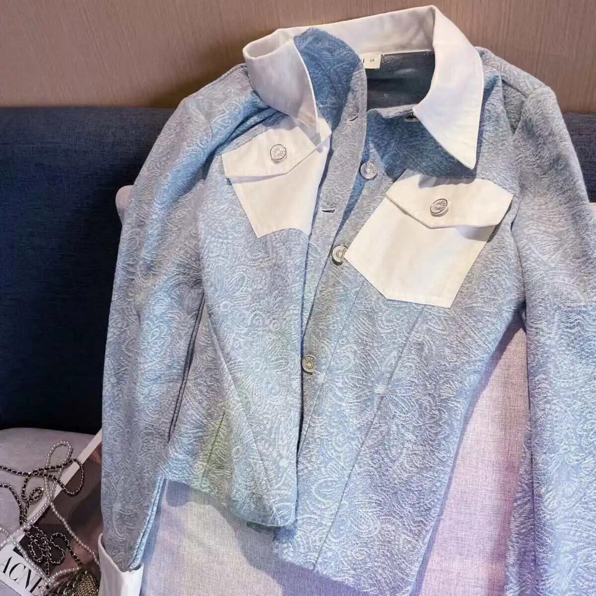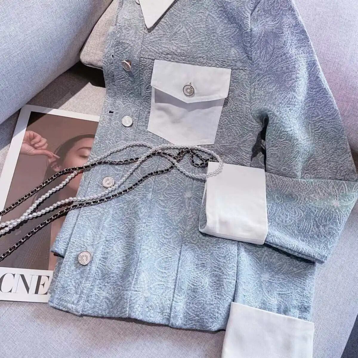 レディース春秋ブルーコートシングルブレストスリムフィットパネルジャケット スプリング 春物 オータム 秋物