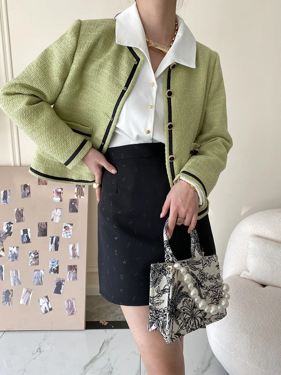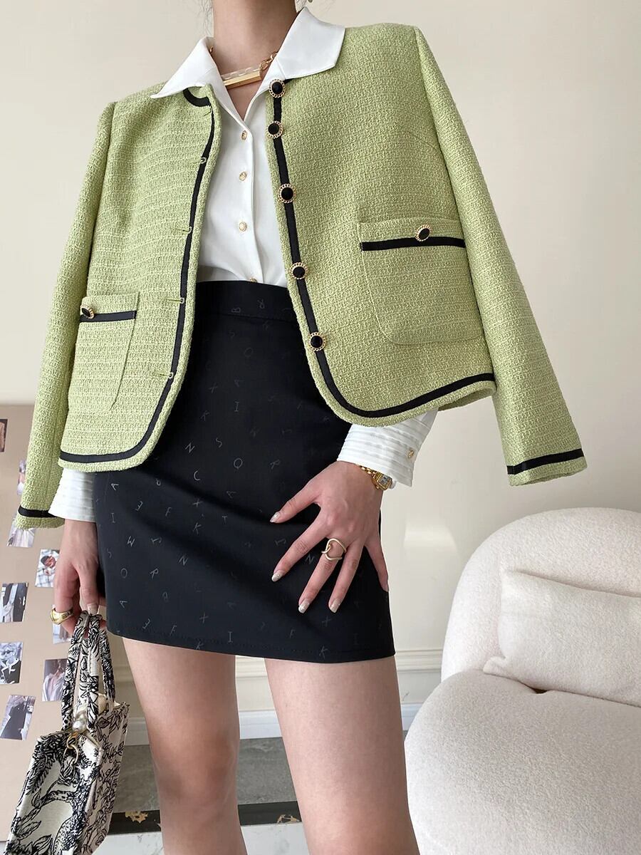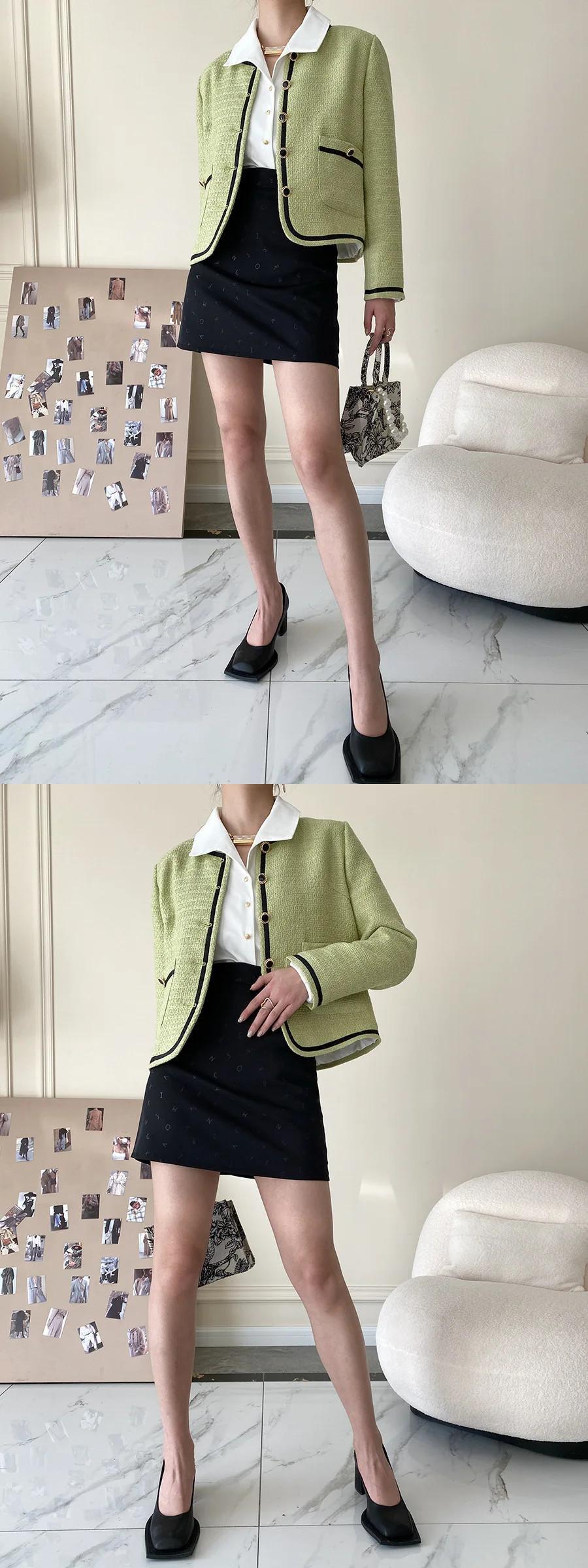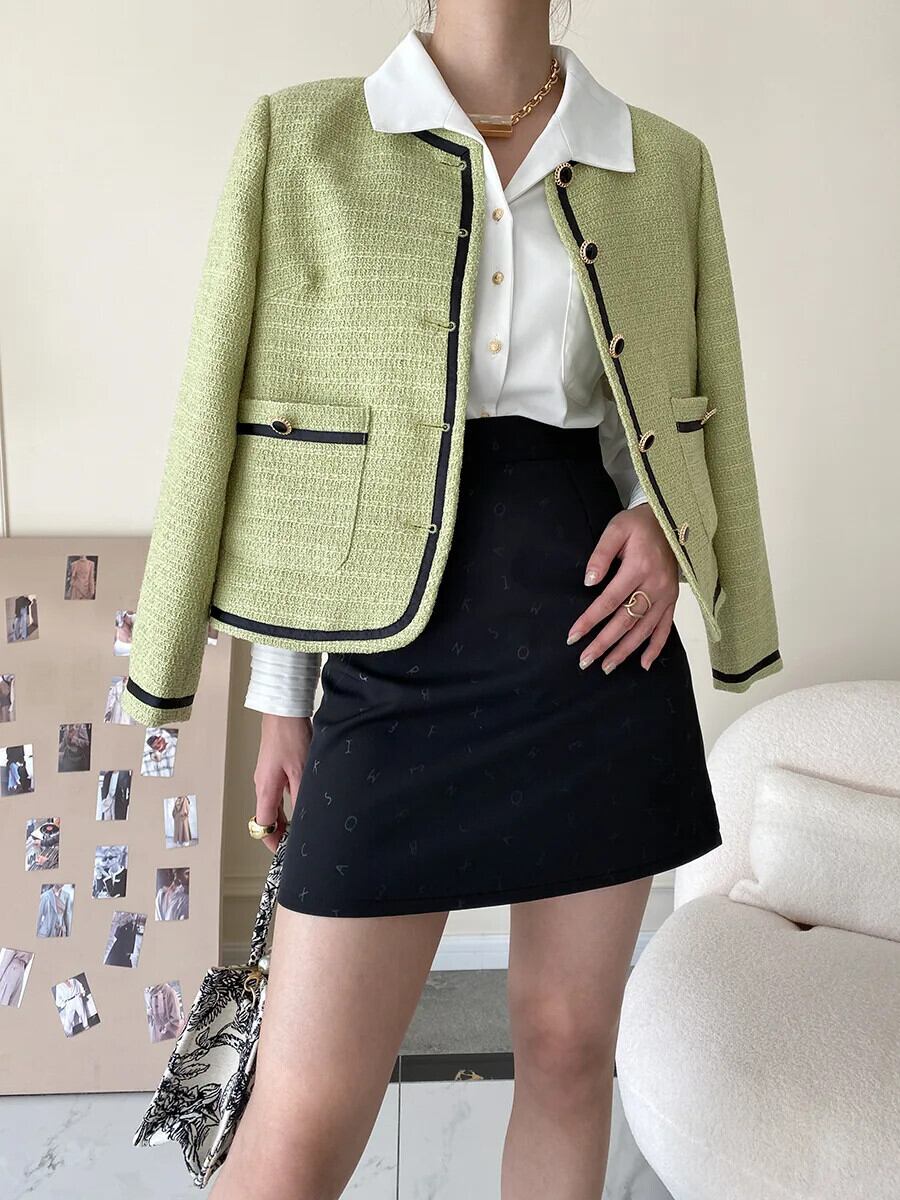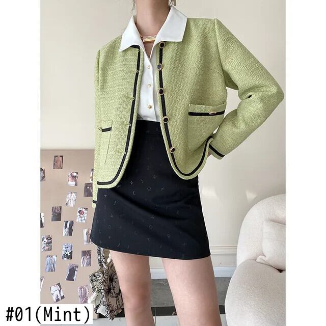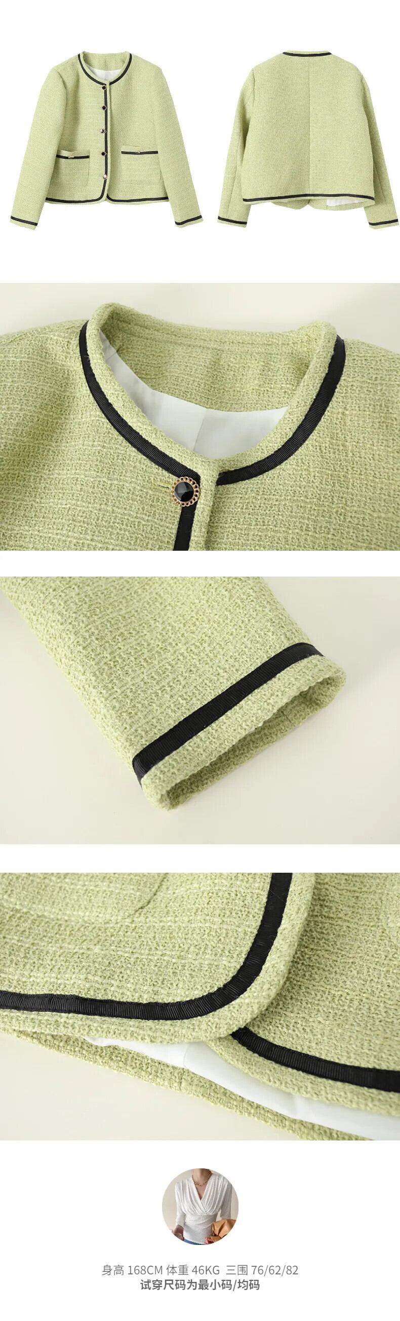 秋香りグリーンショートコートレディースウール長袖ツイードジャケットアウター ロング オータム 秋物