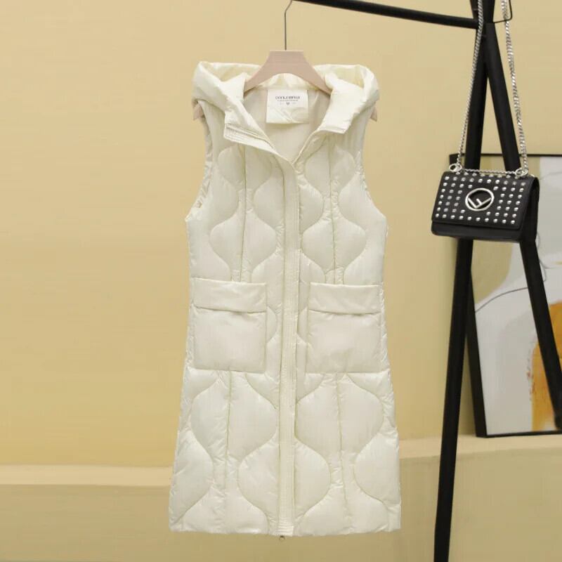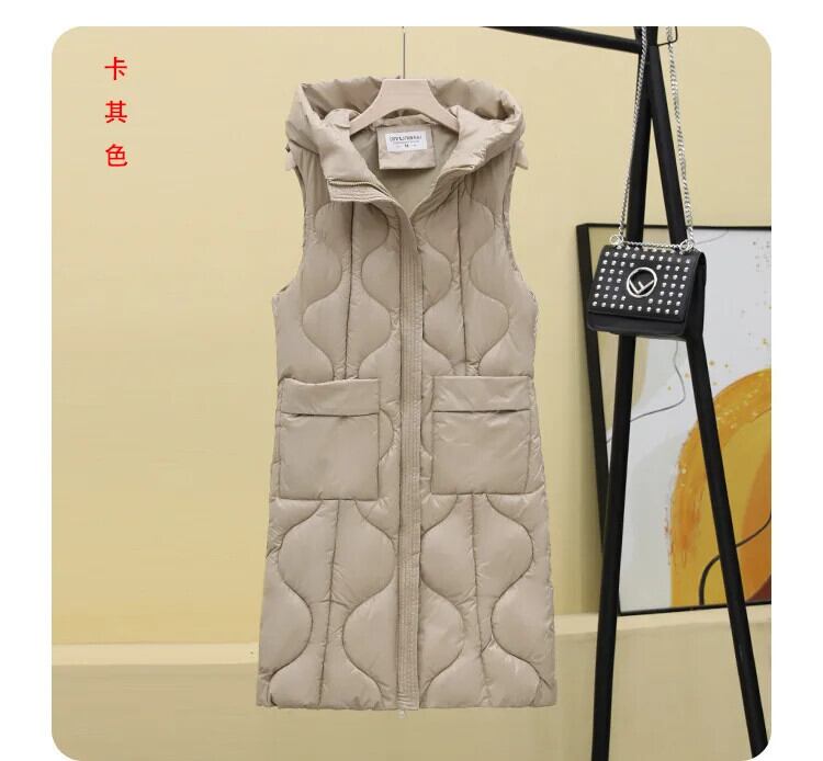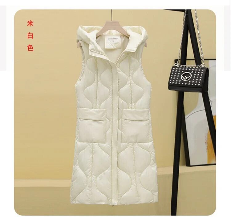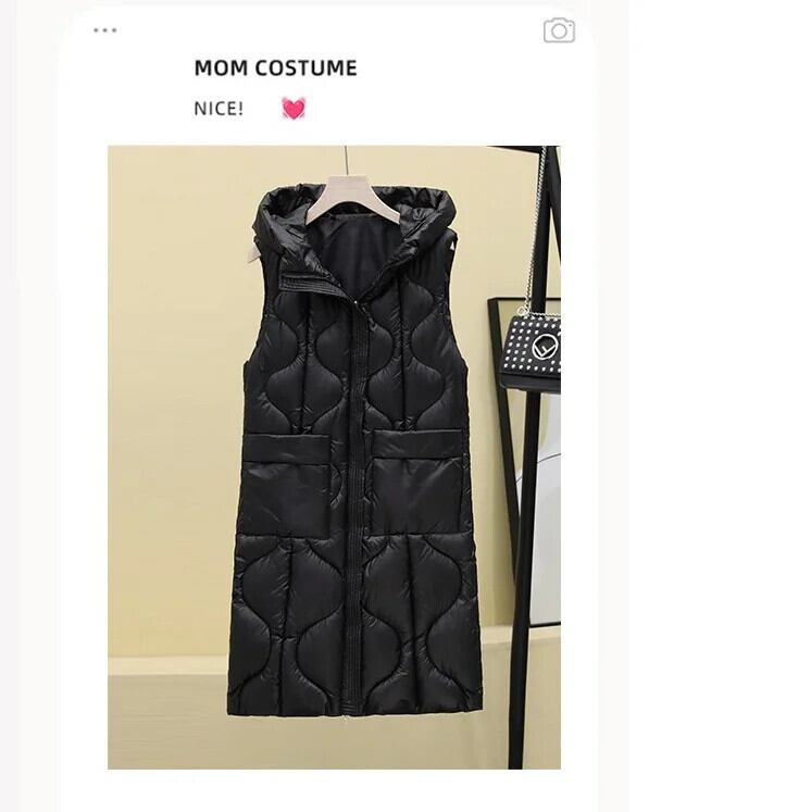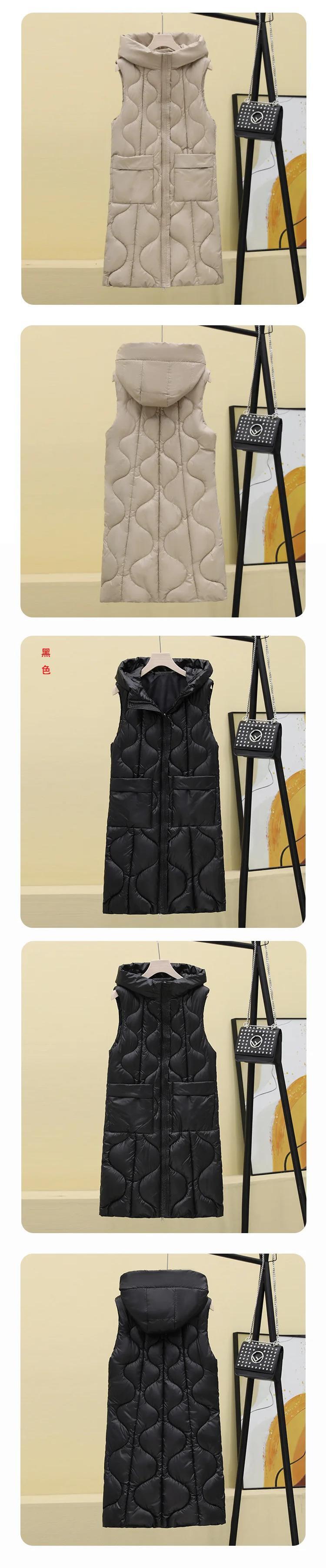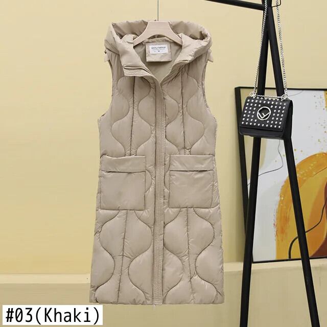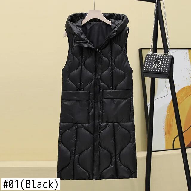 軽量ダウンコットンベストコートレディースロングフード付き秋/冬タンクトップウェイトコート オータム 秋物 ウィンター 冬物