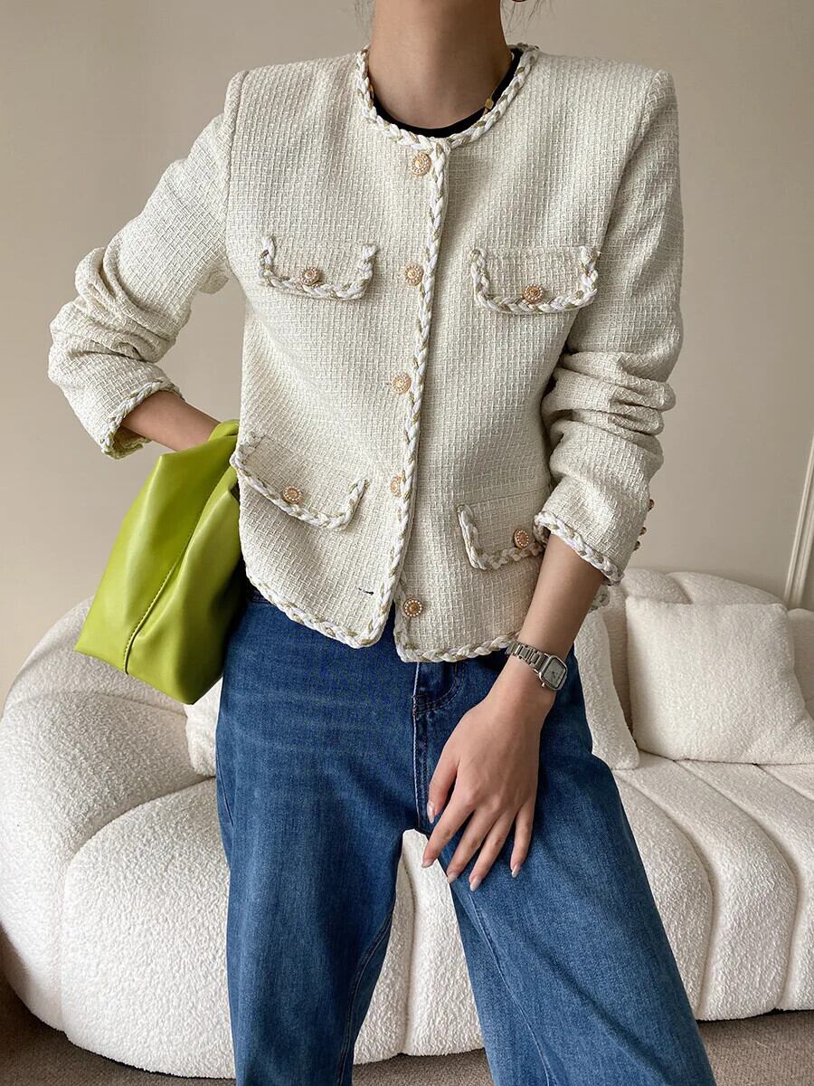 秋フライド ストリート ショート コート アウター フレグランス ツイード ジャケット Casacos オータム 秋物