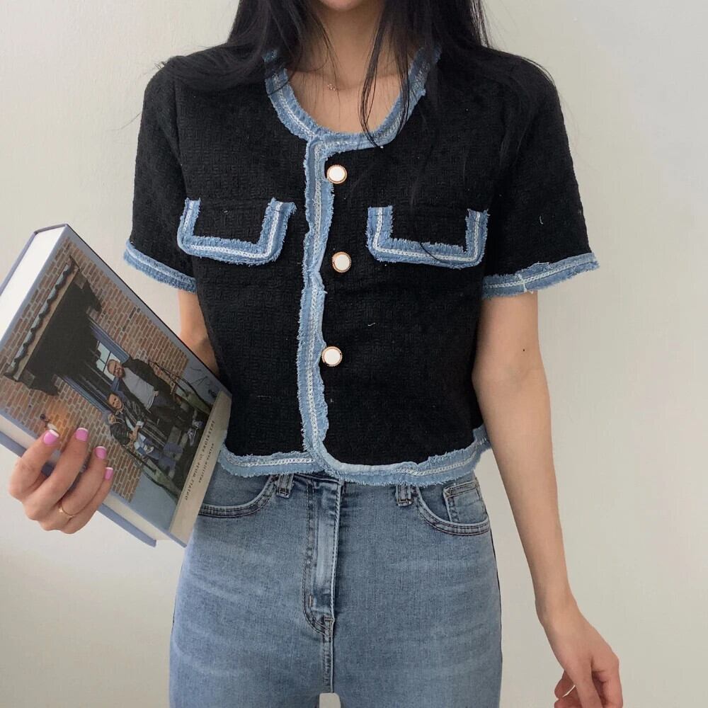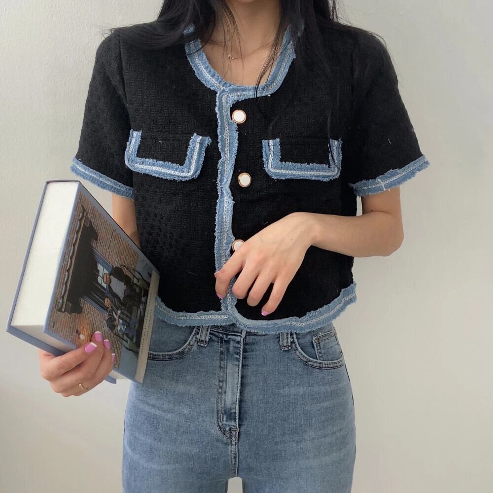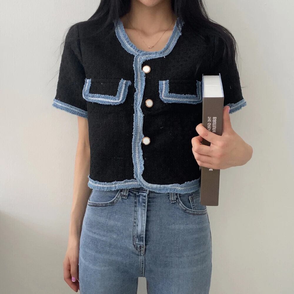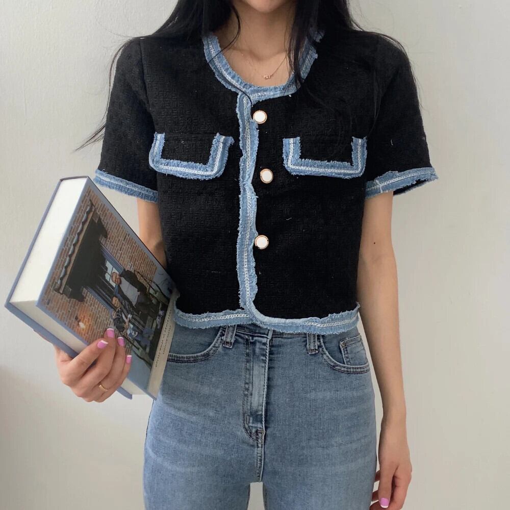 春/夏香り半袖コントラストコートルーズジャケット ショート ハーフスリーブ スプリング 春物 サマー 夏物