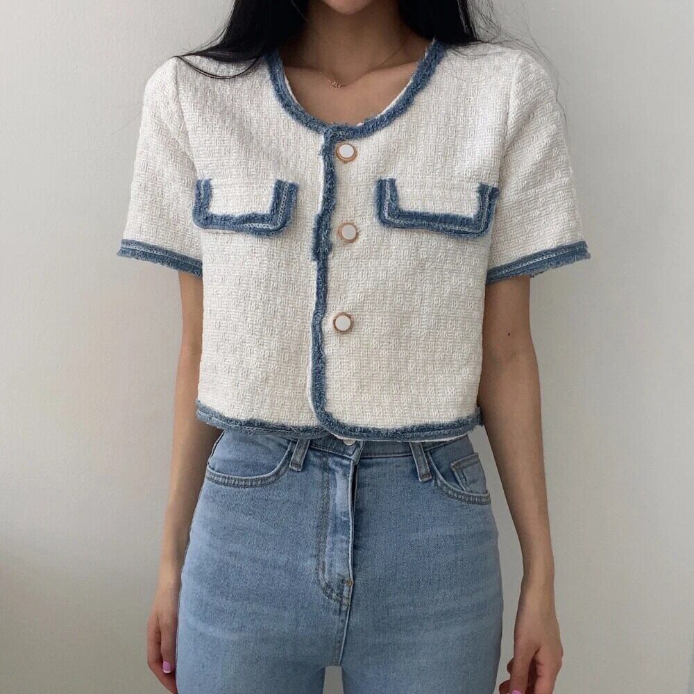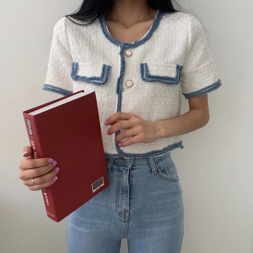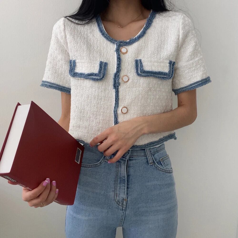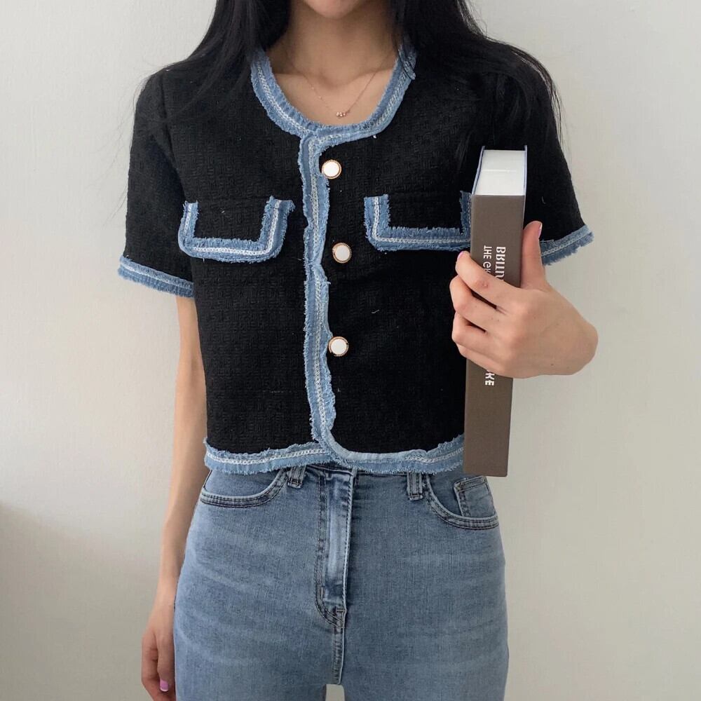 春/夏香り半袖コントラストコートルーズジャケット ショート ハーフスリーブ スプリング 春物 サマー 夏物