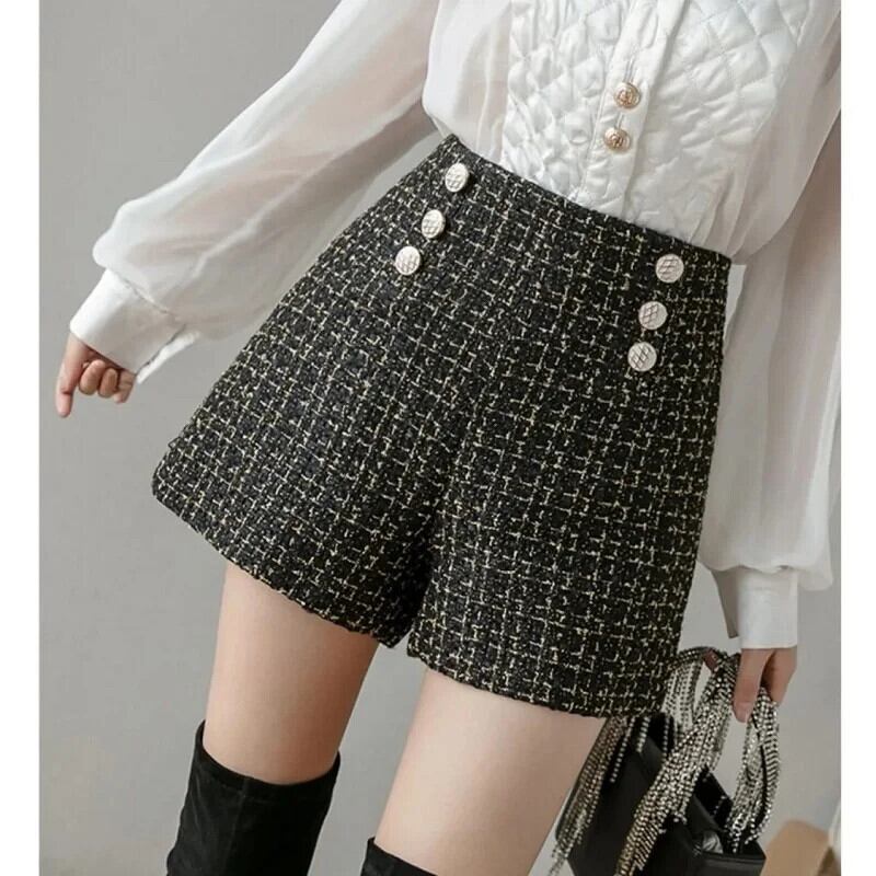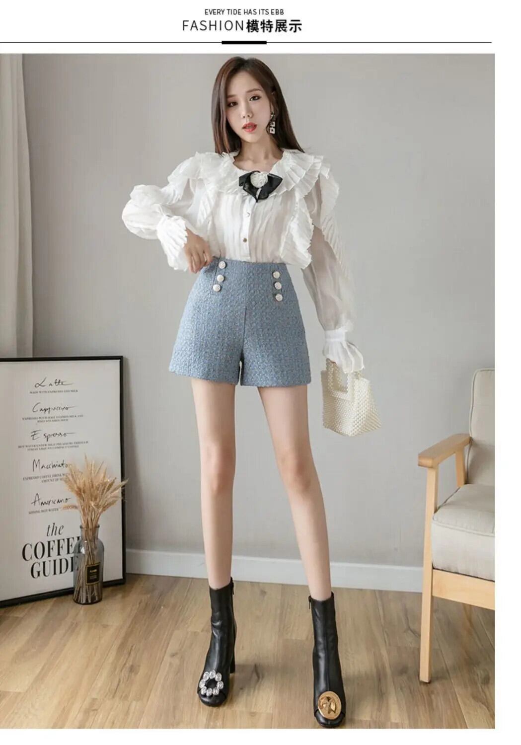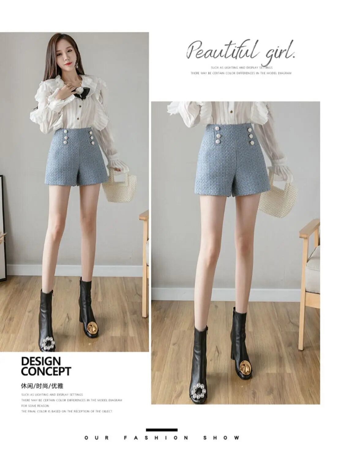 レディース秋冬フレンチウエストワイドレッグショーツ オータム 秋物 ウィンター 冬物 ブルマー ワイドパンツ