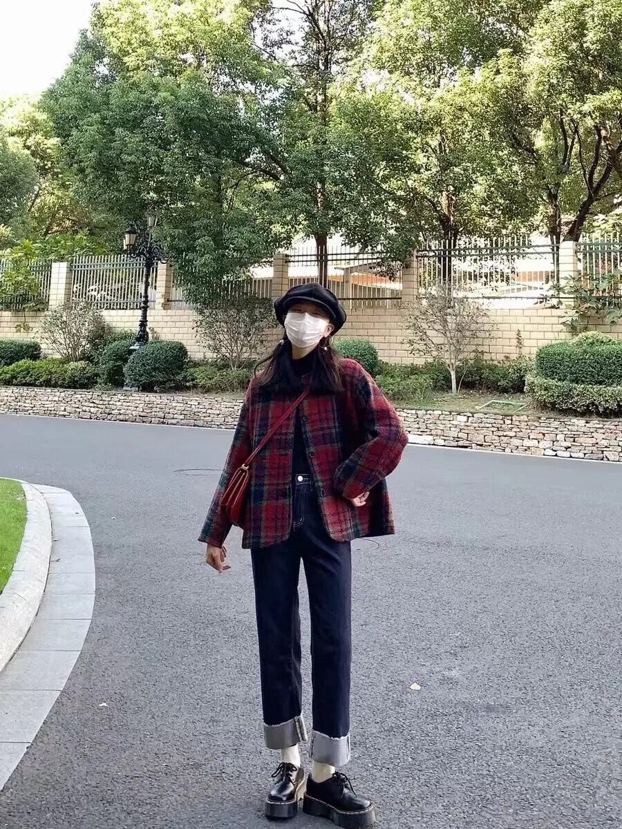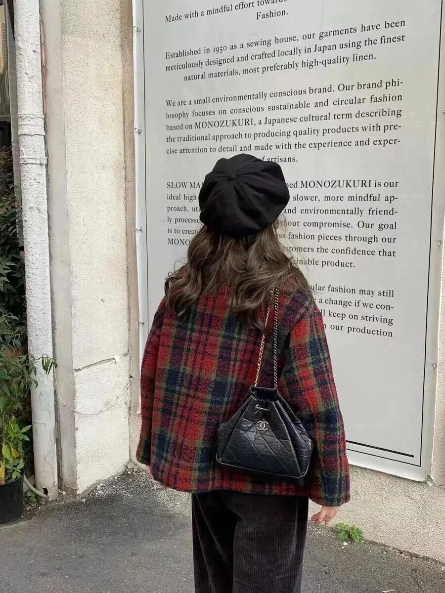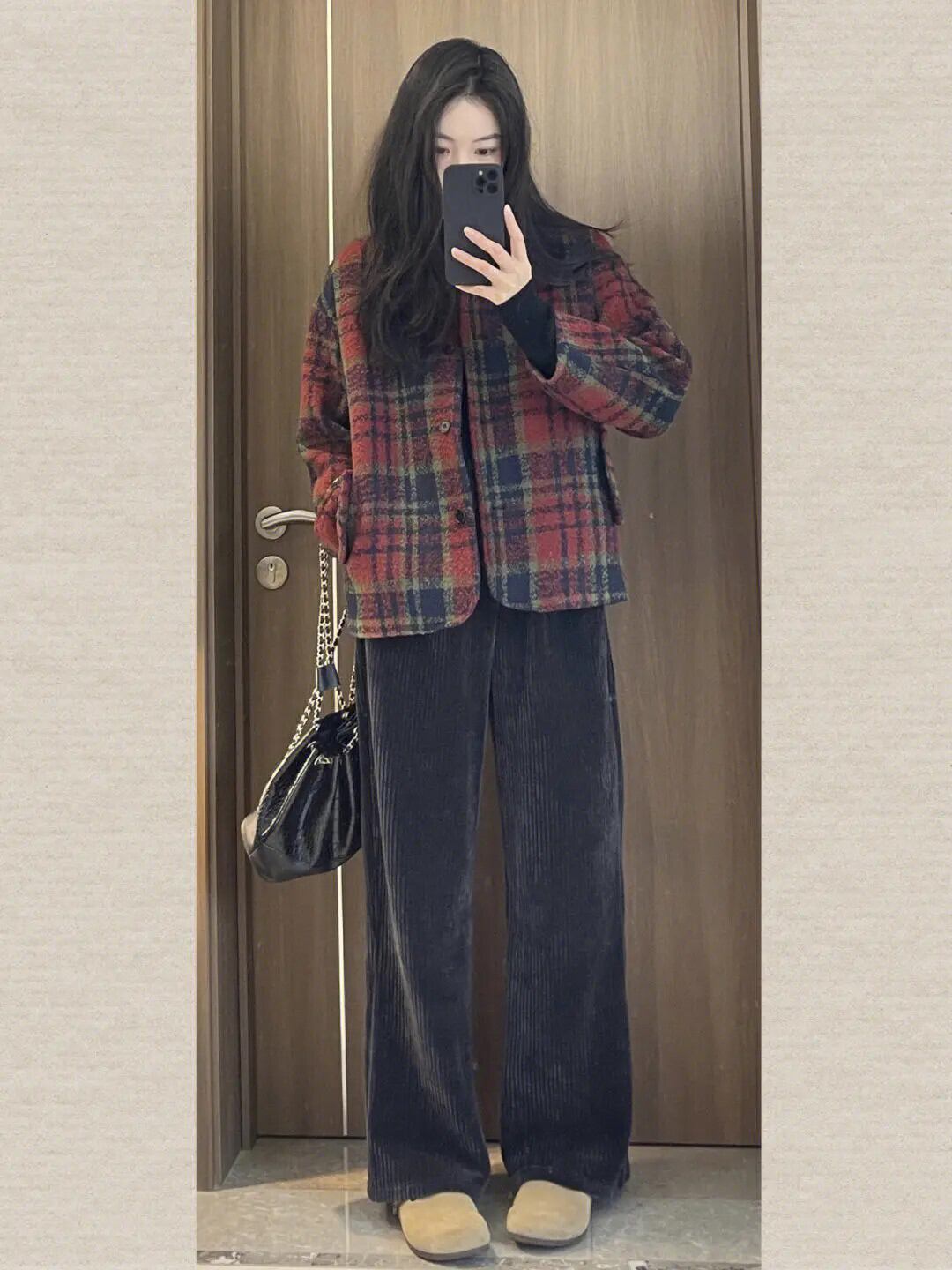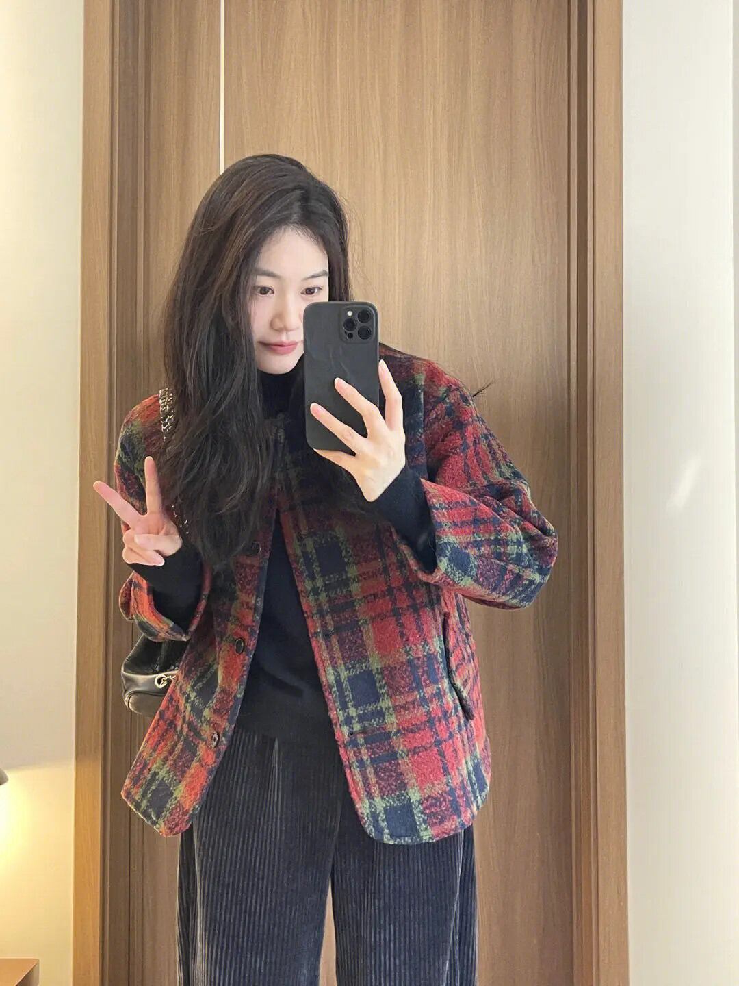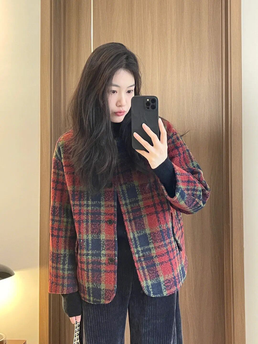 赤い格子縞ジャケット春秋気質ウールコート レッド スプリング 春物 オータム 秋物