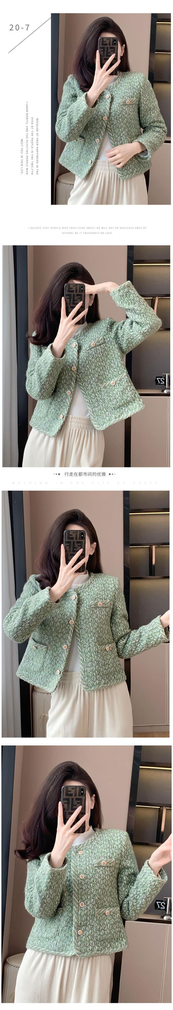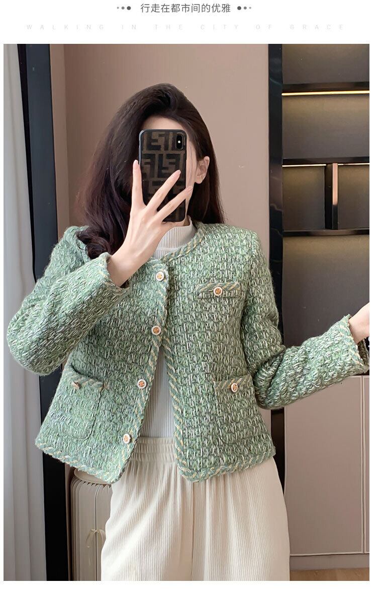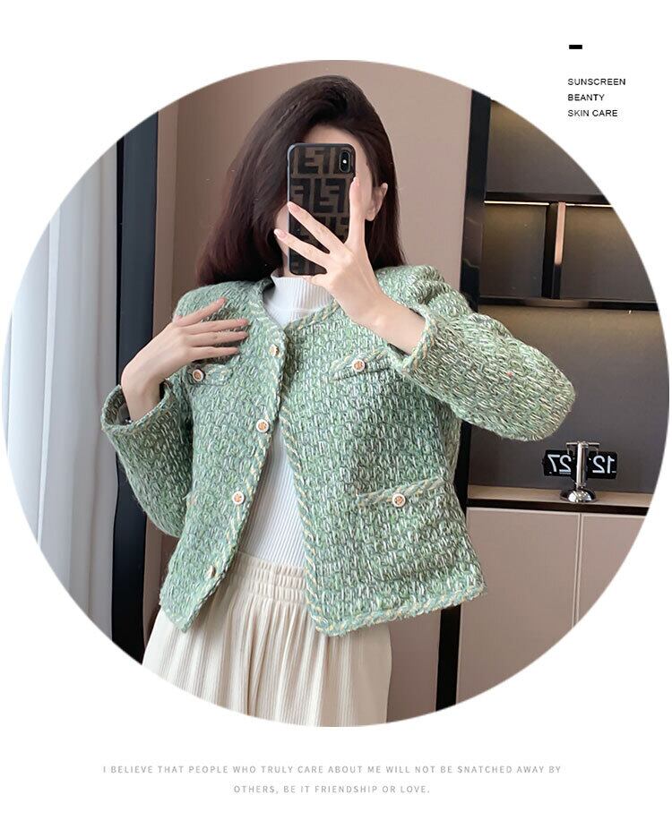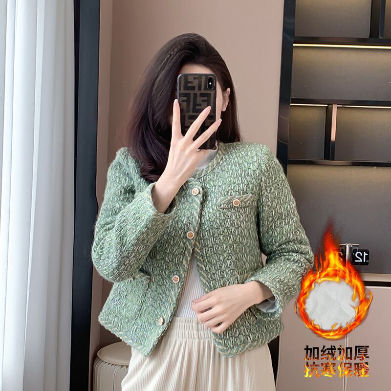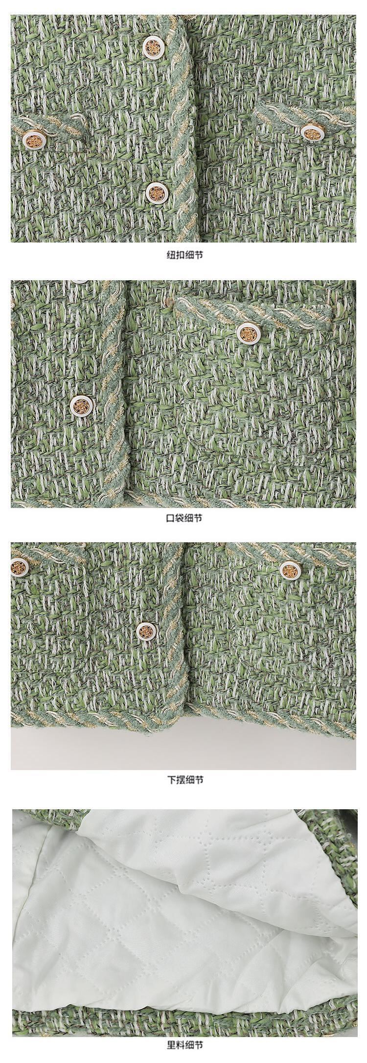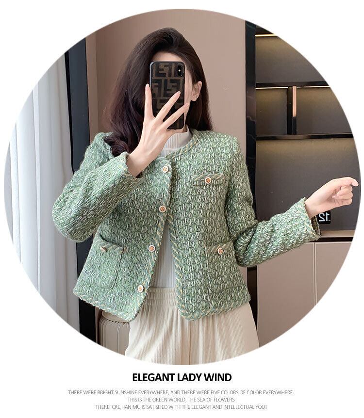 香りよいツイード ジャケット コットン グリーン裏地冬暖かさスリム ジャケット ウィンター 冬物