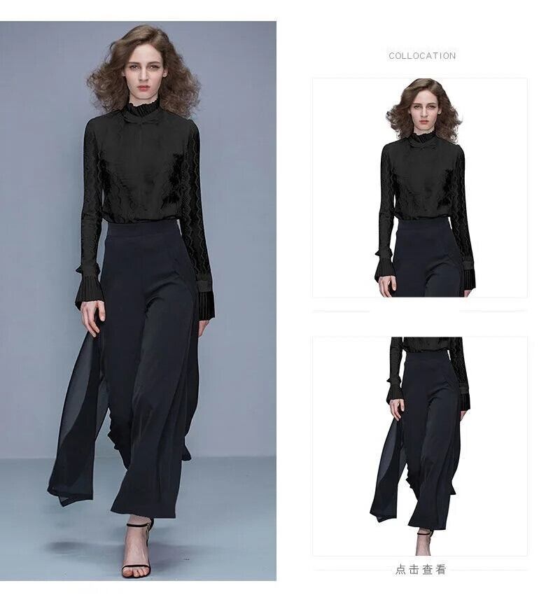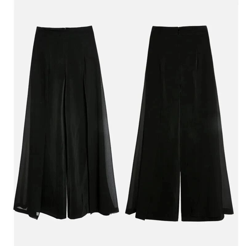 春秋ウエストブラックドレープワイドレッグパンツ スプリング 春物 オータム 秋物 ワイドパンツ