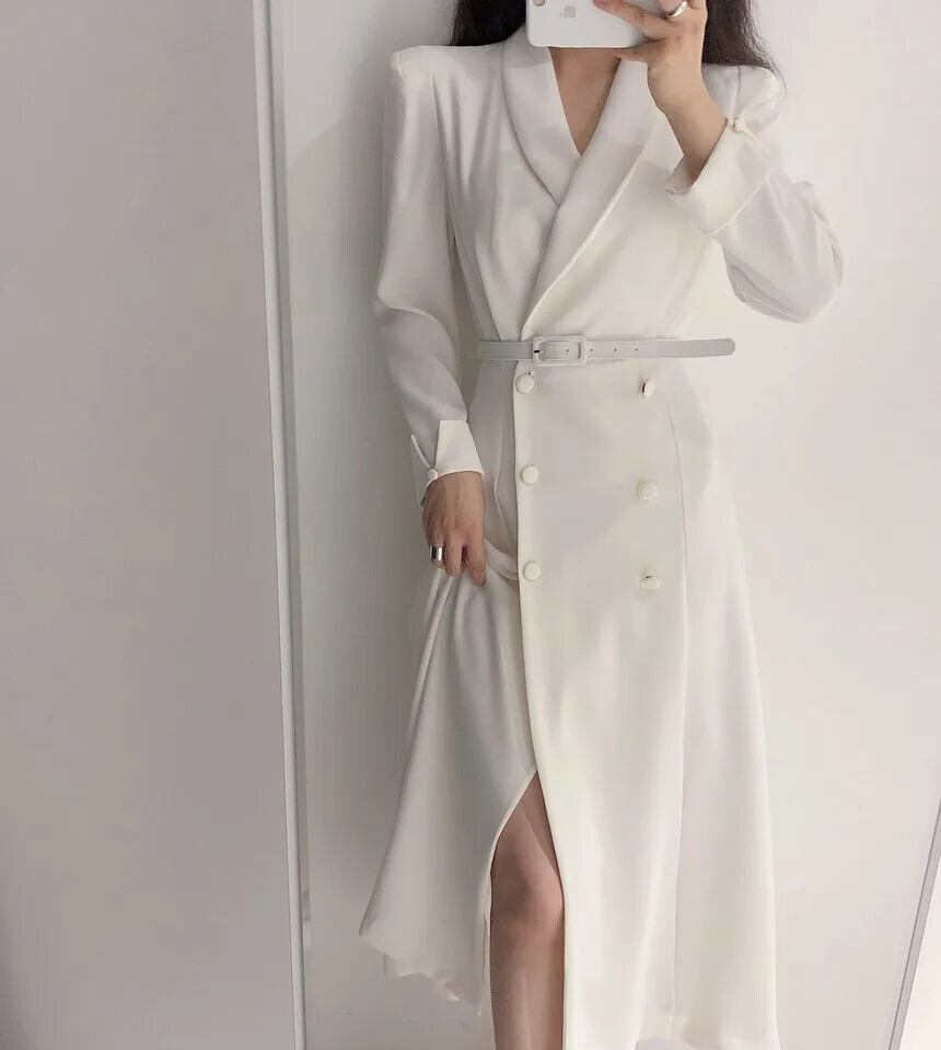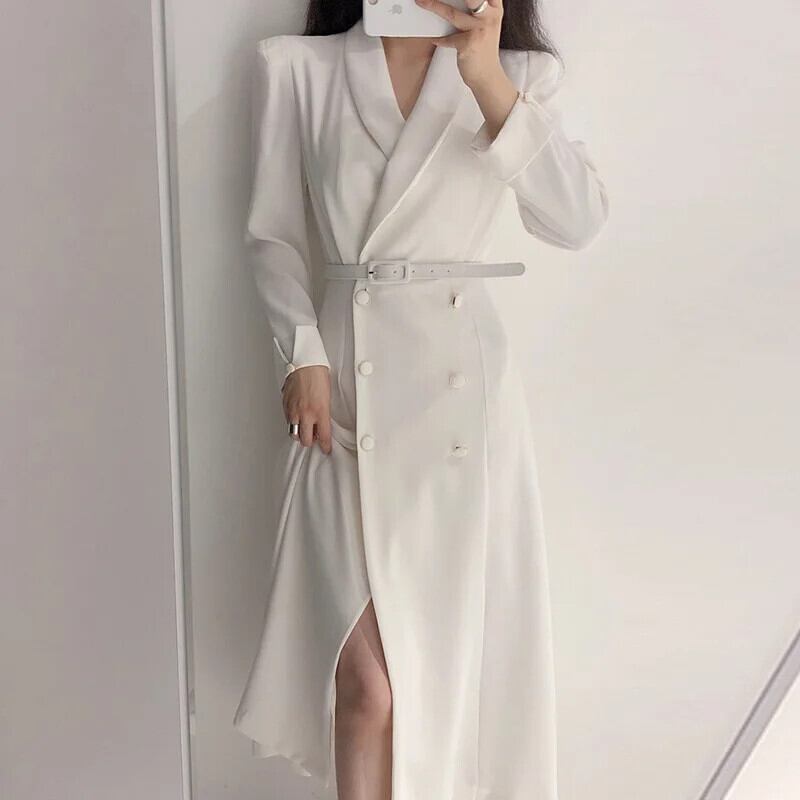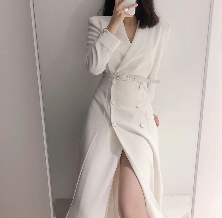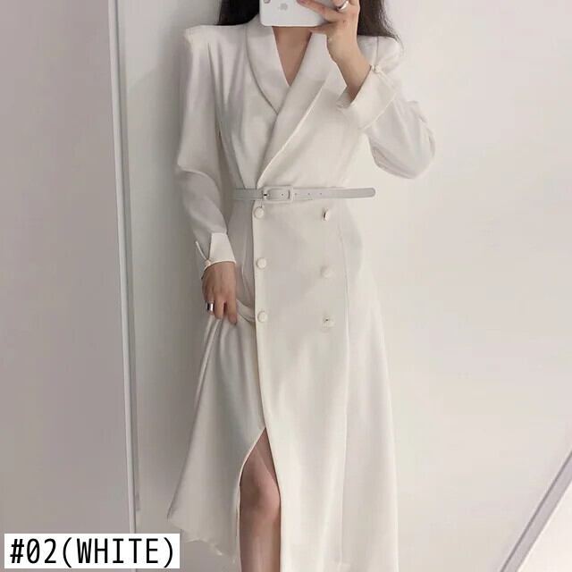 シックターンカラーダブルボタンレースアップウエスト膝上長袖ウインドブレーカーコートウインドブレーカー ロング