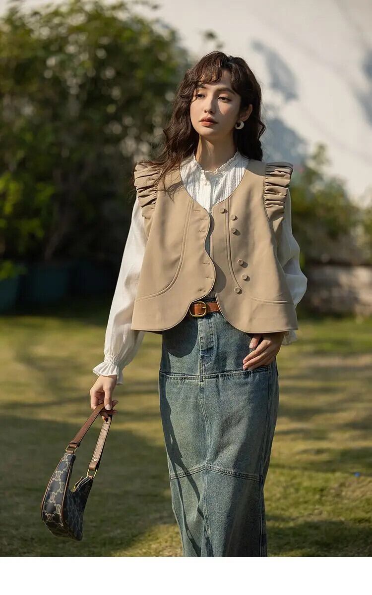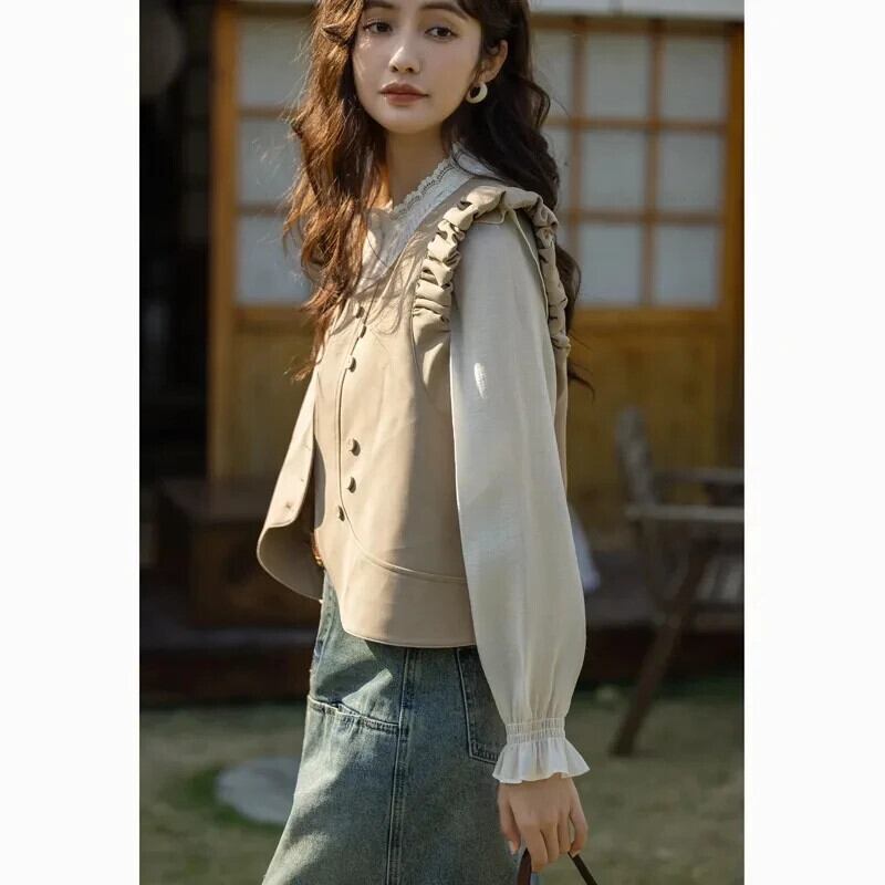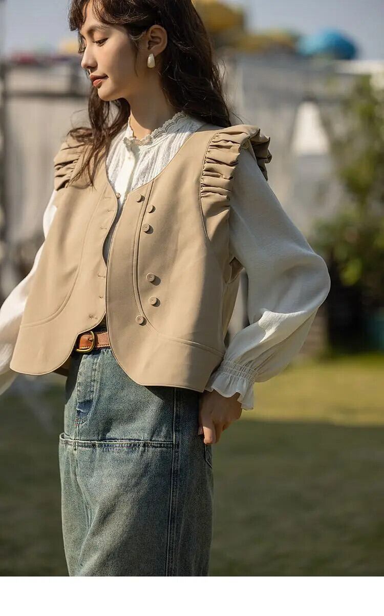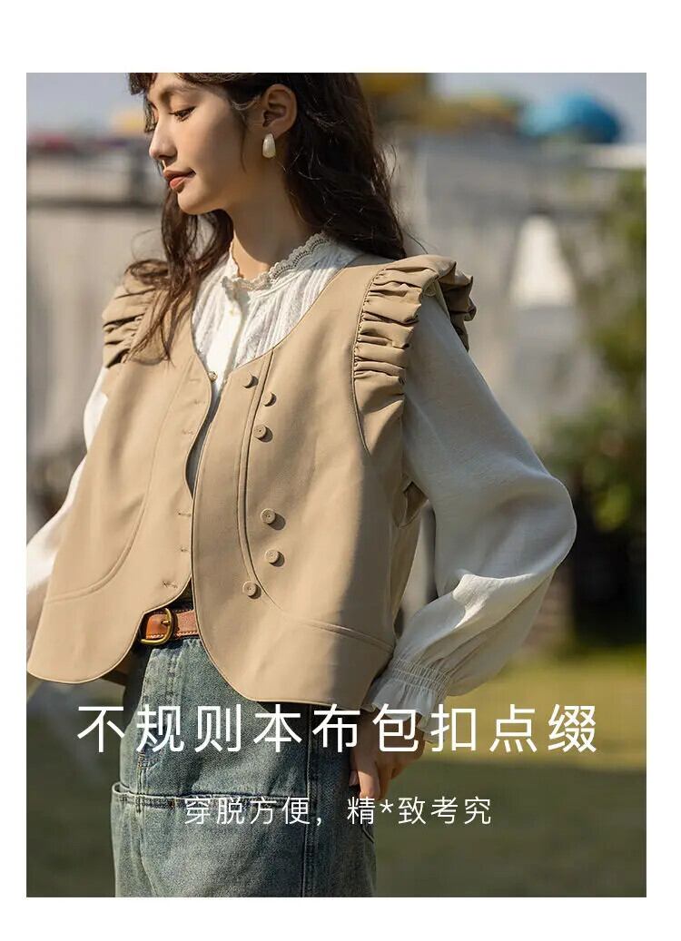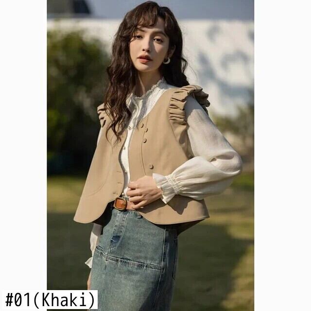 スーツベストコート夏多用途 V ネックノースリーブ耳レースショートスタイルチョッキ サマー 夏物 Vネック