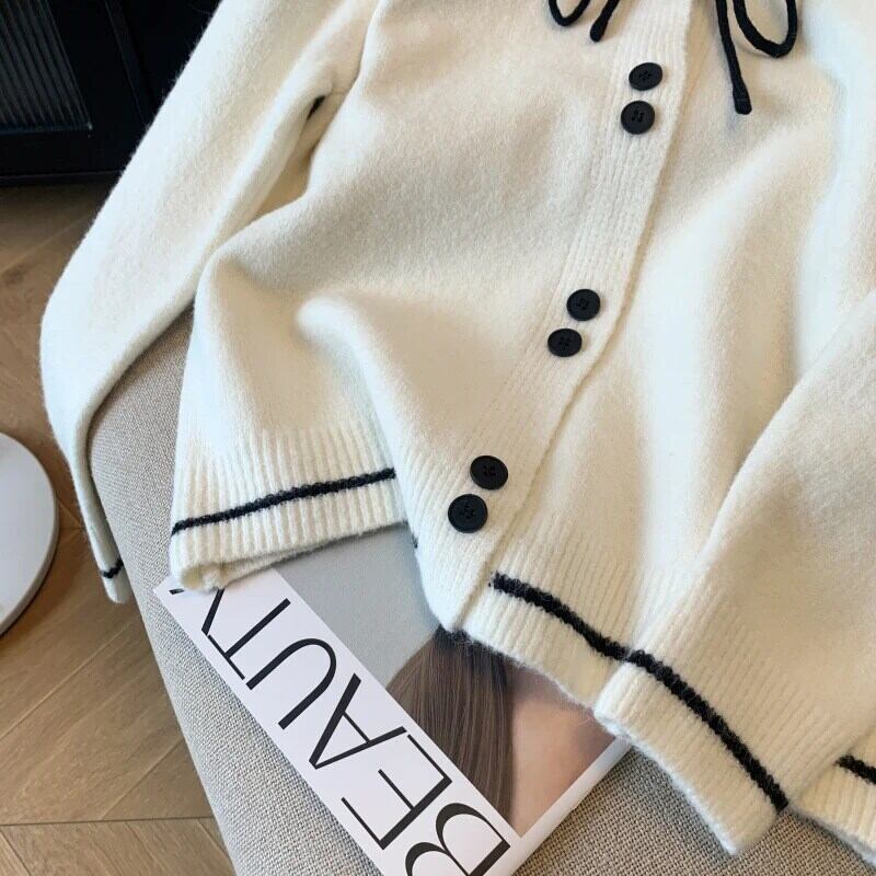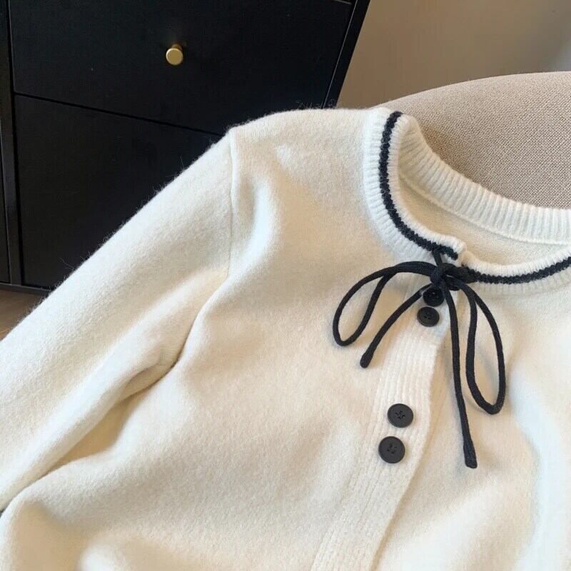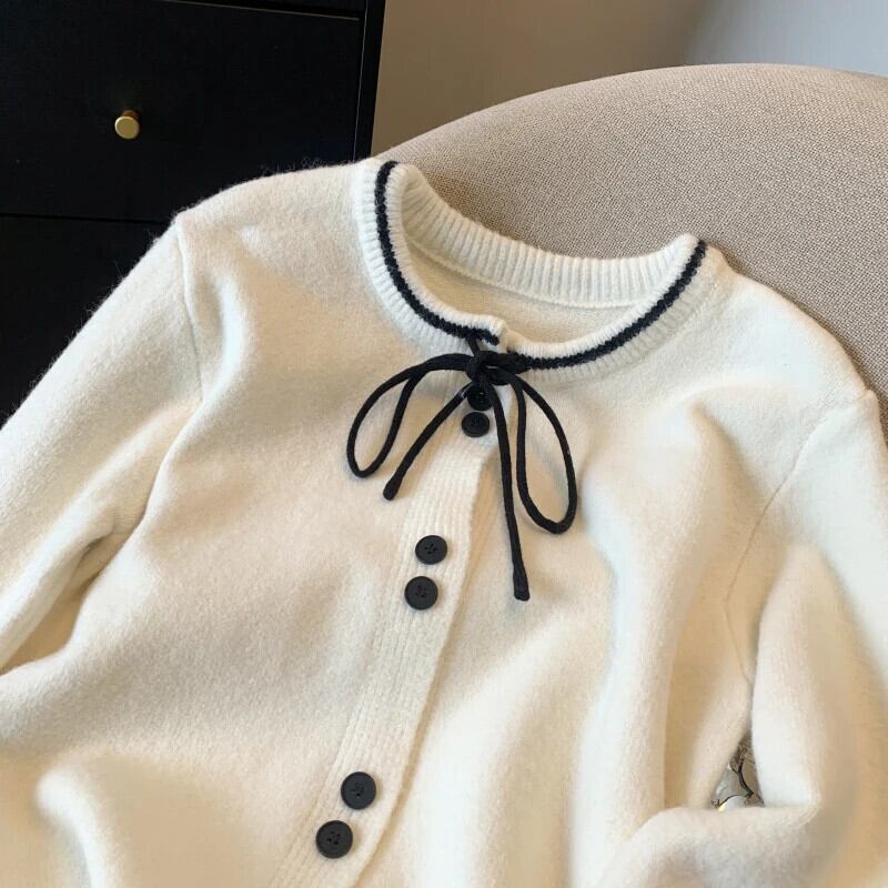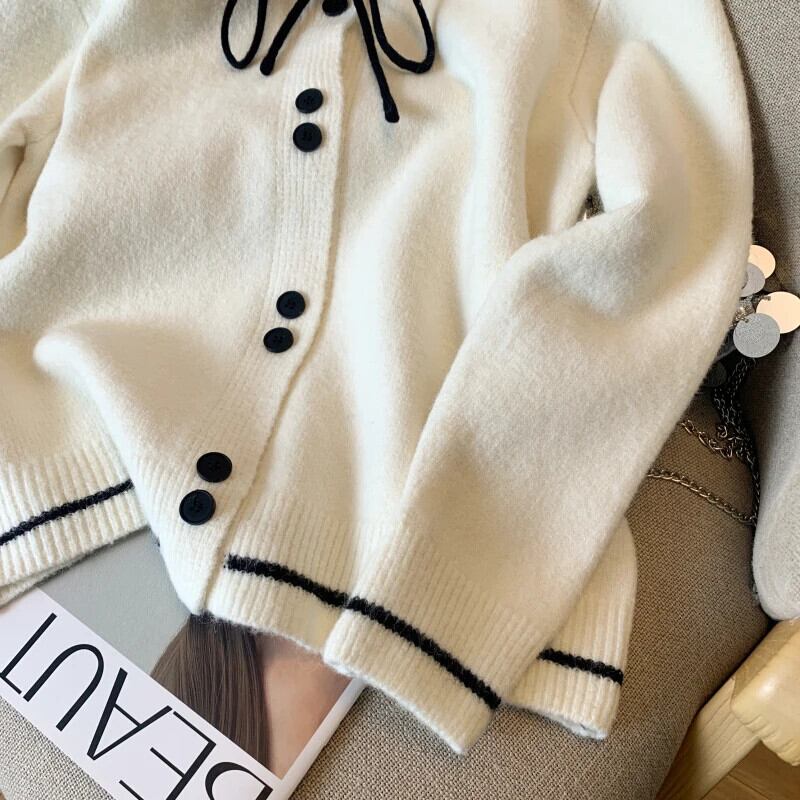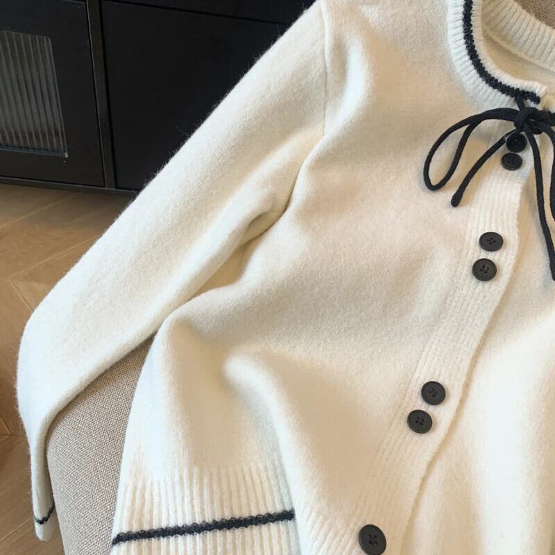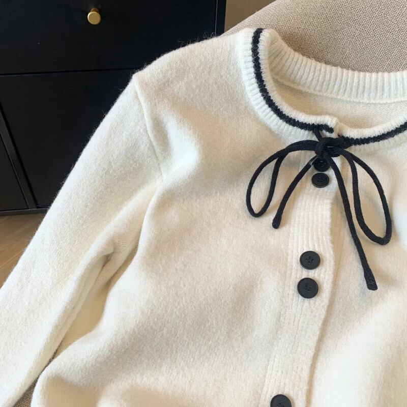 2024 春フレグランス ルーズ リボン カーディガン セーター レディース 万能ニット スプリング 春物