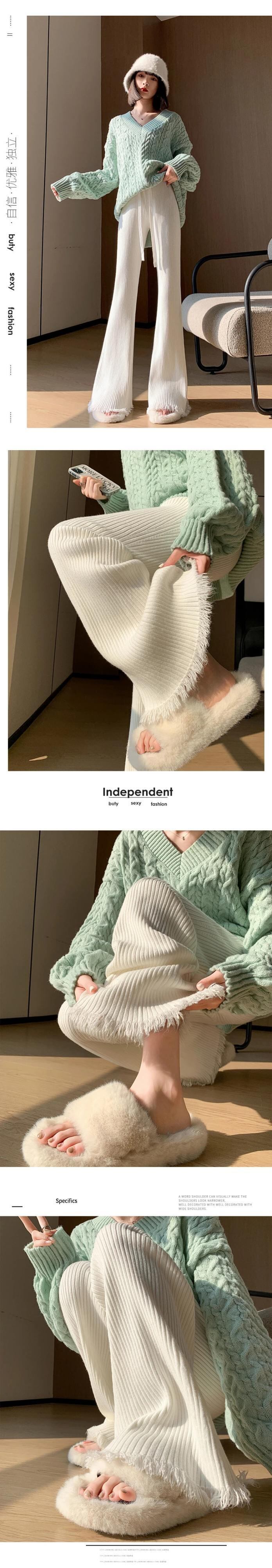 秋冬ウエスト肥厚ソフトテルホーンニットパンツ オータム 秋物 ウィンター 冬物