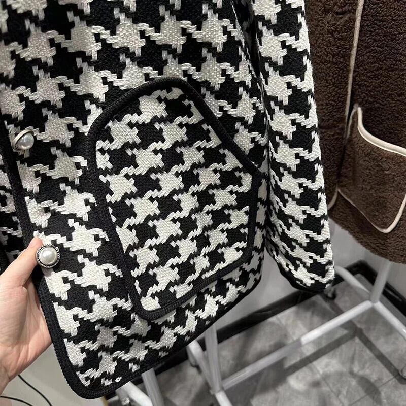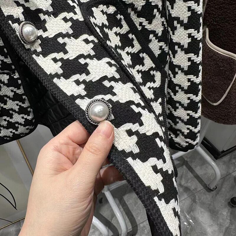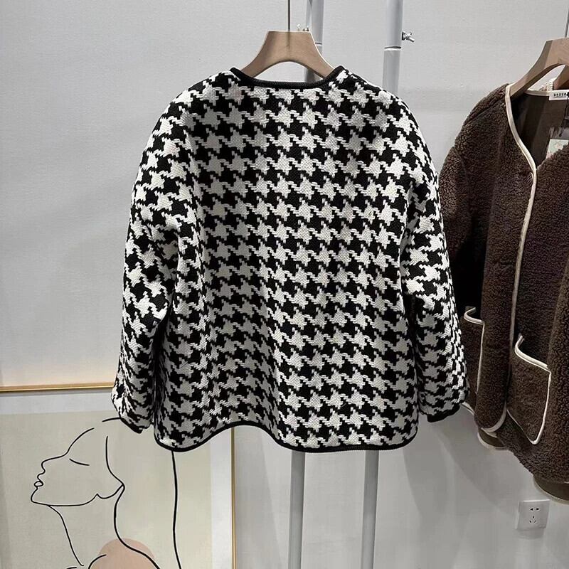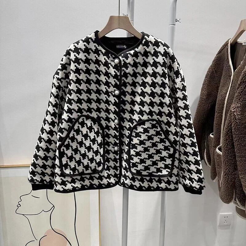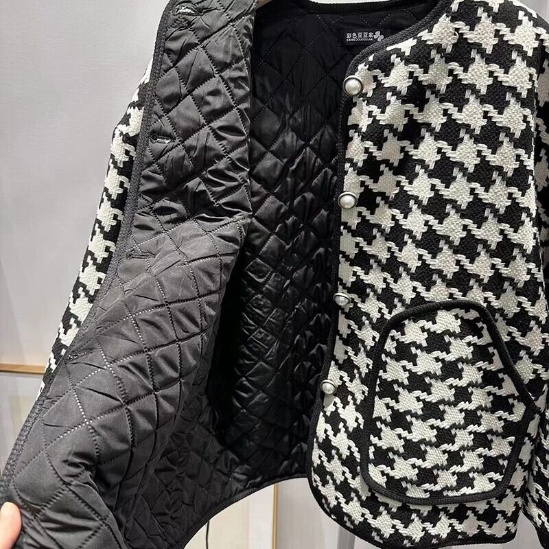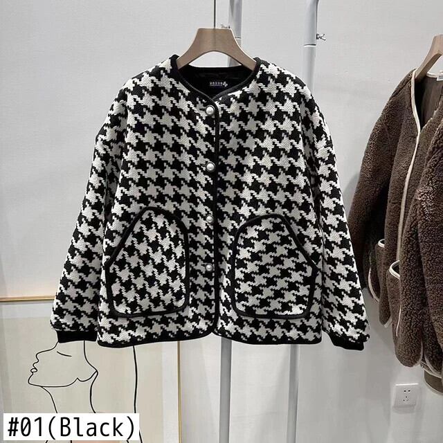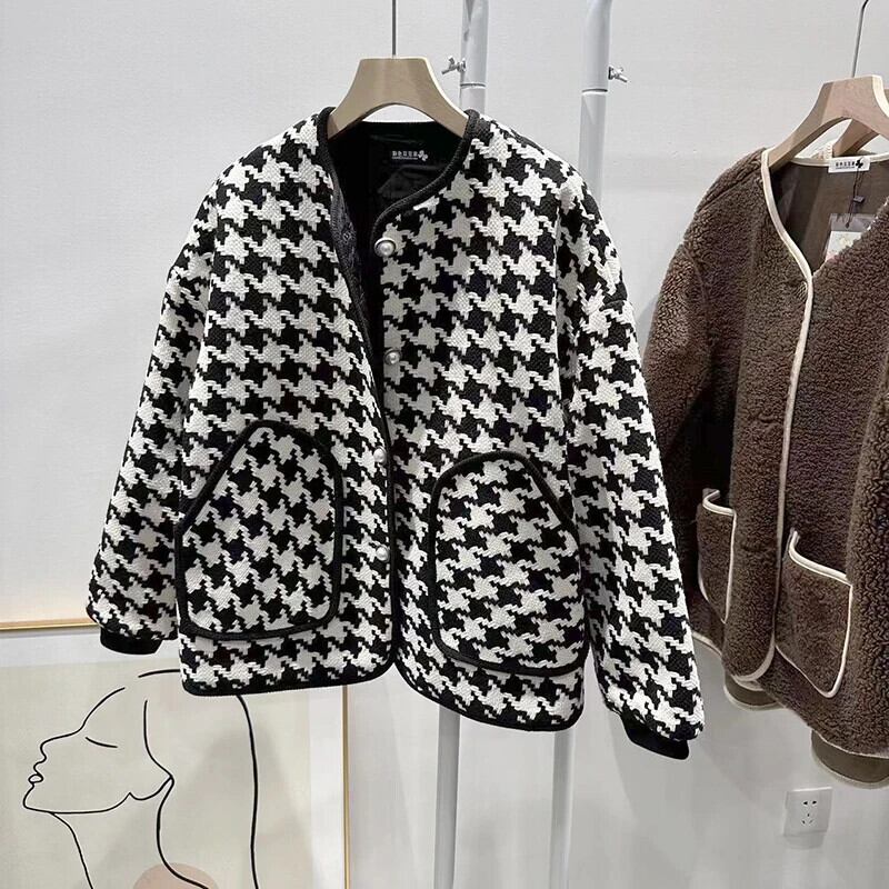 長袖ルーズ厚い秋/冬綿チェック柄ジャケットコート ロング コットン オータム 秋物 ウィンター 冬物