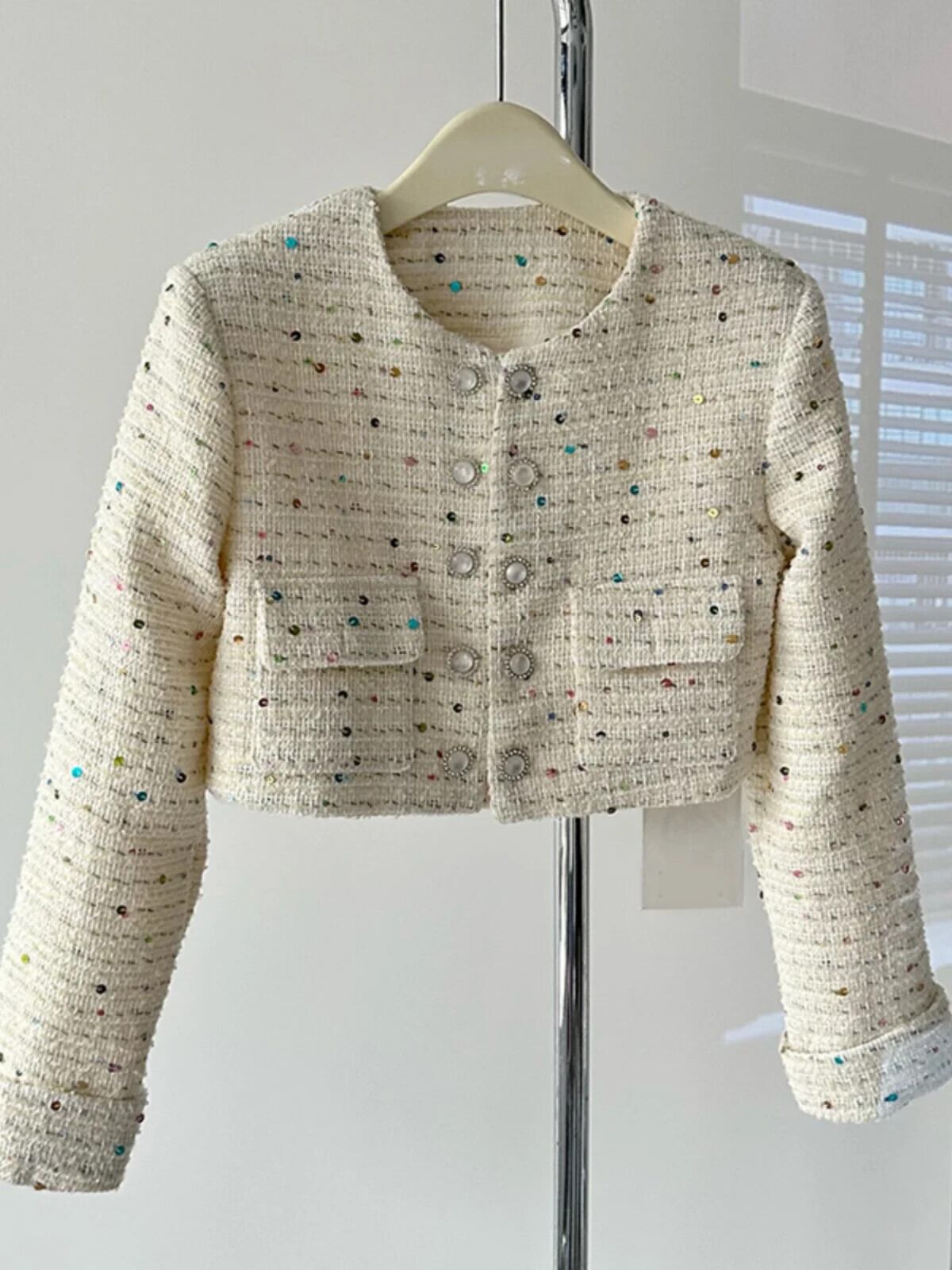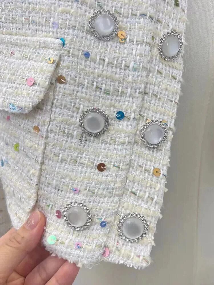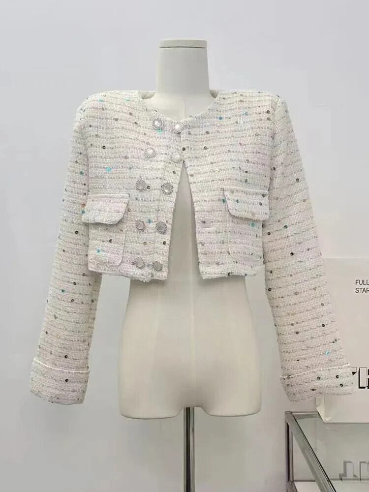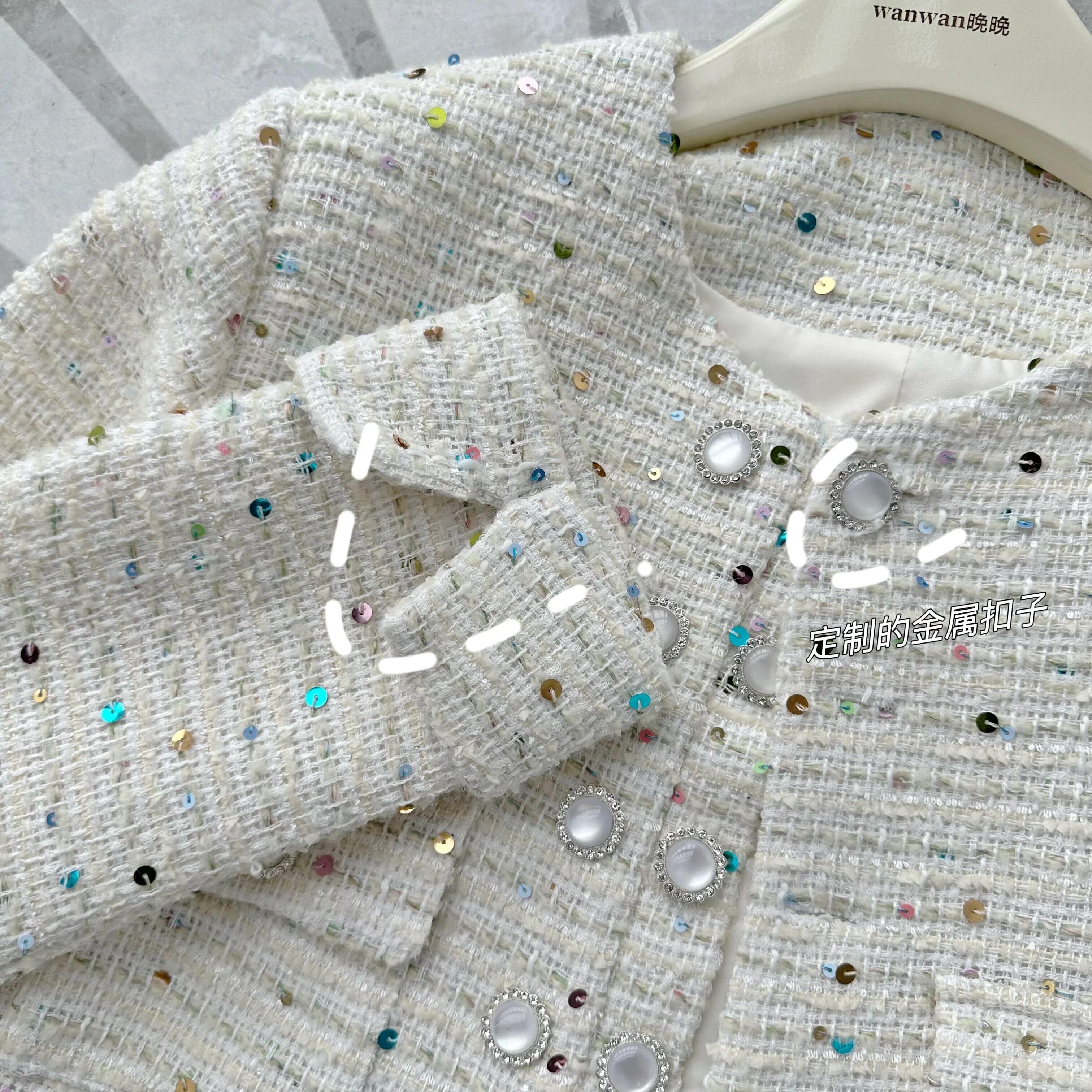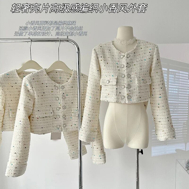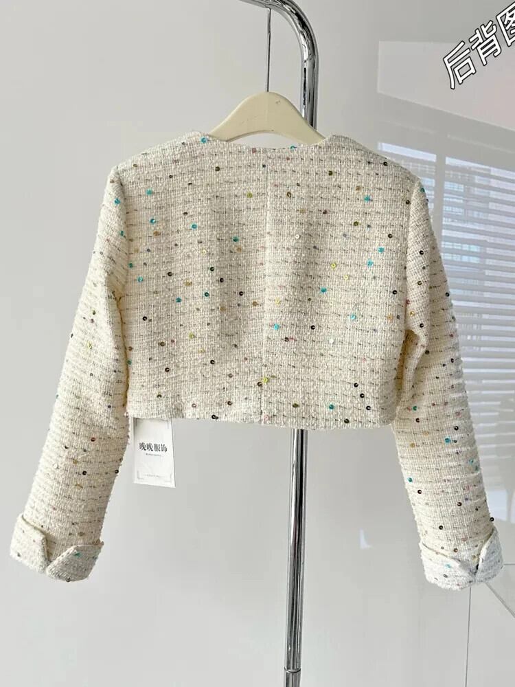 秋レトロツイードジャケットヘビークラフトカラフルスパンコール香りウールショートコート甘い生き抜く Casaco 大人ガーリー スウィート キュート カジュアル オータム 秋物
