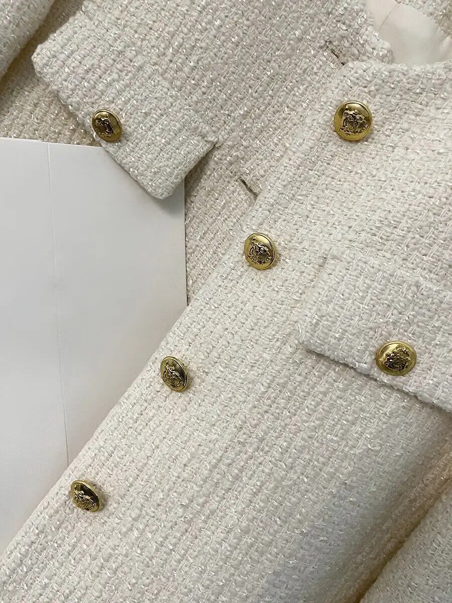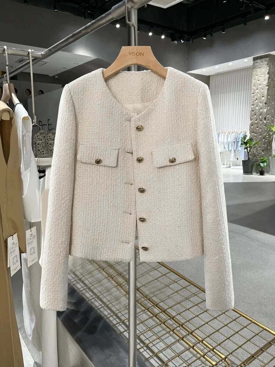 春秋ツイードクロップドスーツジャケットフグボンバーベーシックブレザーコートルーズアウター スプリング 春物 オータム 秋物