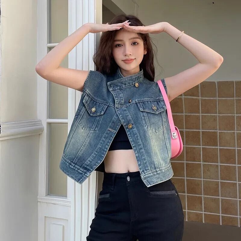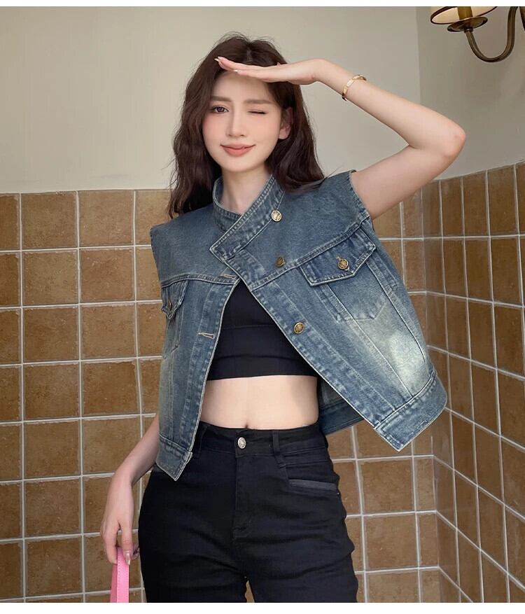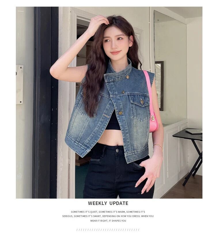 デニムチョッキレディース秋多用途ホースジャケットタンクトップ気質ベスト オータム 秋物
