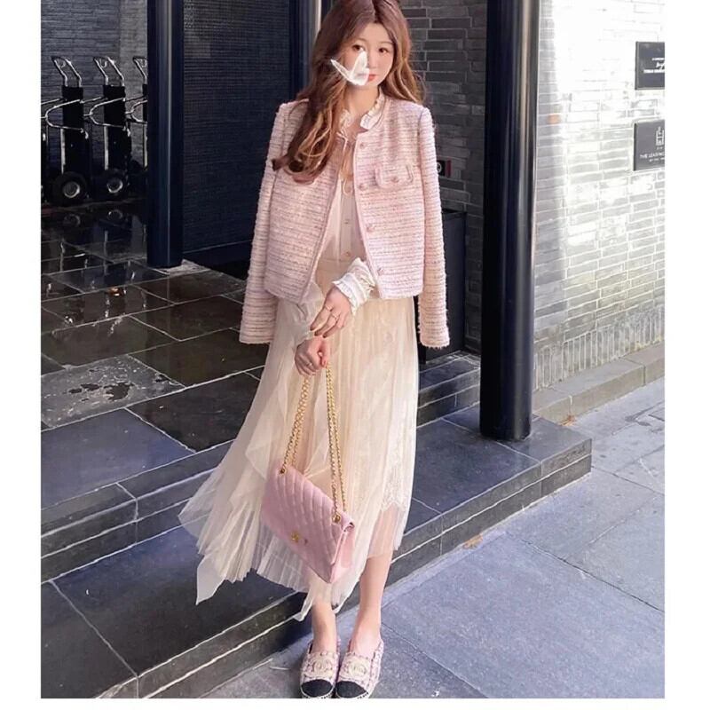 秋春チェック柄ツイードコートシックアウタージャケット スプリング 春物 オータム 秋物