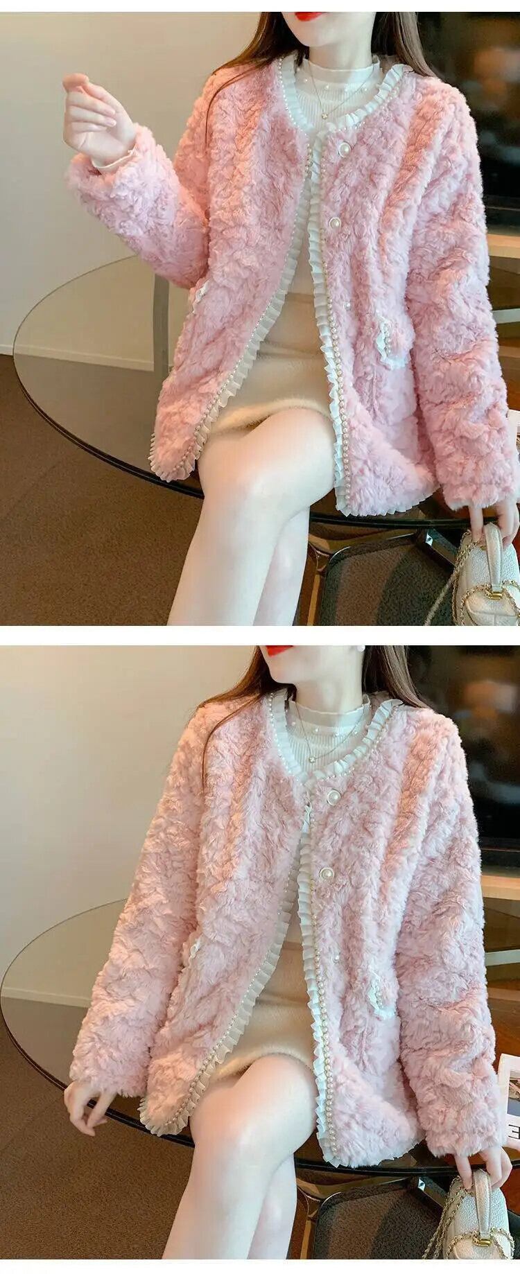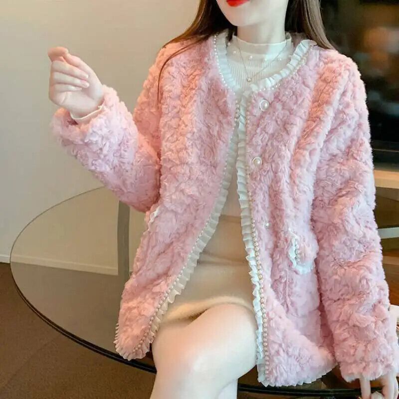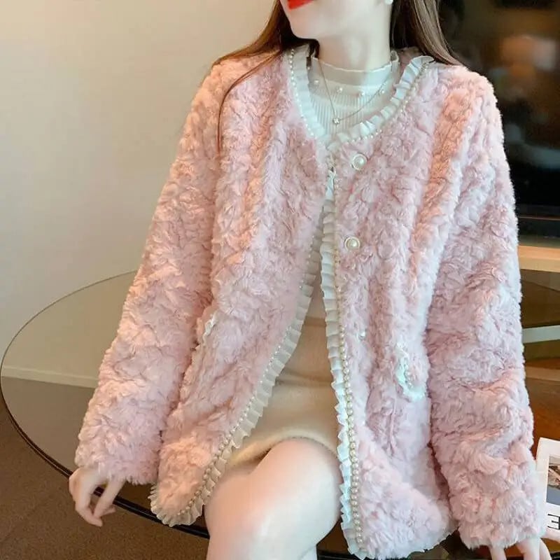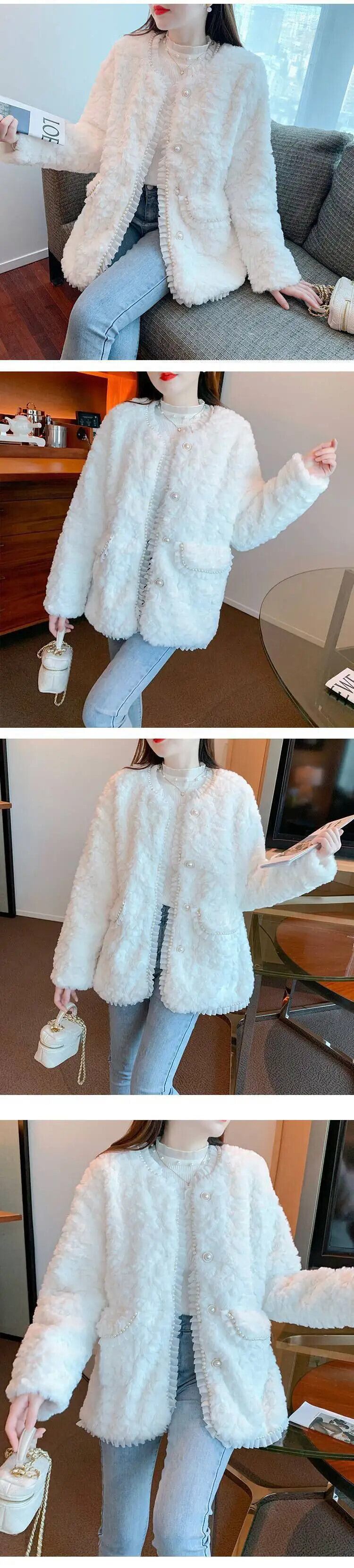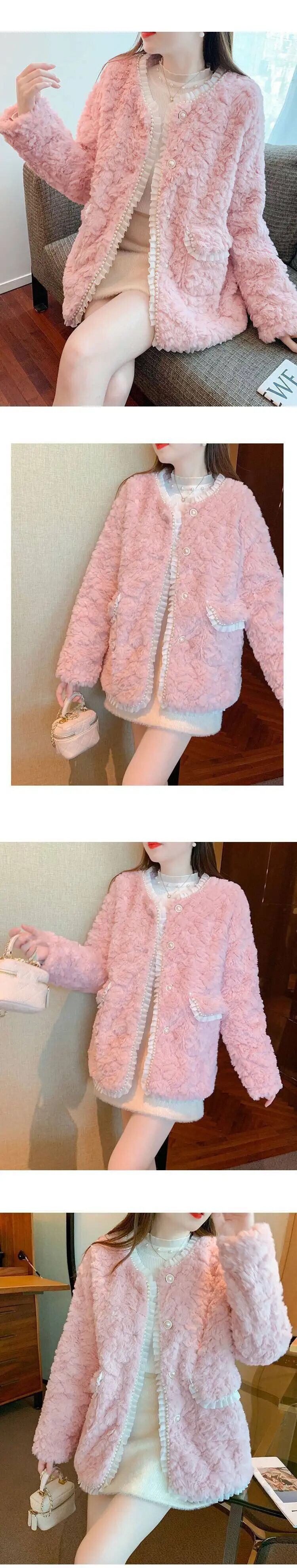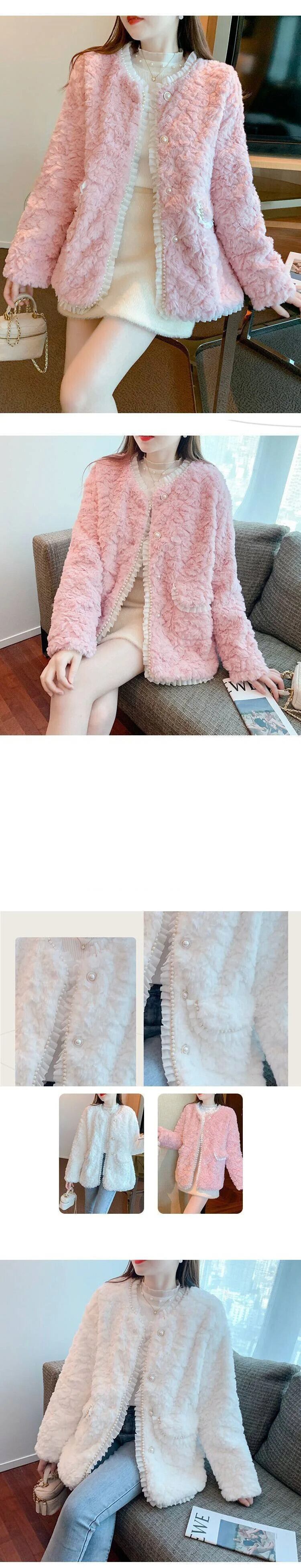 冬厚く暖かいテディファージャケットラムフェイクファーオーバーコートふわふわルーズアウター ウィンター 冬物