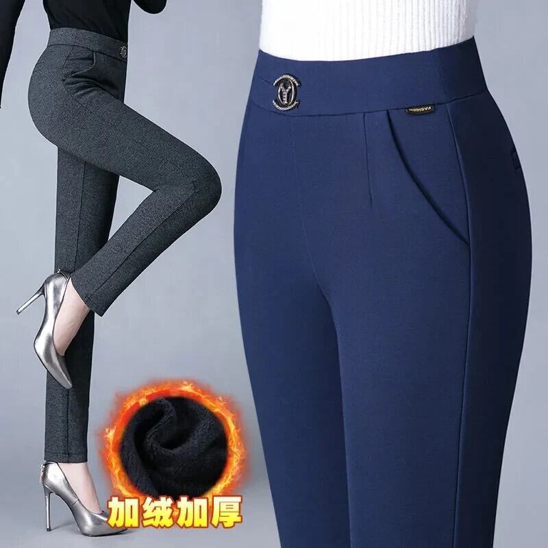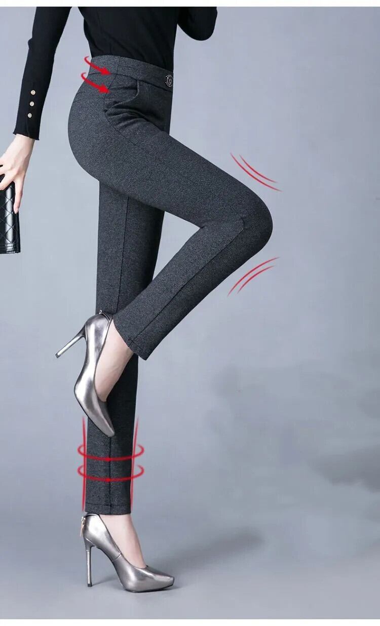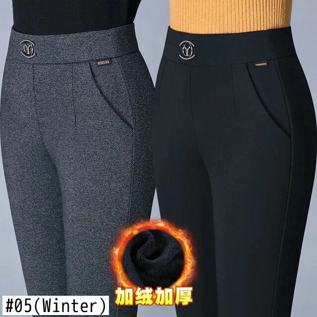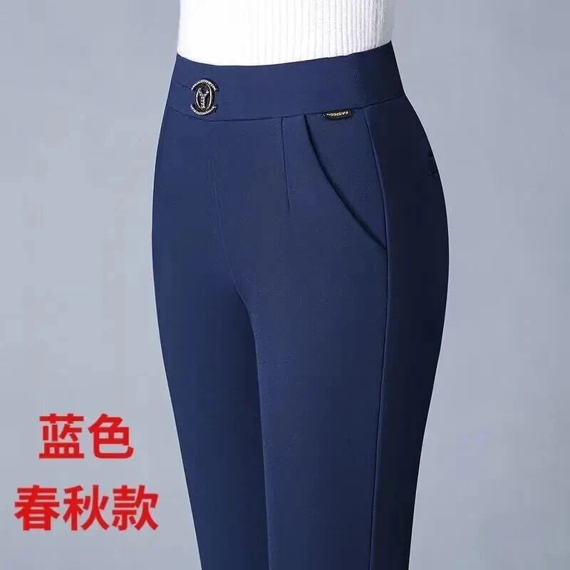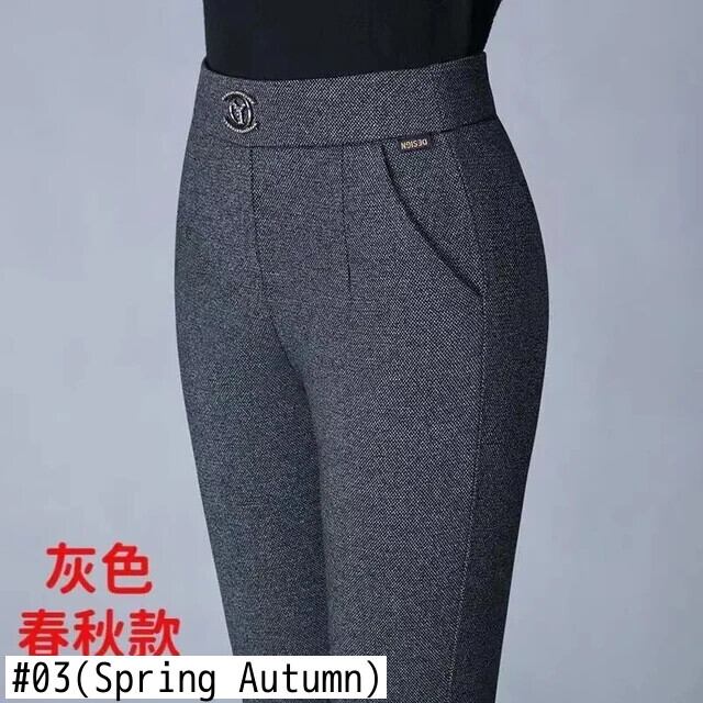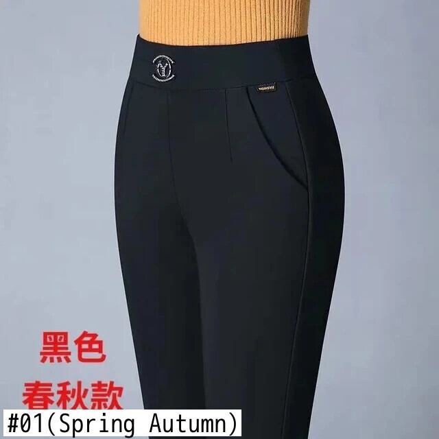 春秋冬オフィスレディダイヤモンドウエストパンツストレート弾性黒長ズボン ロング ブラック エラスティック 伸縮 スプリング 春物 オータム 秋物 ウィンター 冬物 会社 学校 通勤や通学にも