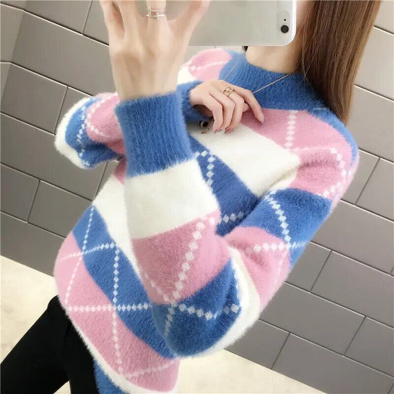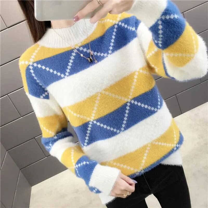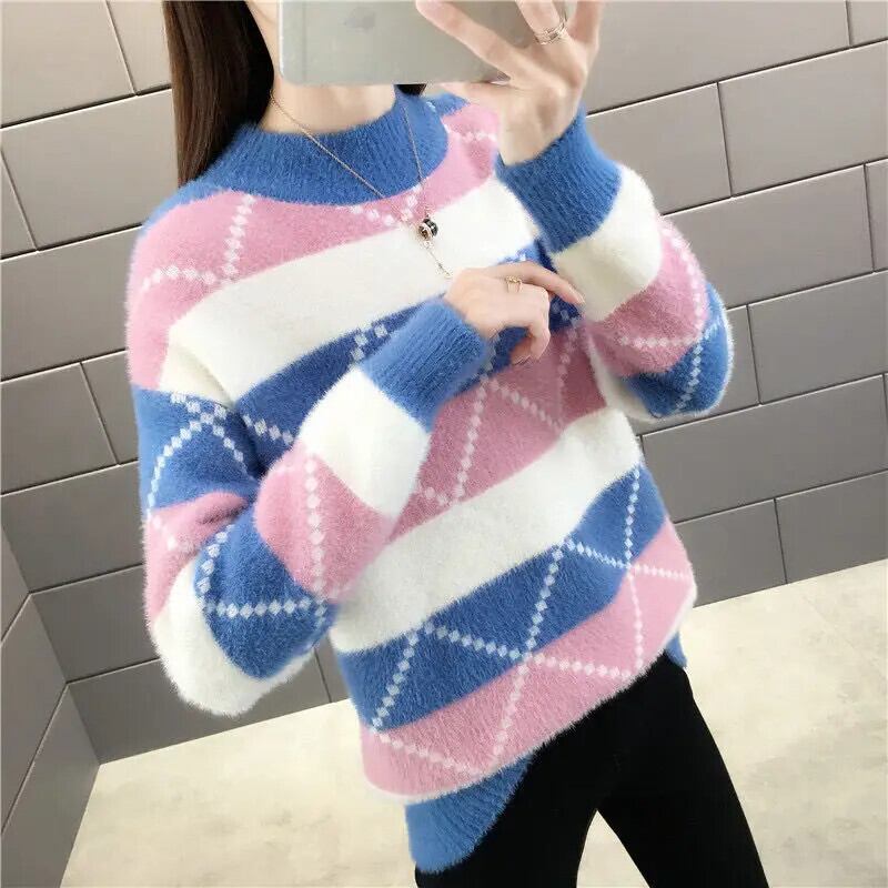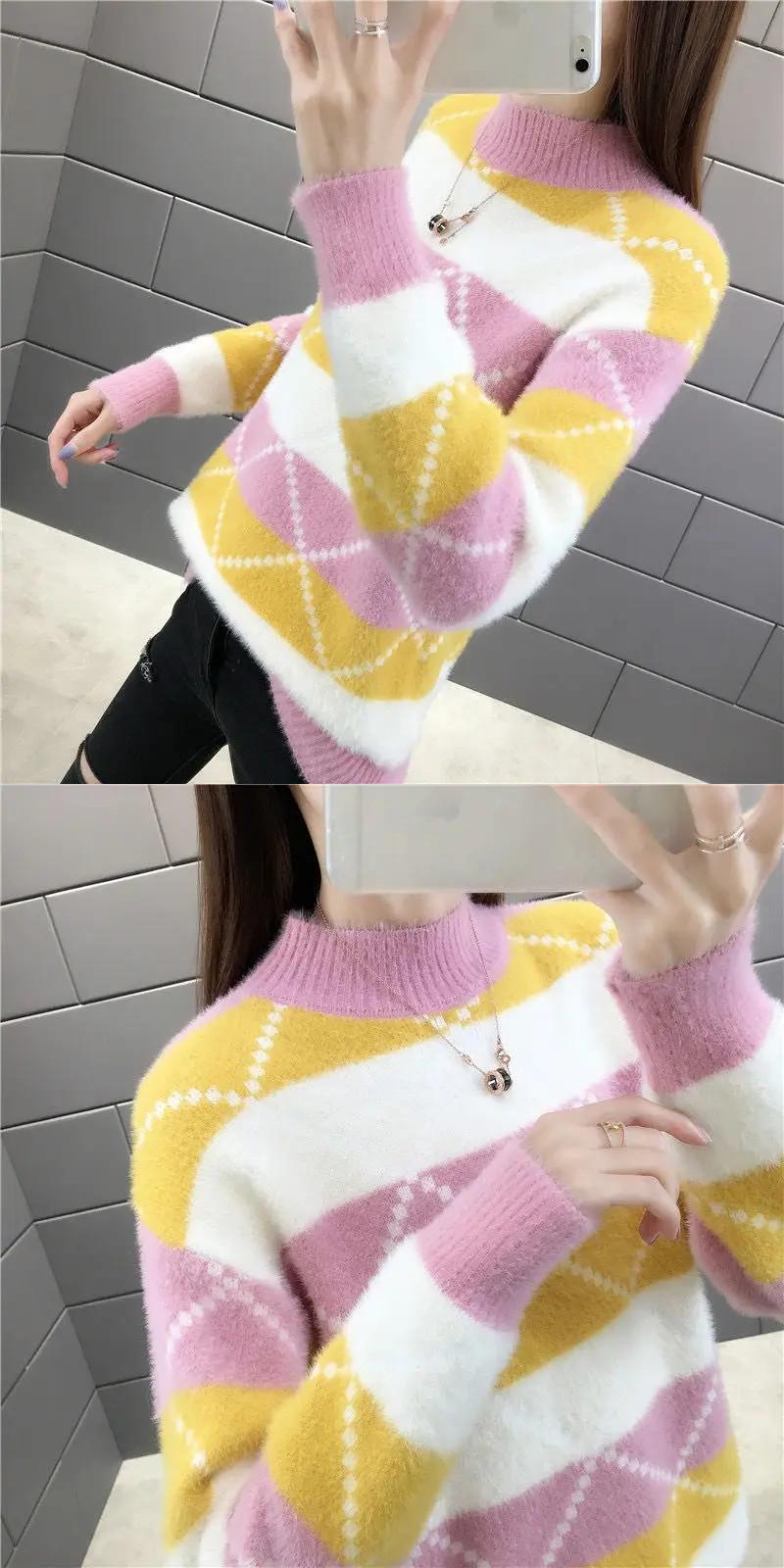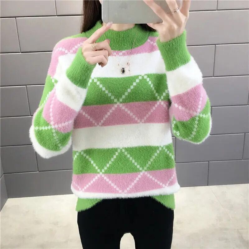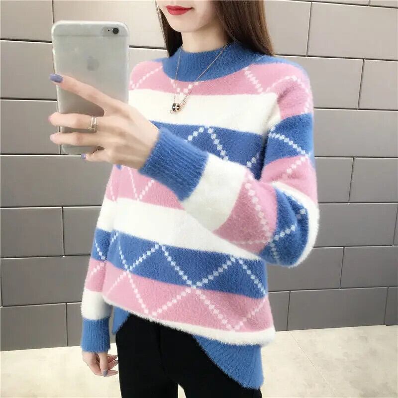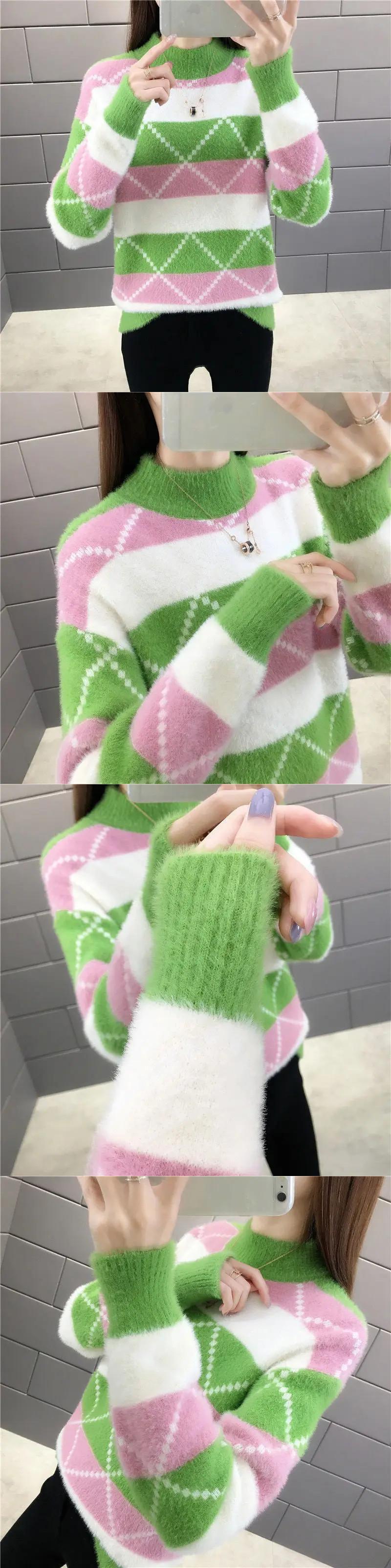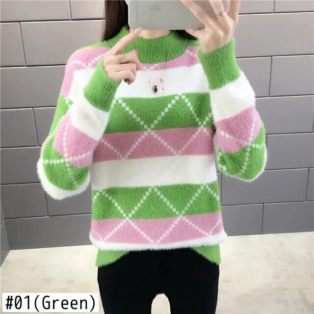 冬厚いイミテーションミンクベルベットハーフカラーベースルーズニットセーター ウィンター 冬物
